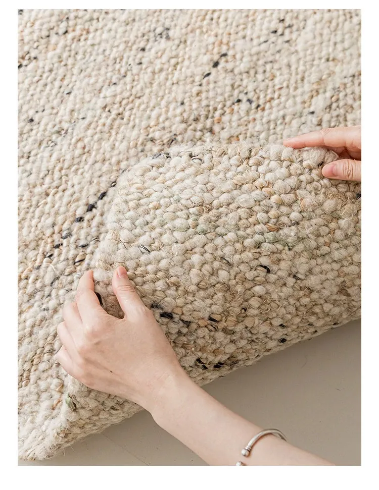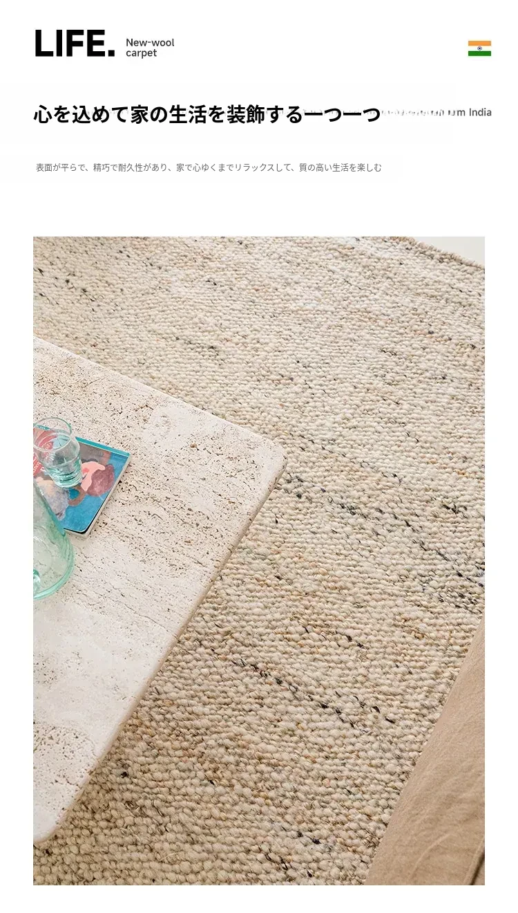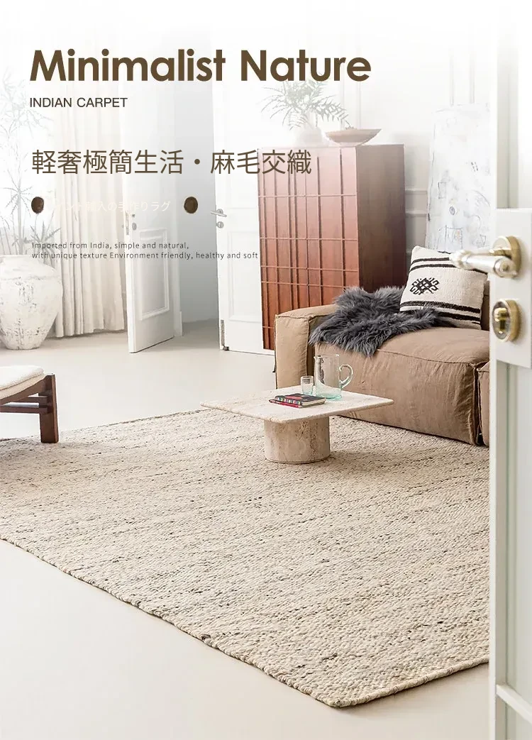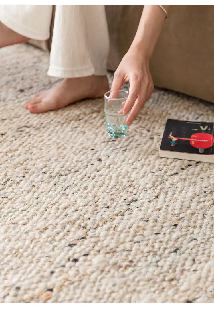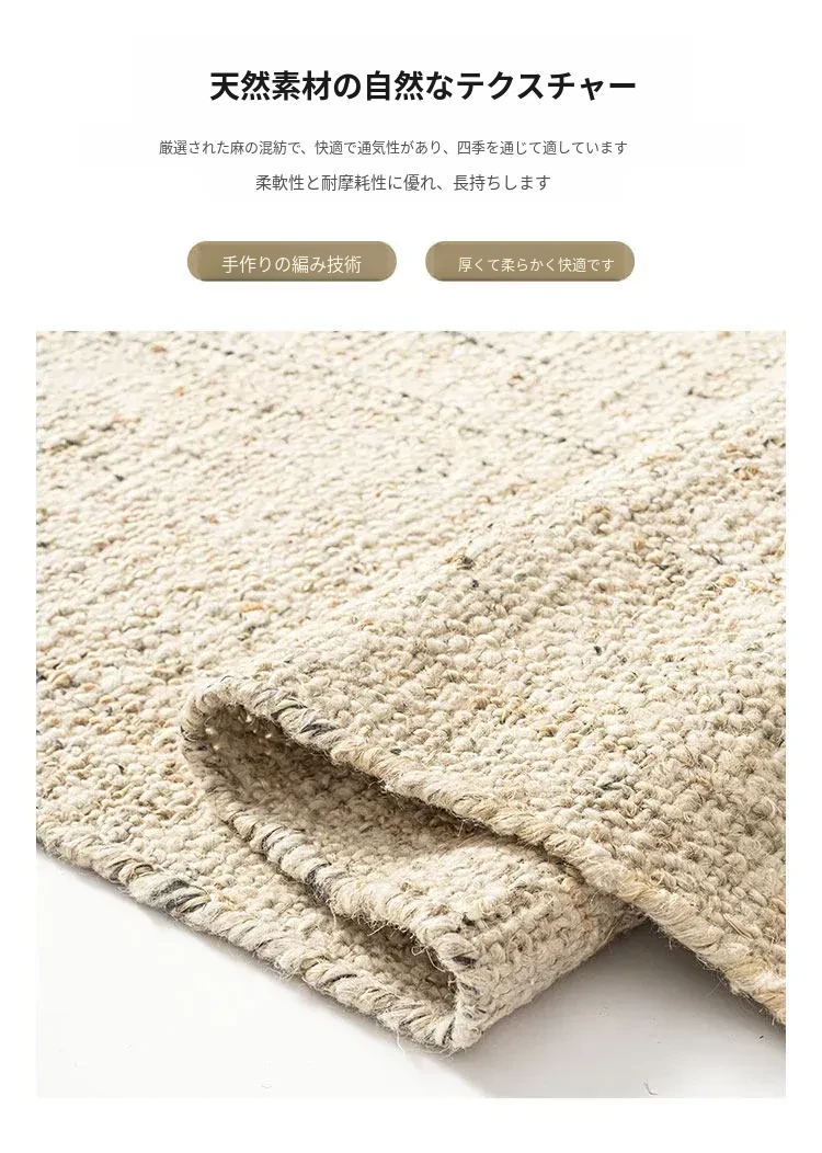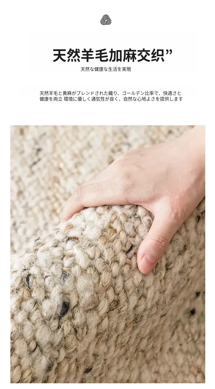 視覚的な美味しさを楽しむ!接着剤なし・ホルムアルデヒドフリーの手作りウールカーペット。リビングや寝室にぴったりな侘寂スタイルのシンプルなカラー。心地よい空間を演出します!