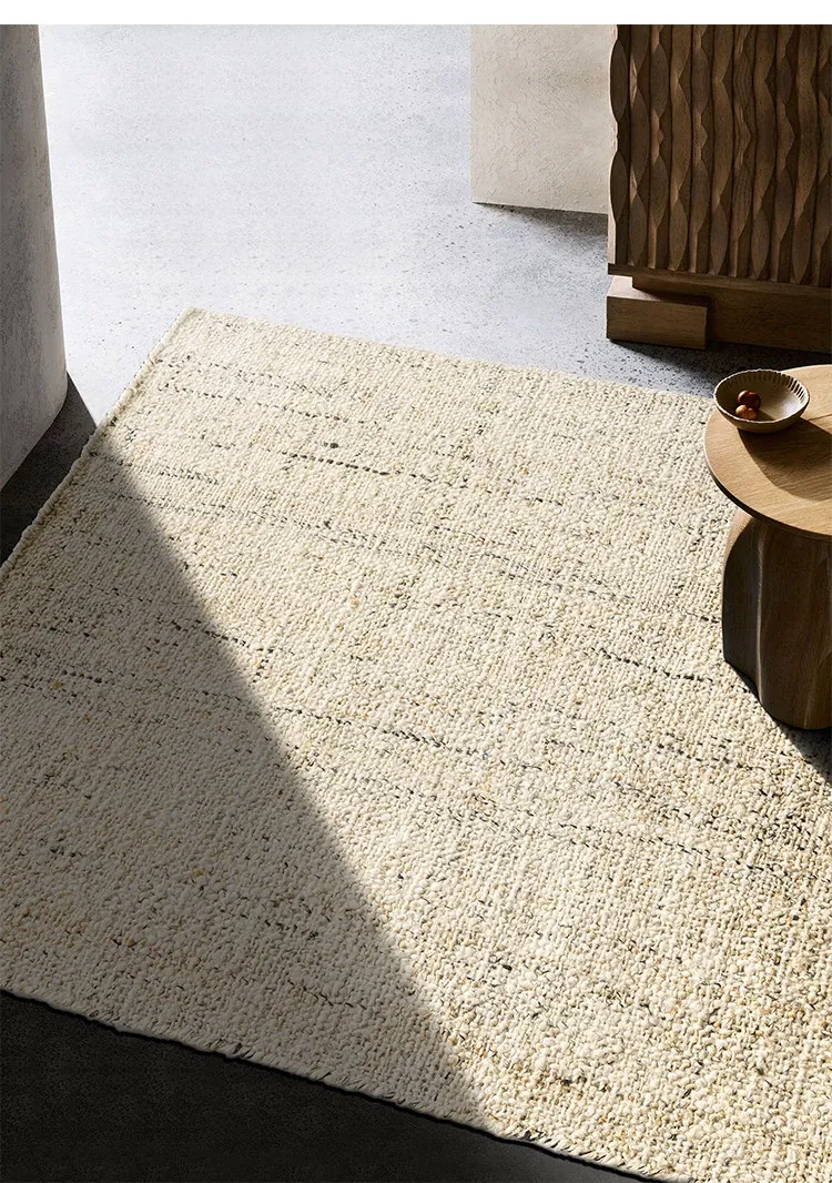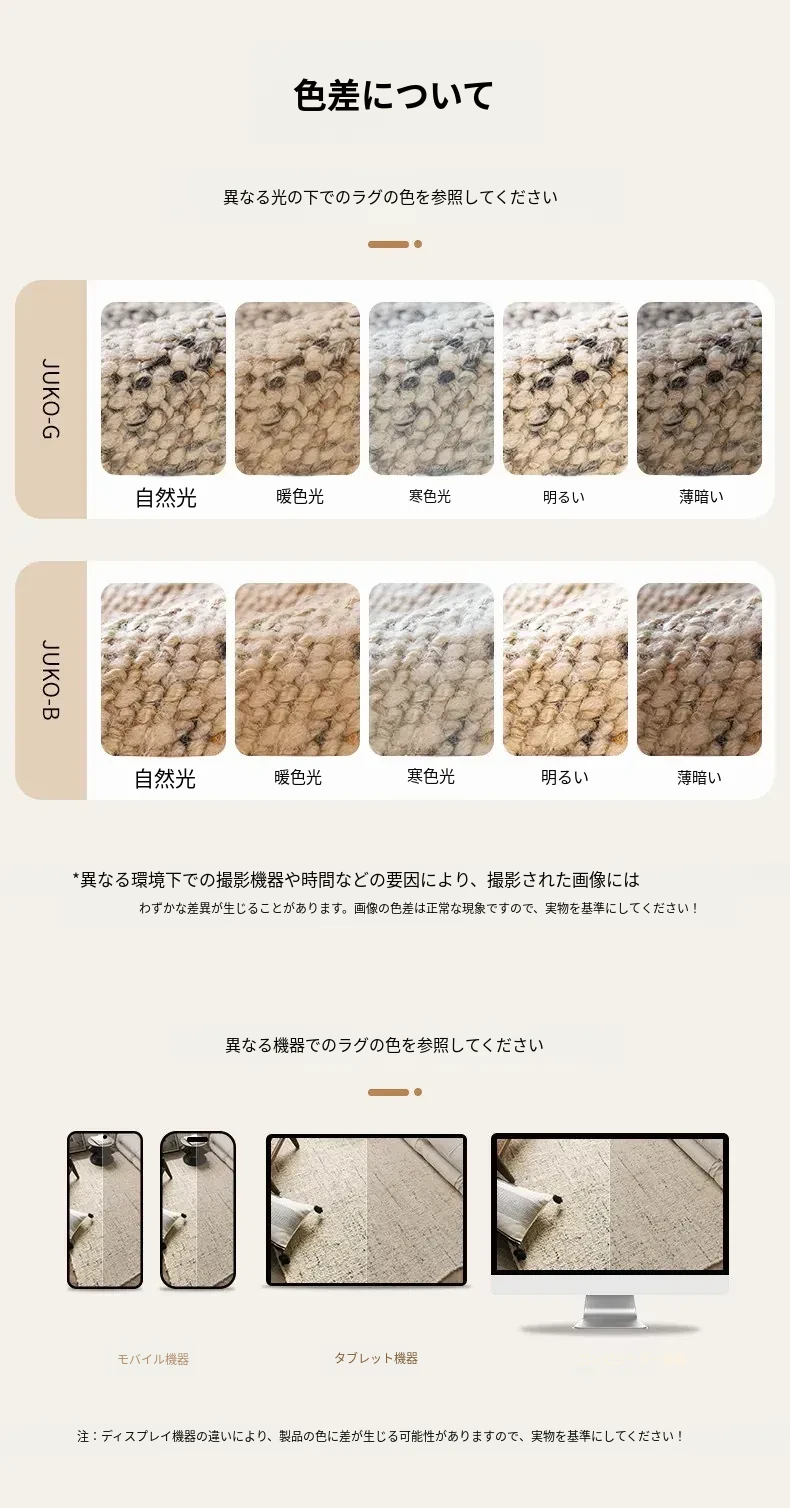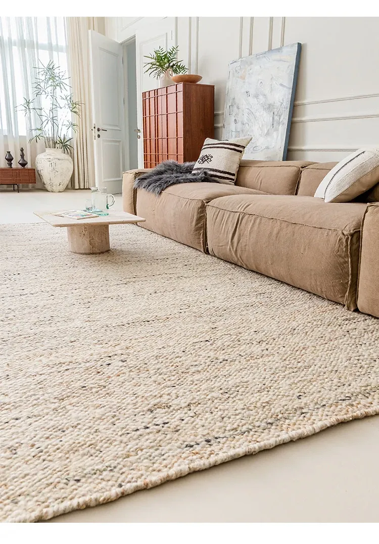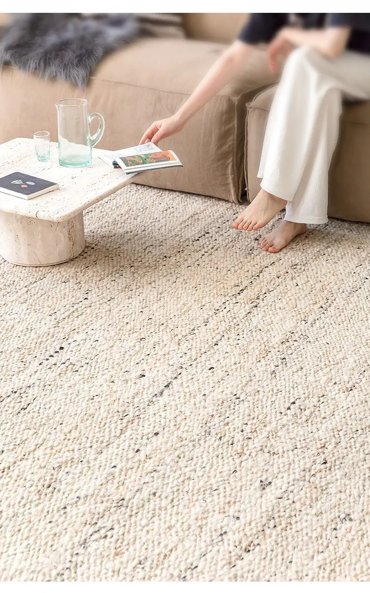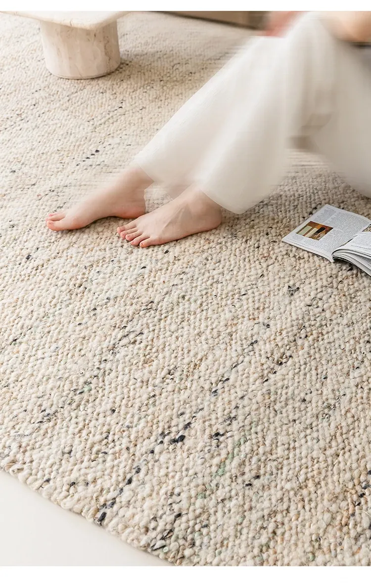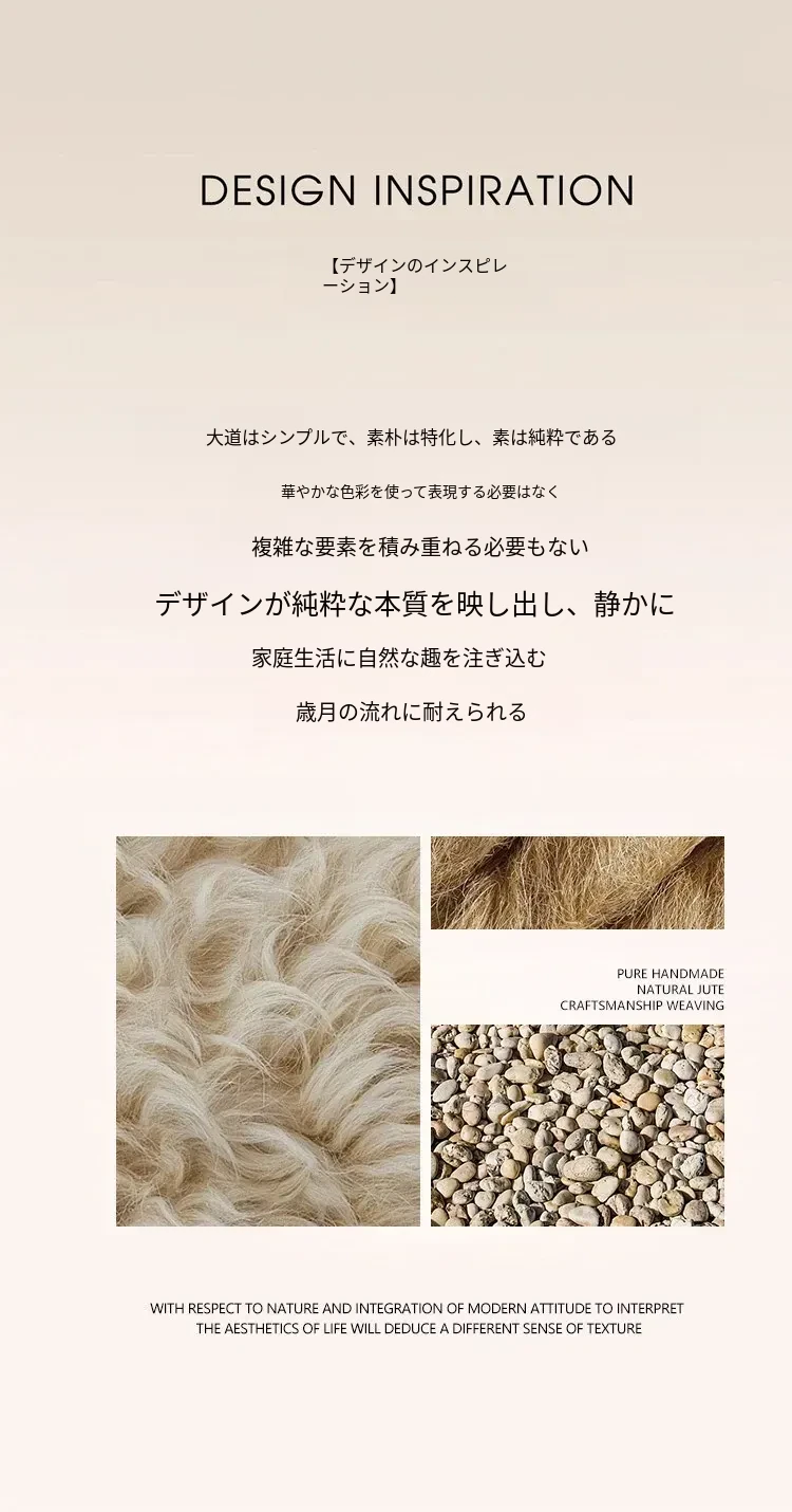 視覚的な美味しさを楽しむ!接着剤なし・ホルムアルデヒドフリーの手作りウールカーペット。リビングや寝室にぴったりな侘寂スタイルのシンプルなカラー。心地よい空間を演出します!