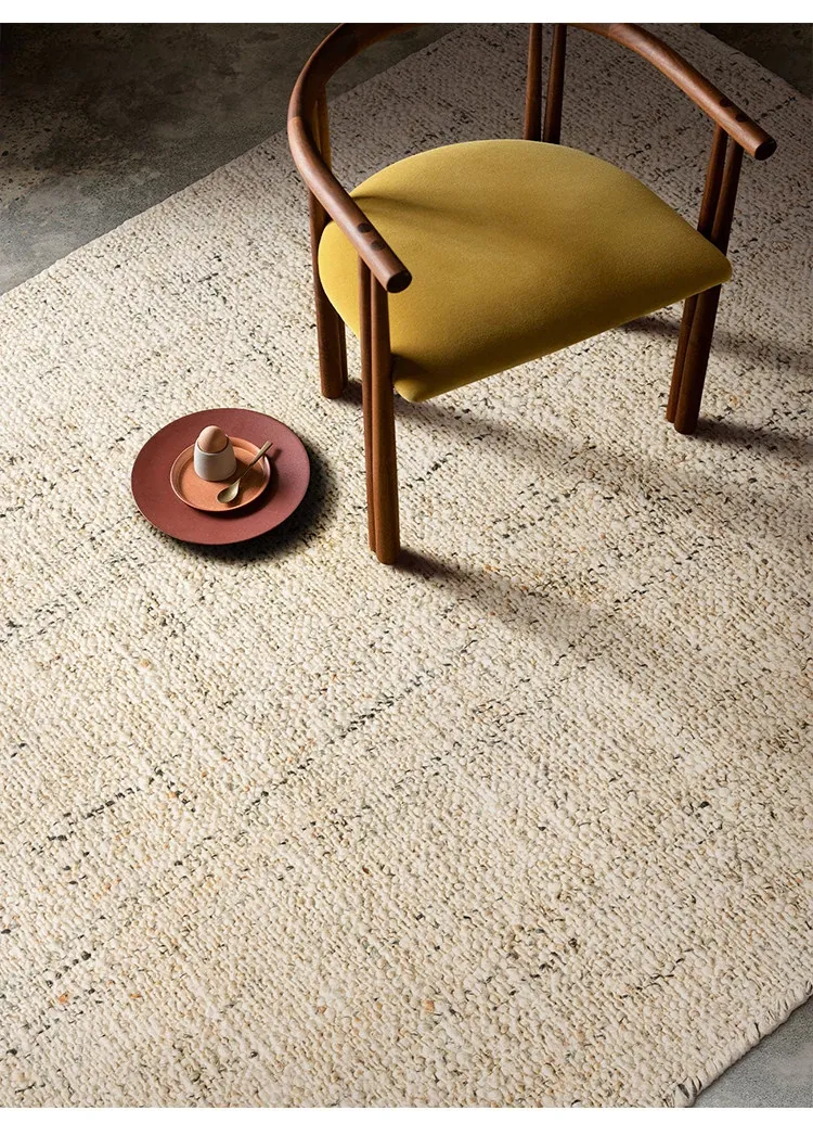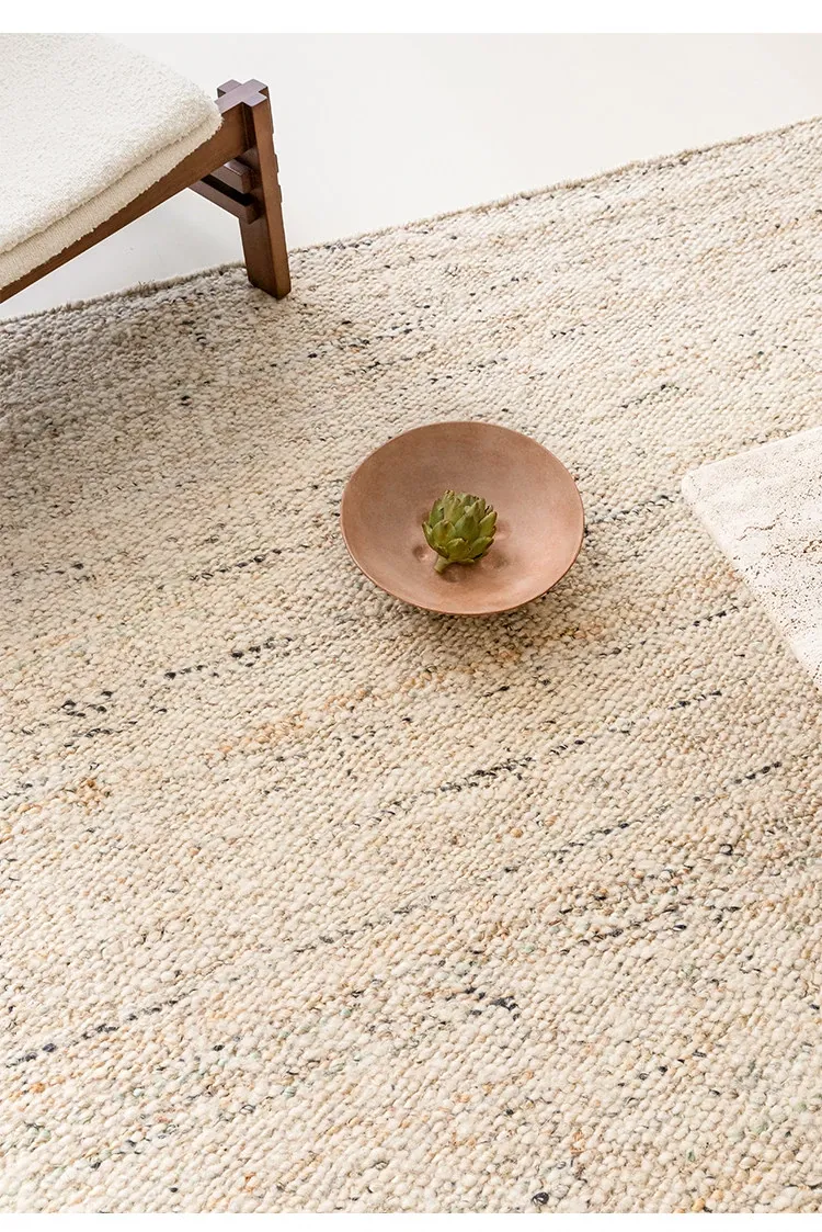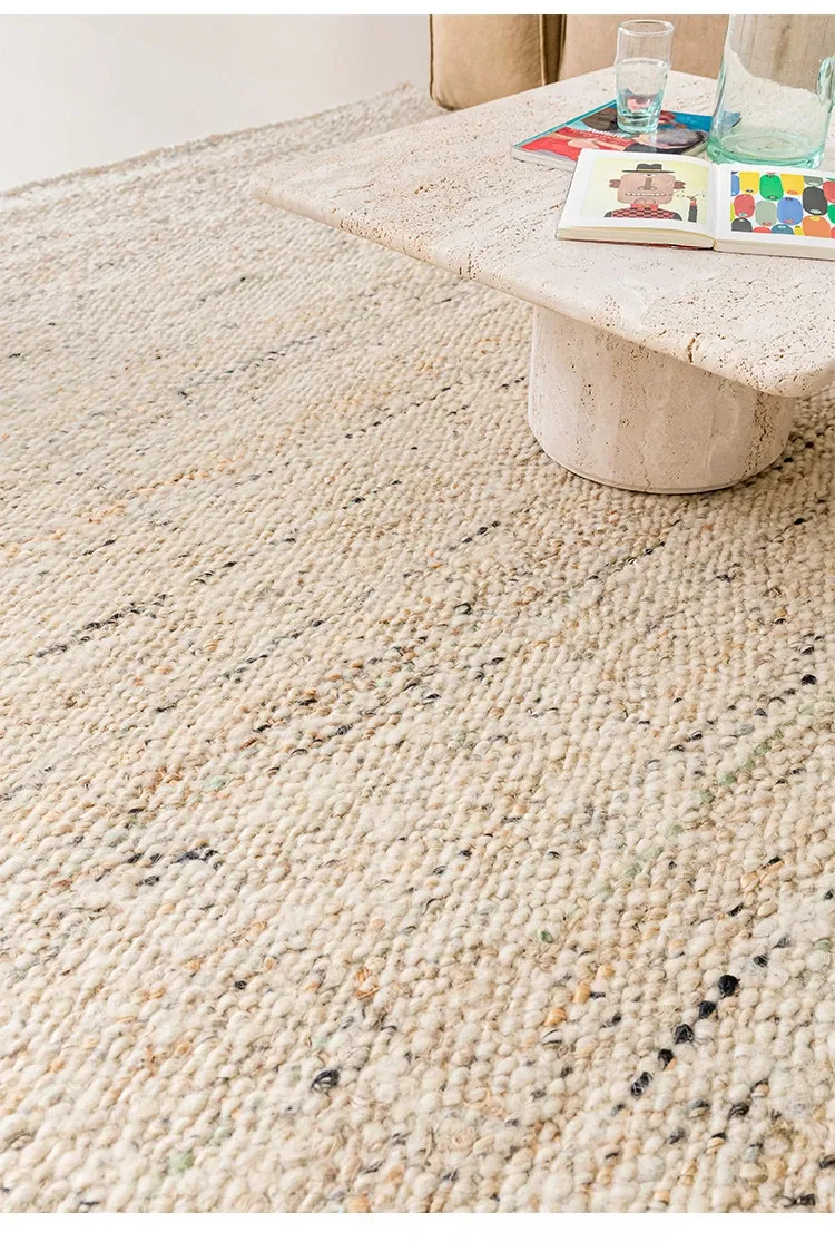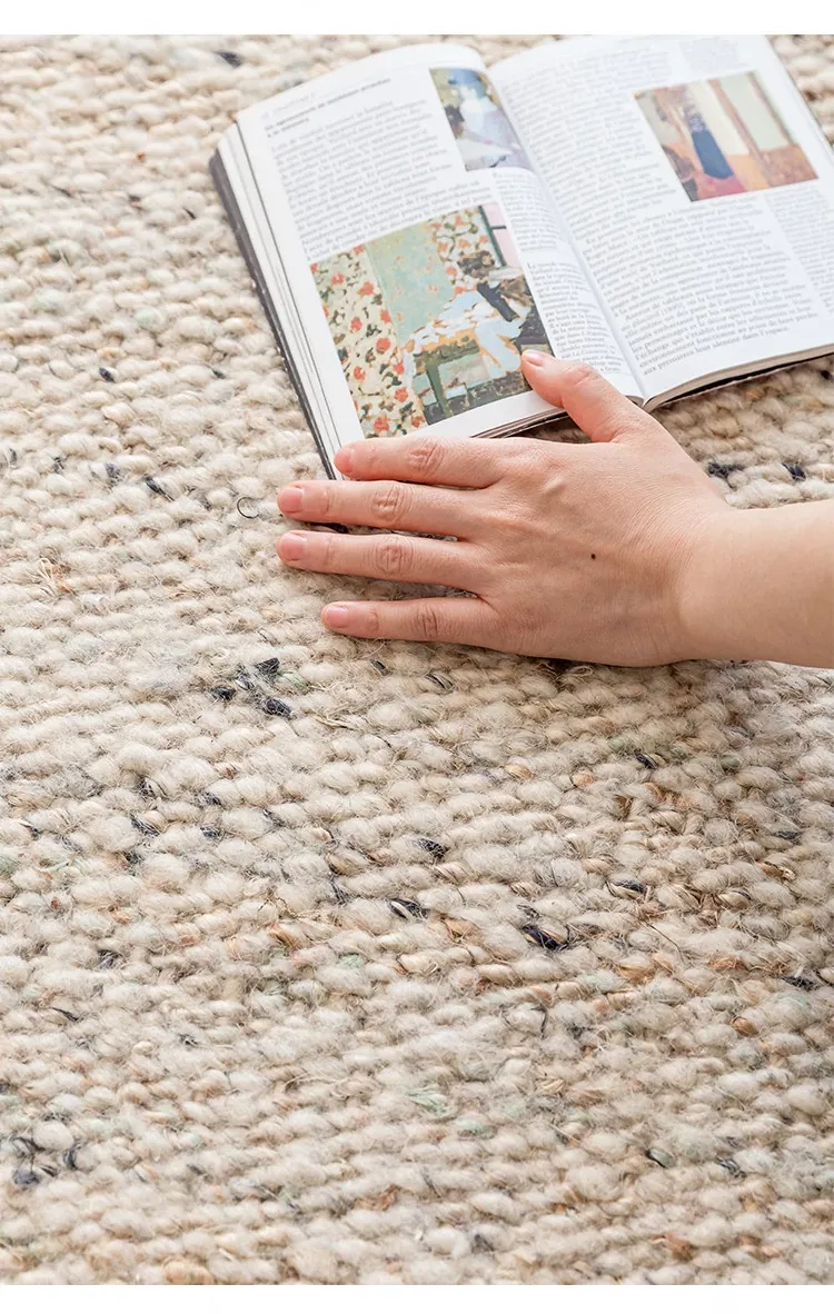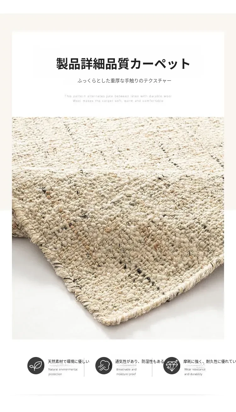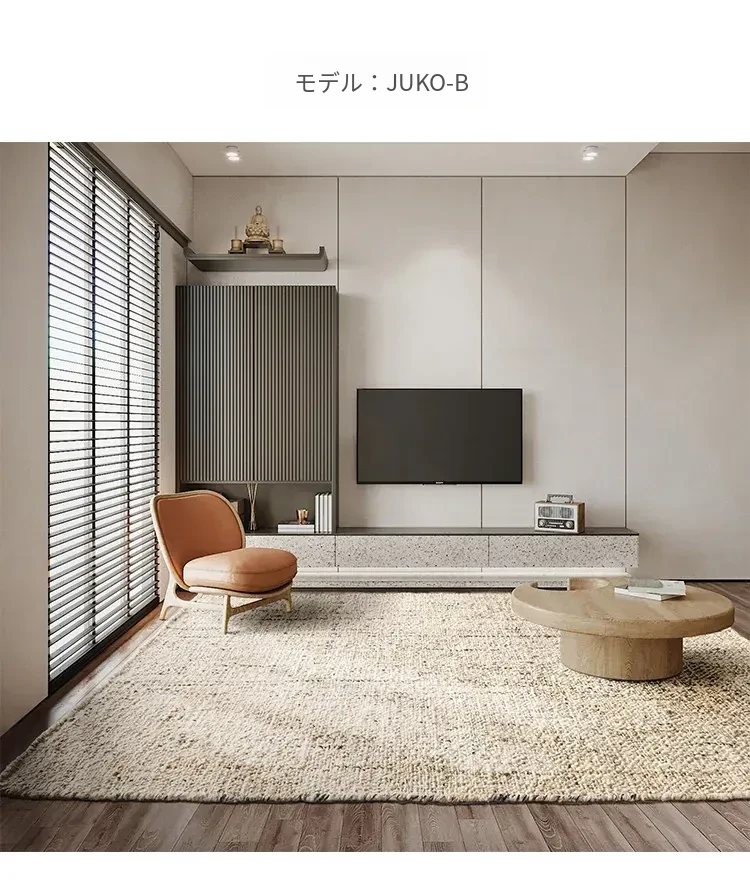 視覚的な美味しさを楽しむ!接着剤なし・ホルムアルデヒドフリーの手作りウールカーペット。リビングや寝室にぴったりな侘寂スタイルのシンプルなカラー。心地よい空間を演出します!