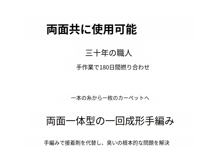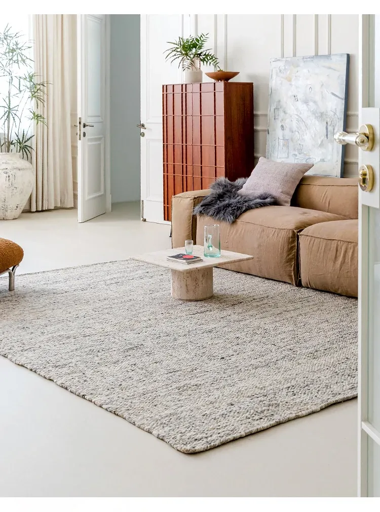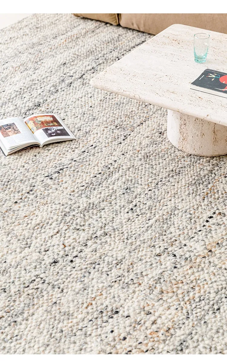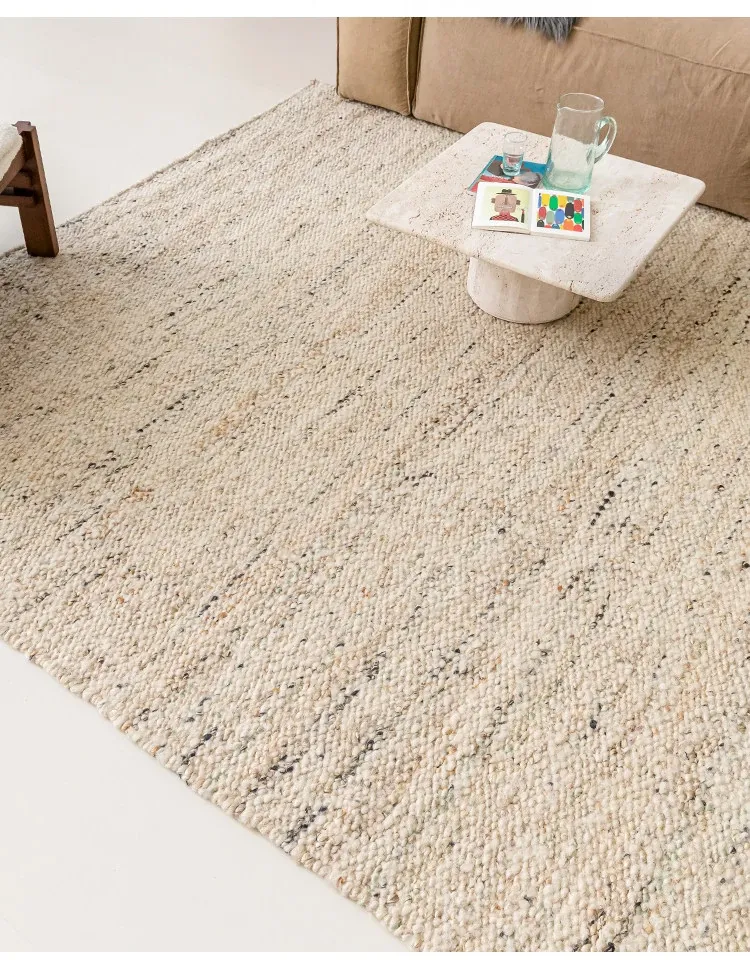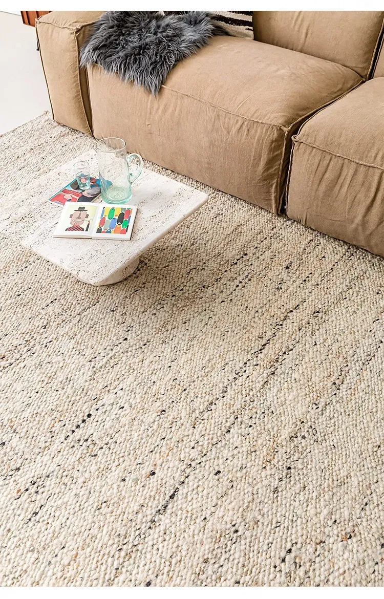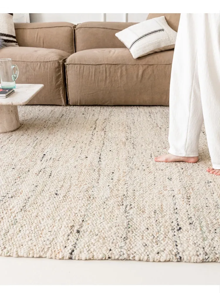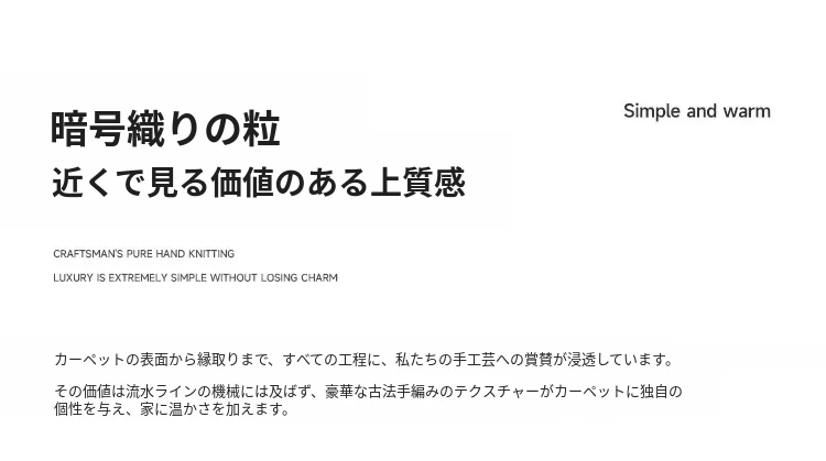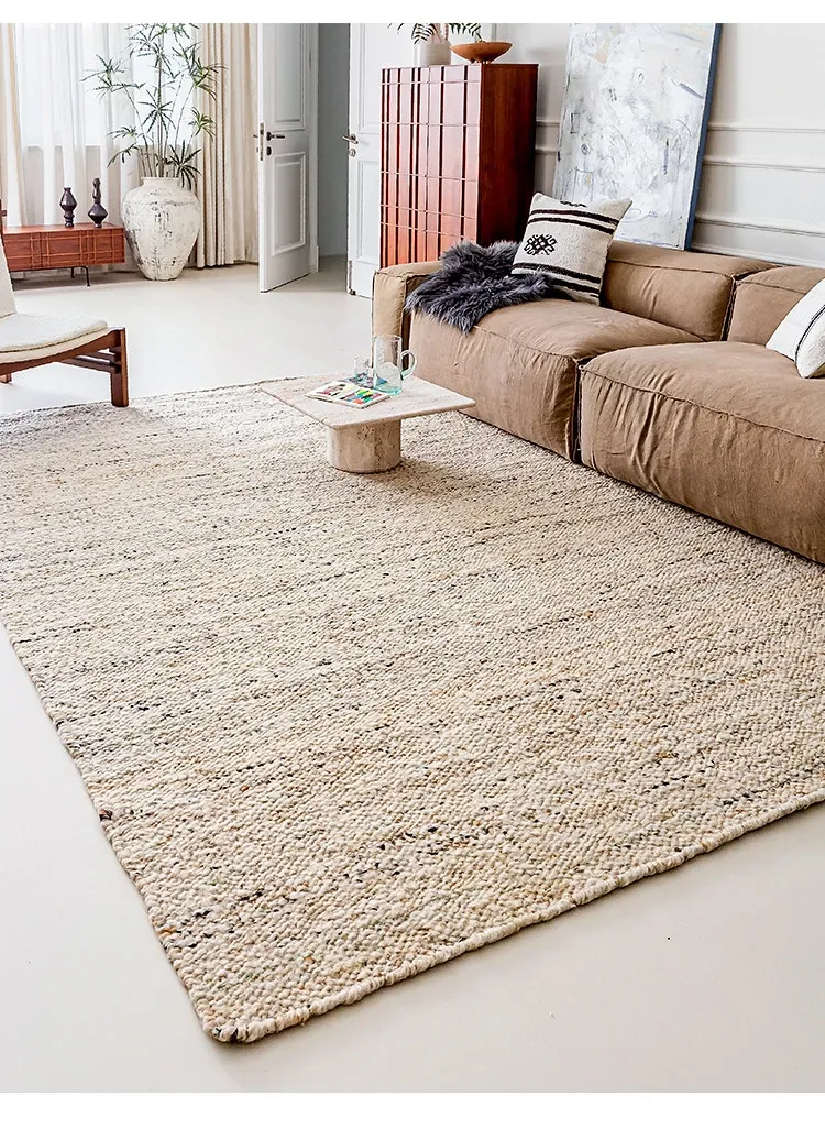 視覚的な美味しさを楽しむ!接着剤なし・ホルムアルデヒドフリーの手作りウールカーペット。リビングや寝室にぴったりな侘寂スタイルのシンプルなカラー。心地よい空間を演出します!
