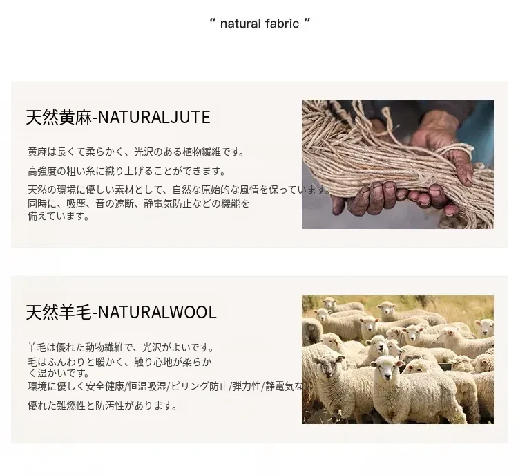 ✅黄麻+羊毛、✅"0"接着剤、✅"0"化学繊維
