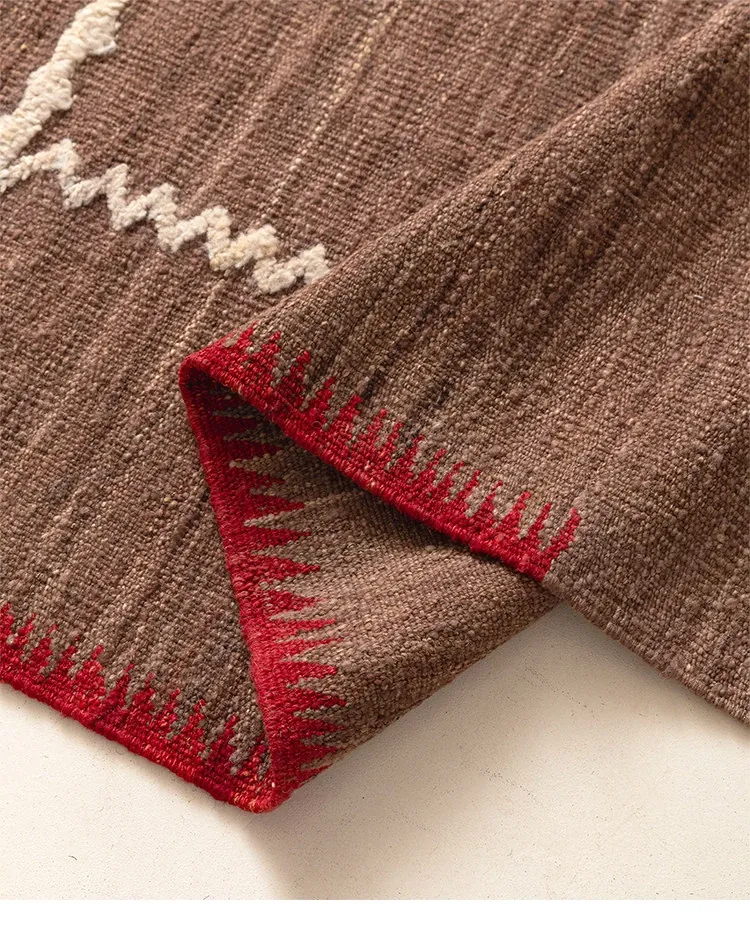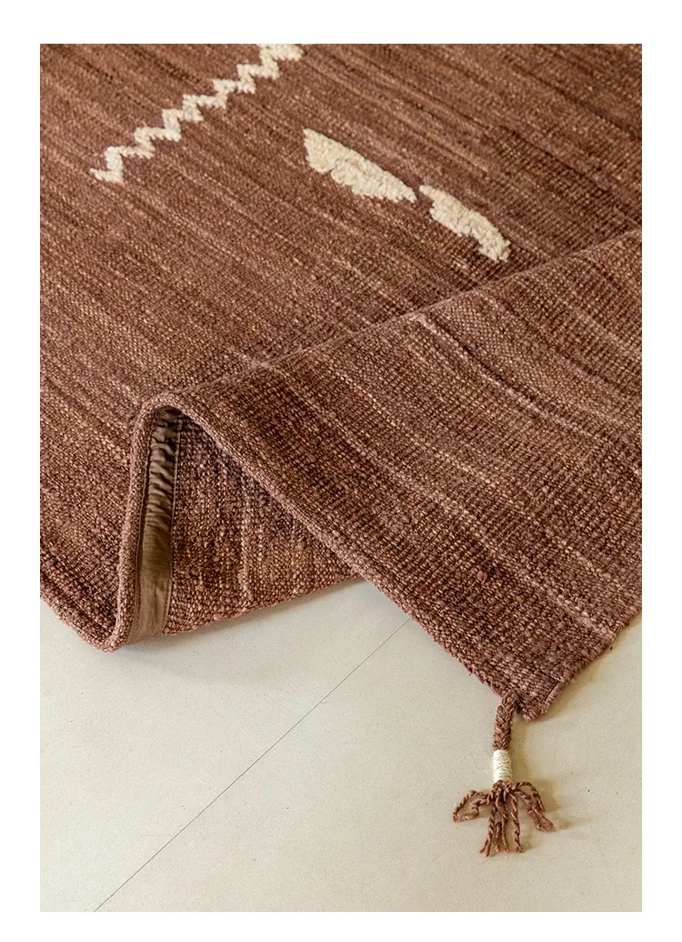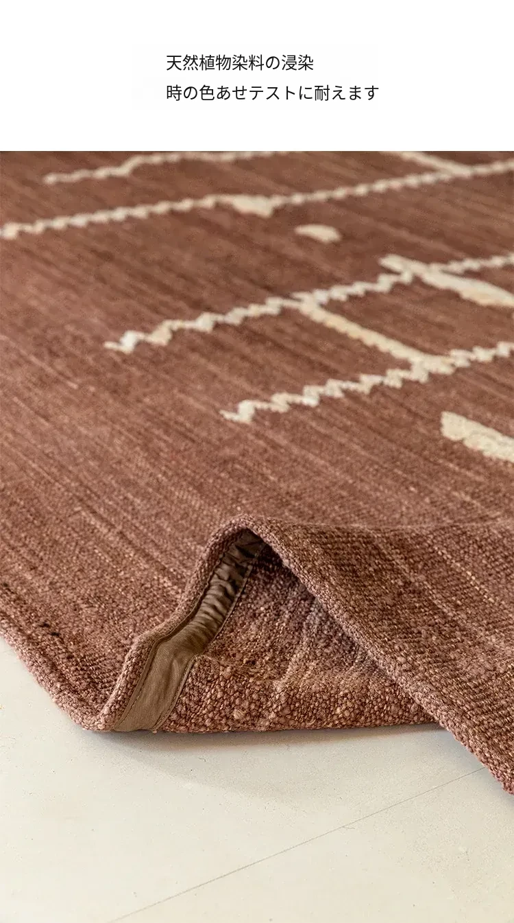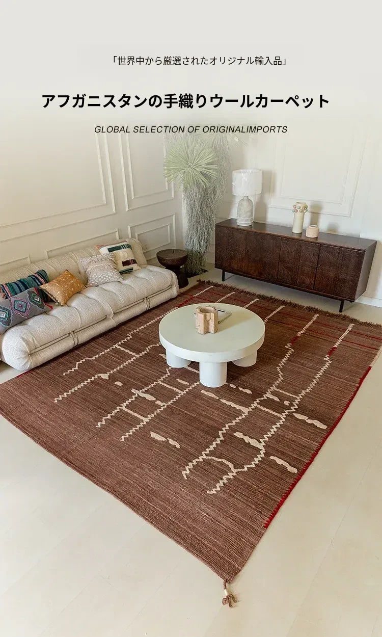 視覚的な美味しさ!アフガニスタン直輸入の手織りウールカーペット。現代の侘び寂びスタイルで、レトロな魅力を持つ接着剤不使用の一品。あなたのリビングに特別な雰囲気を添えます!