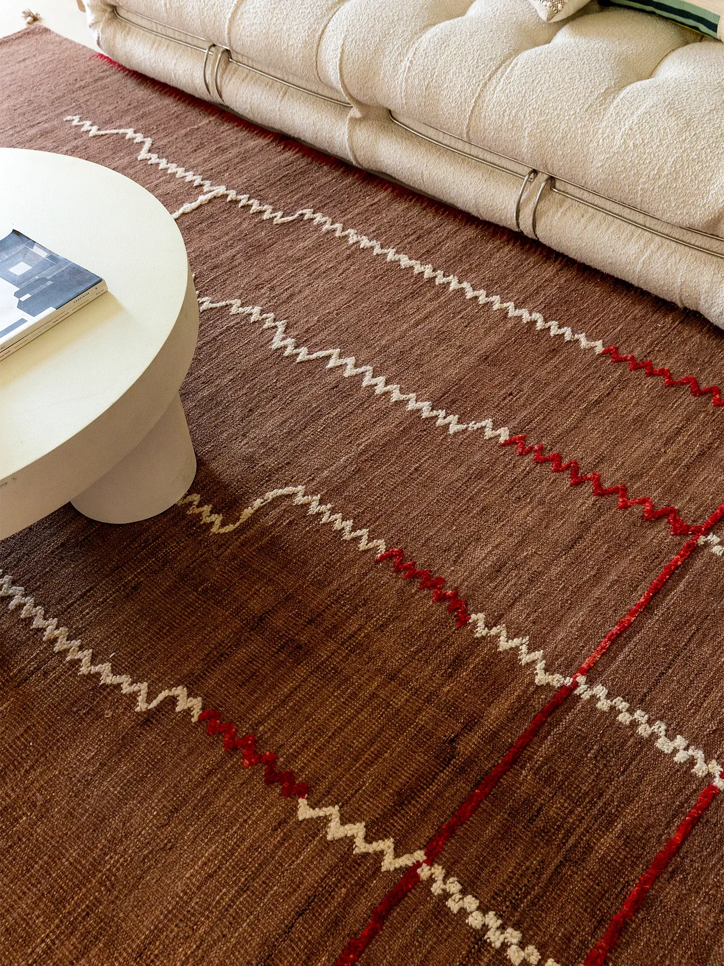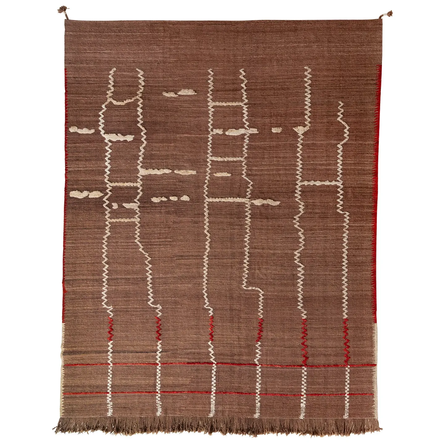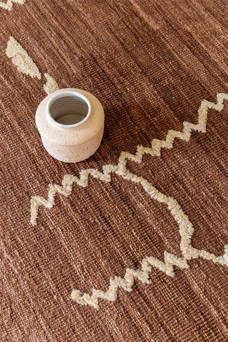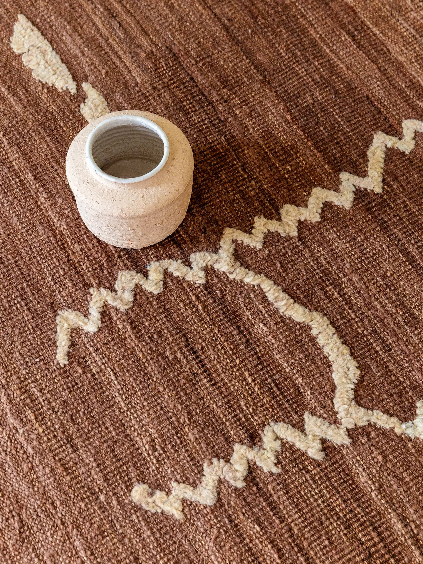 視覚的な美味しさ!アフガニスタン直輸入の手織りウールカーペット。現代の侘び寂びスタイルで、レトロな魅力を持つ接着剤不使用の一品。あなたのリビングに特別な雰囲気を添えます!