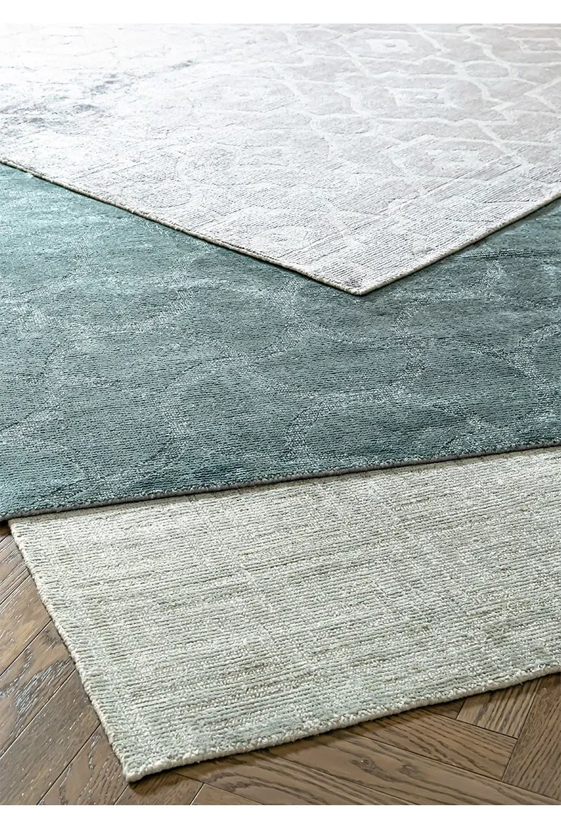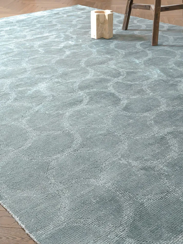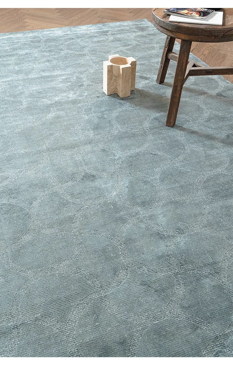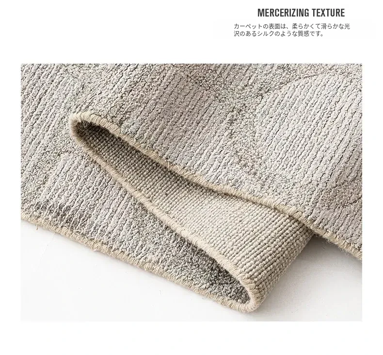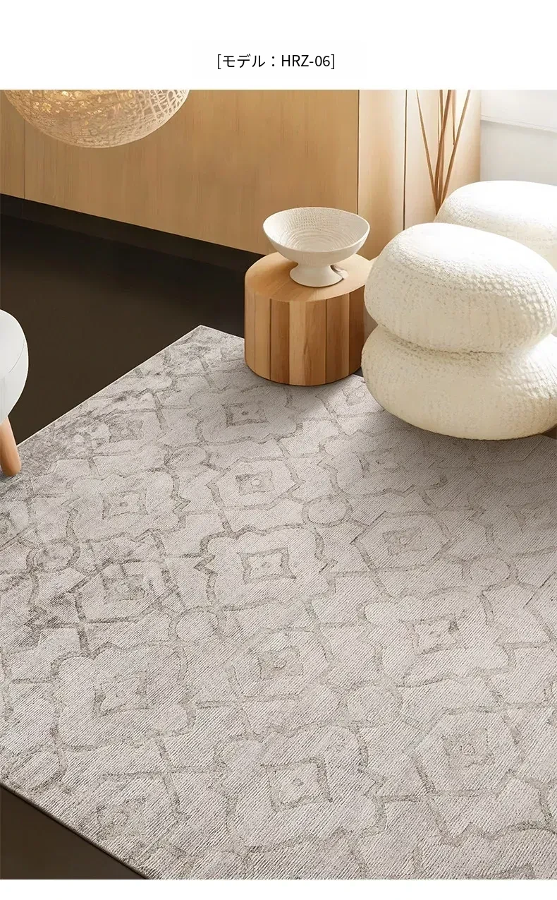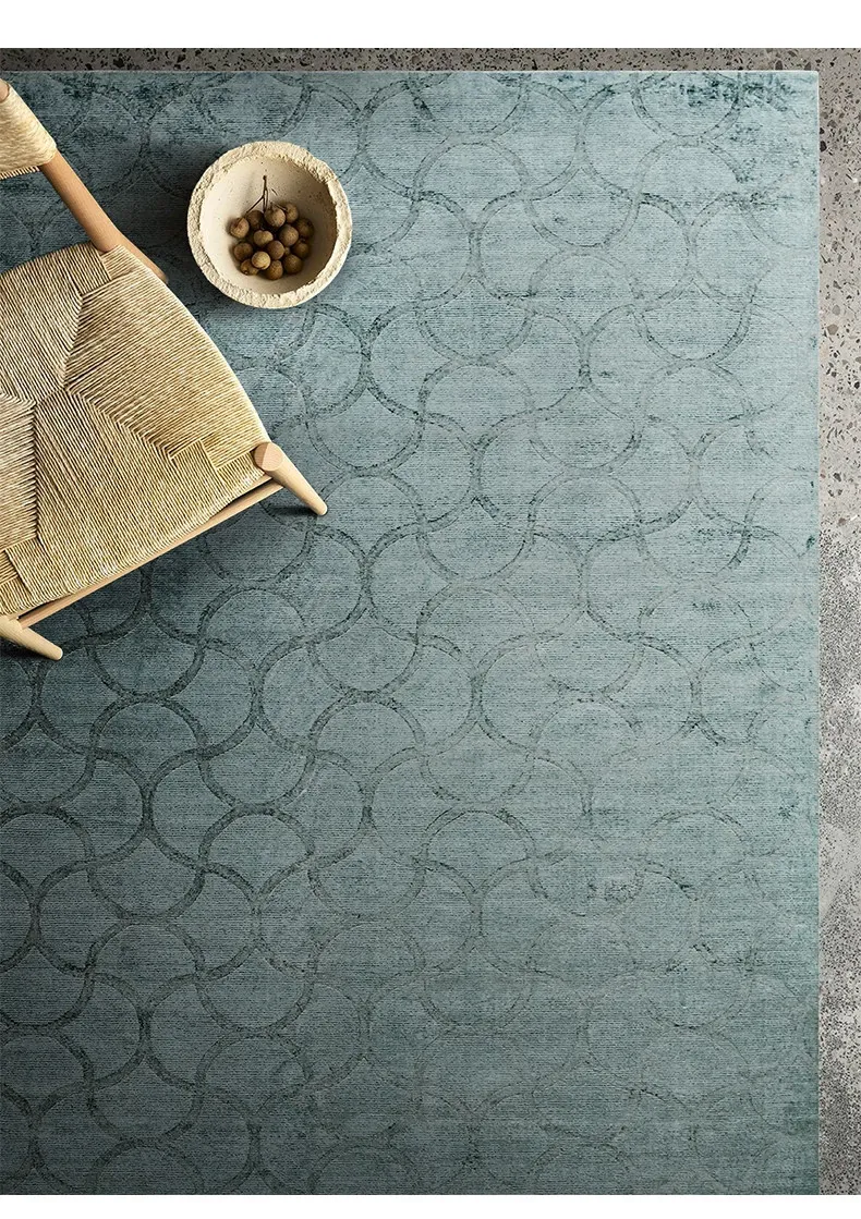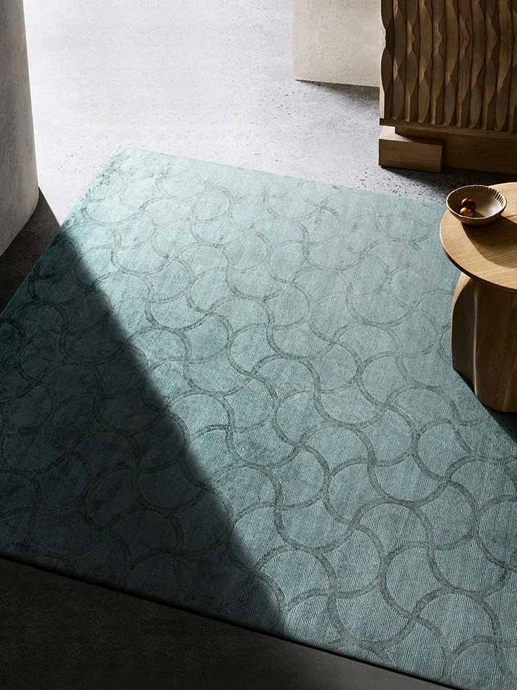視覚と味覚のハーモニー!オリジナル輸入の高級感あふれる大地毯。リビングにぴったりのウールとシルク混合のグリーンカーペット、接着剤やホルムアルデヒド不使用で安心・安全。