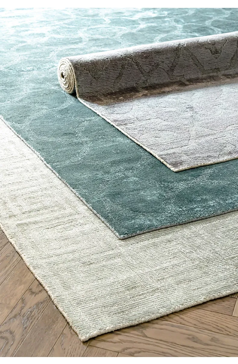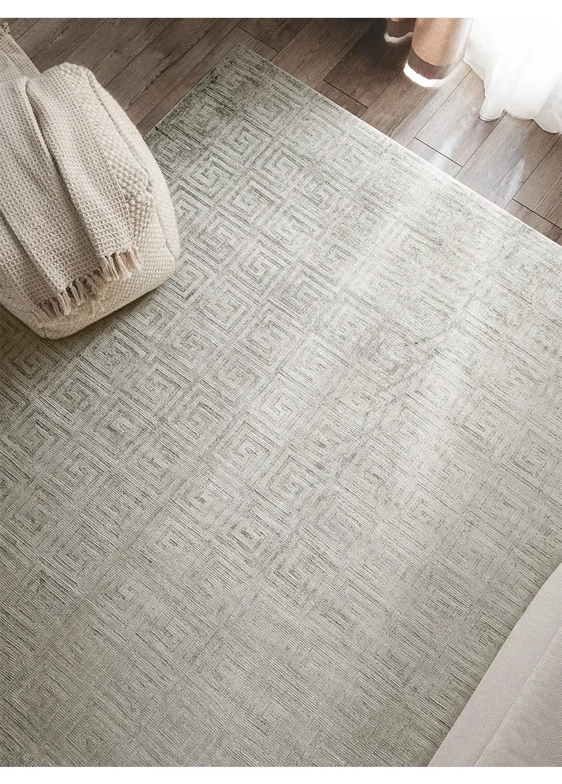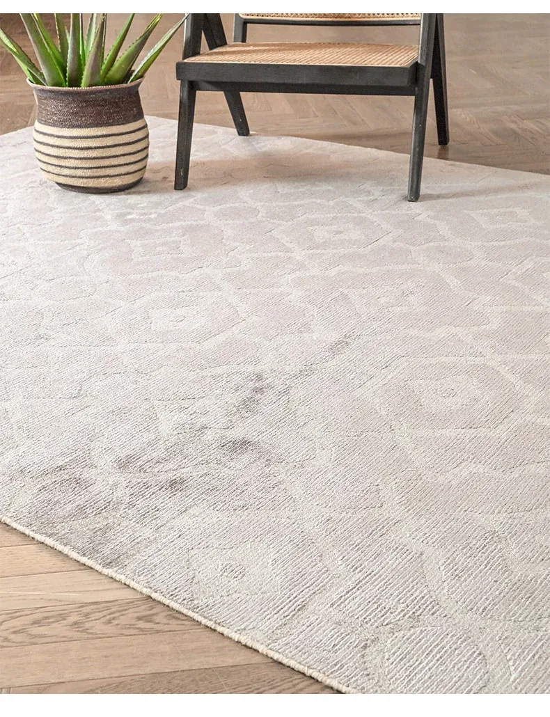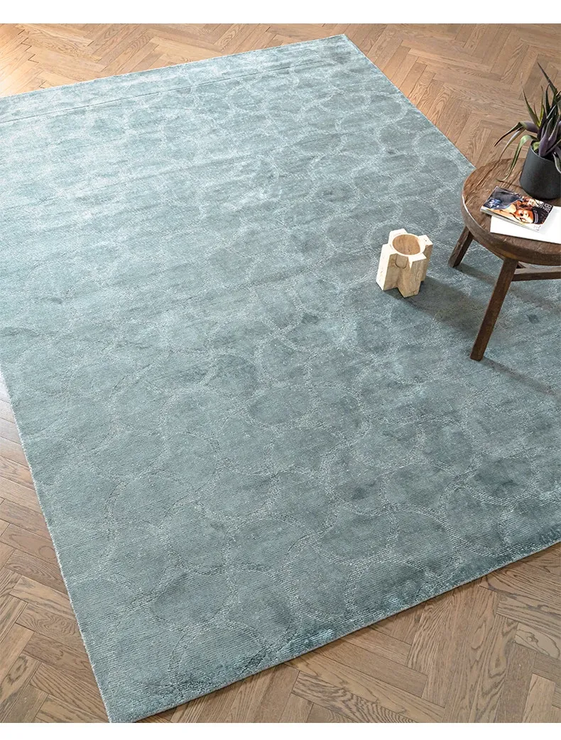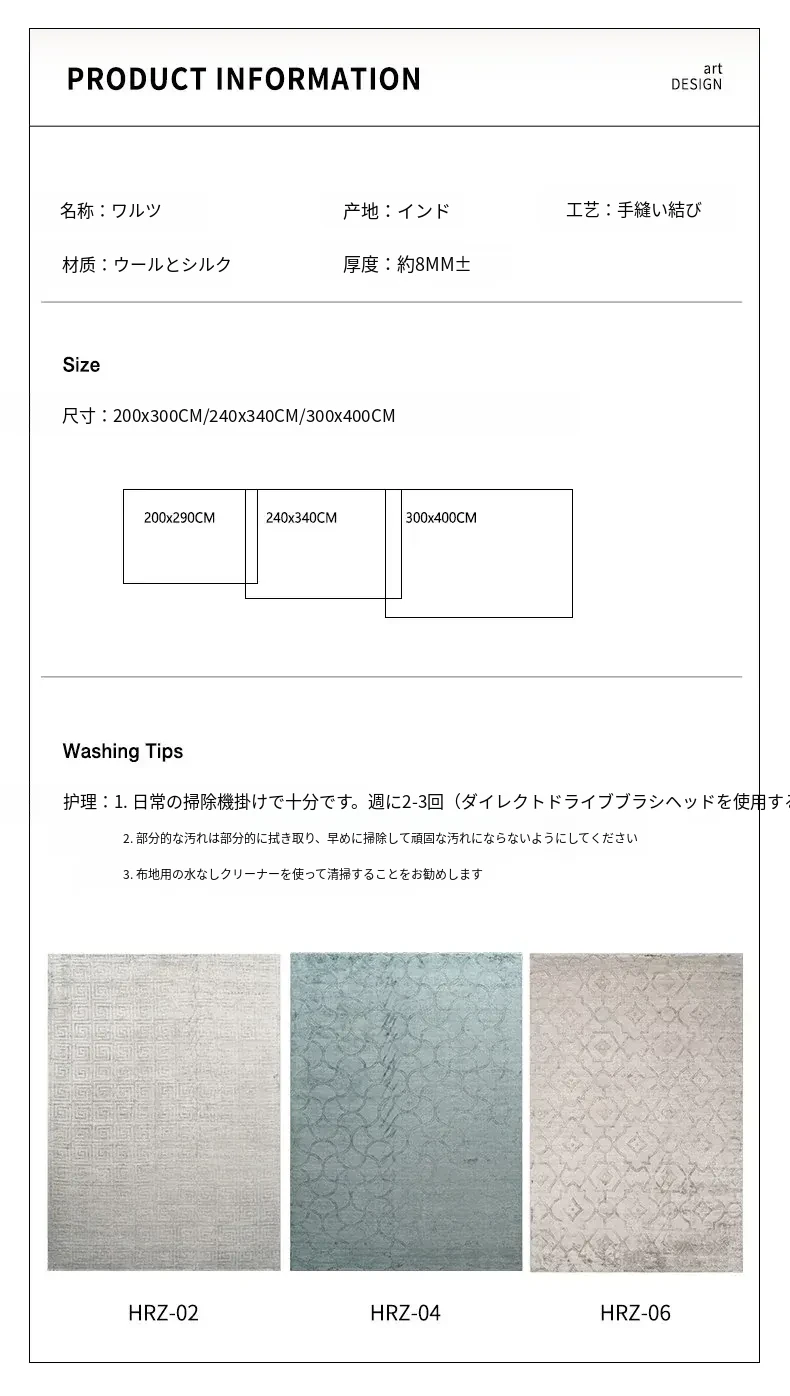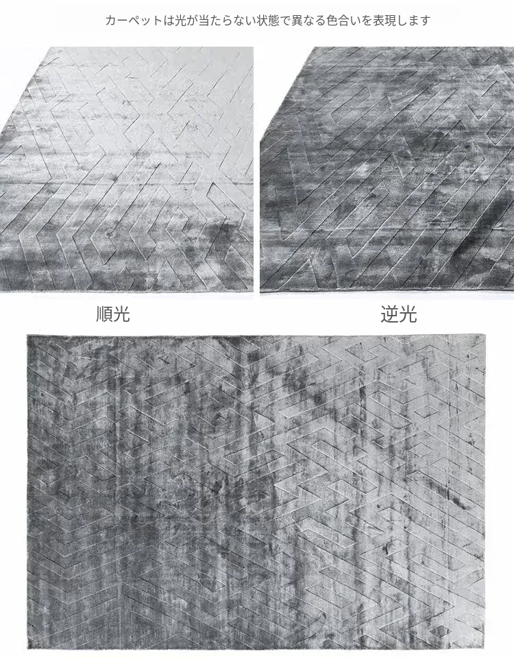視覚と味覚のハーモニー!オリジナル輸入の高級感あふれる大地毯。リビングにぴったりのウールとシルク混合のグリーンカーペット、接着剤やホルムアルデヒド不使用で安心・安全。