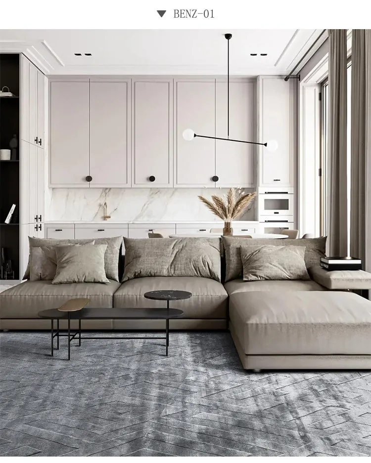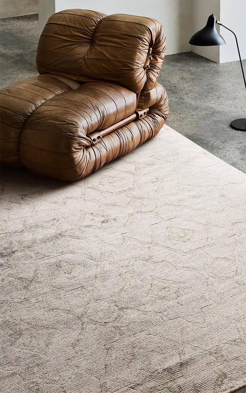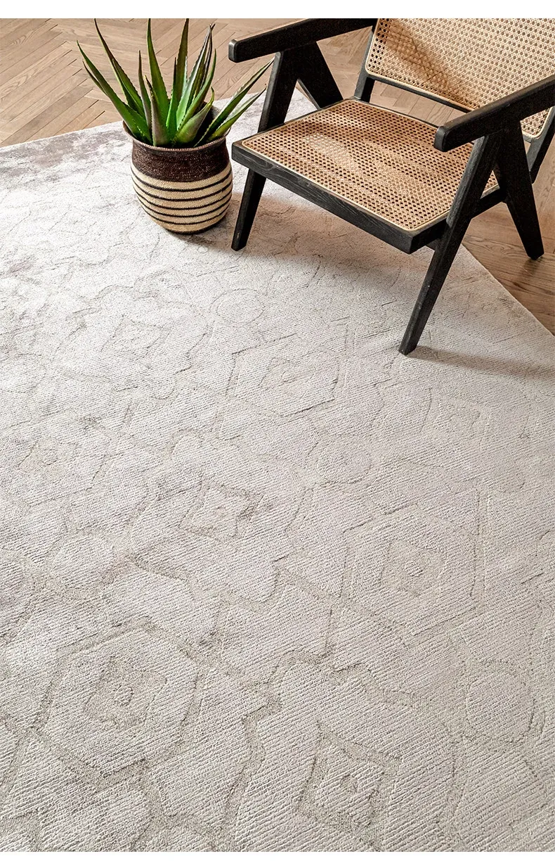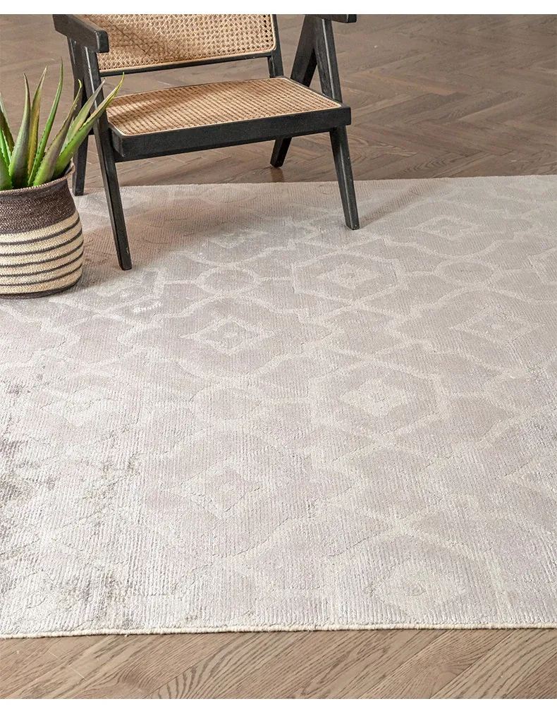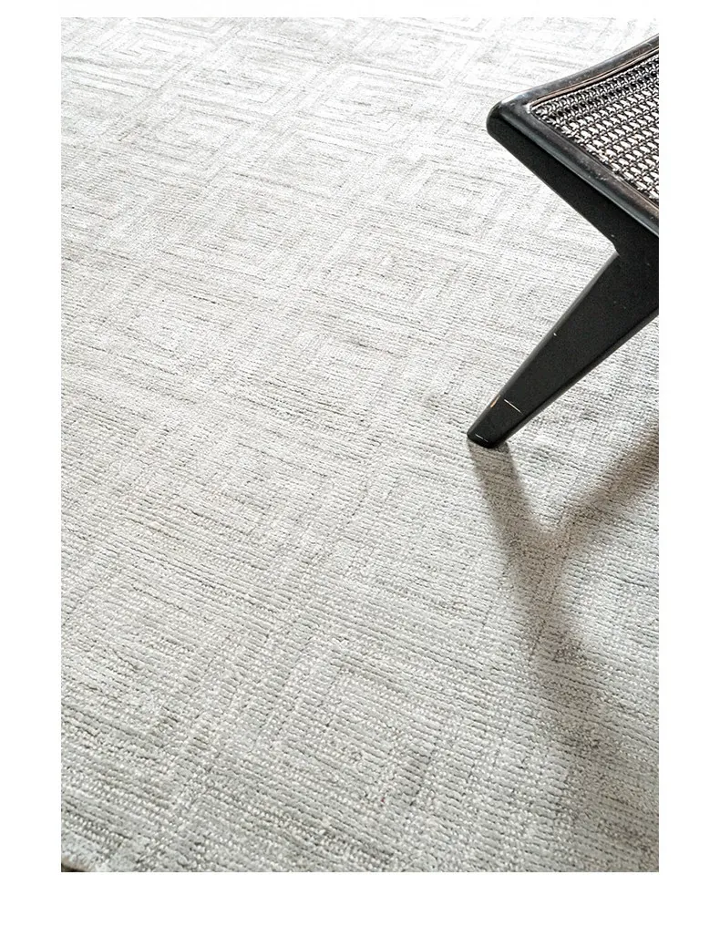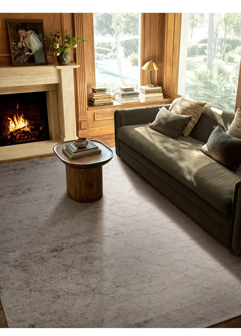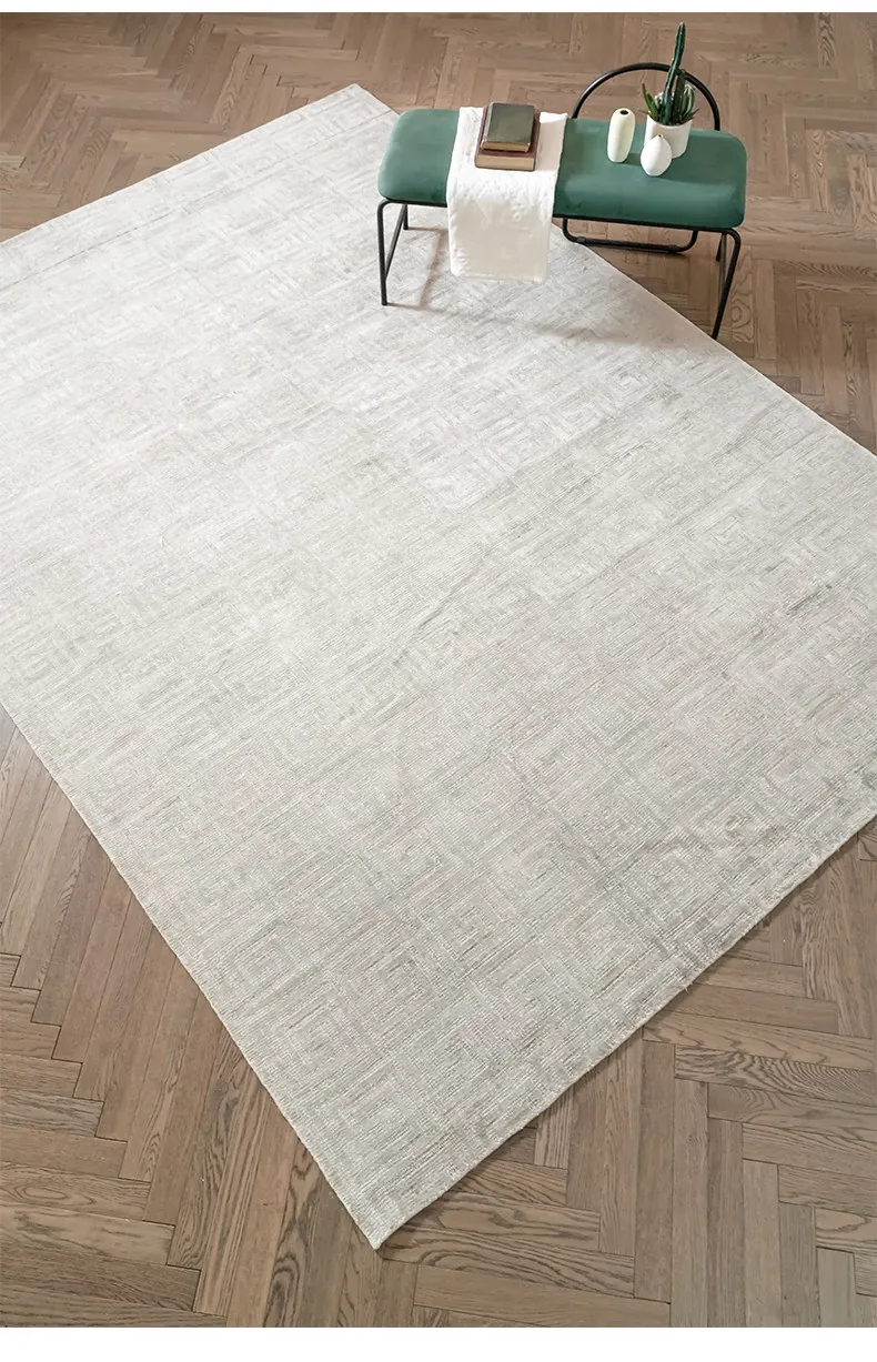 視覚と味覚のハーモニー!オリジナル輸入の高級感あふれる大地毯。リビングにぴったりのウールとシルク混合のグリーンカーペット、接着剤やホルムアルデヒド不使用で安心・安全。