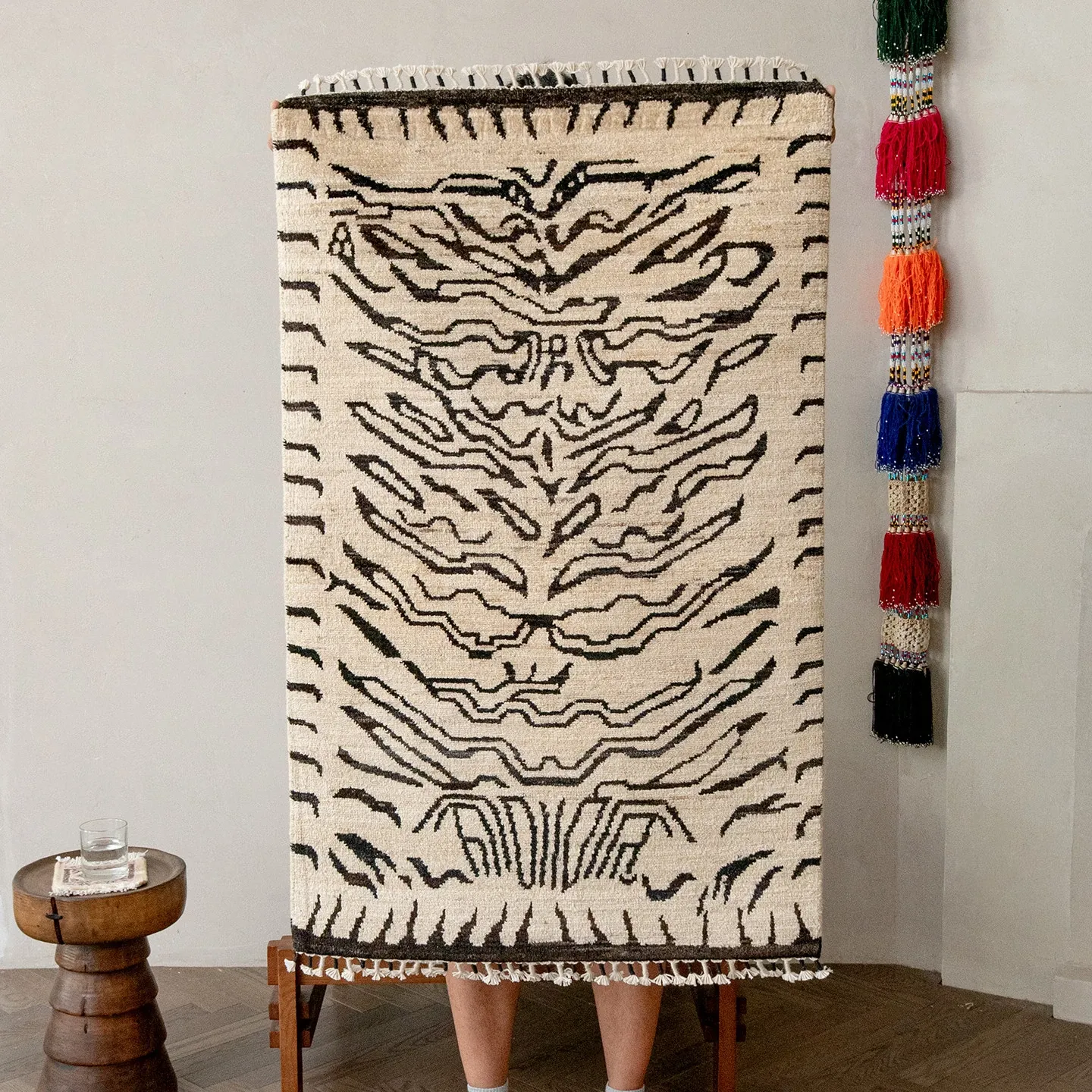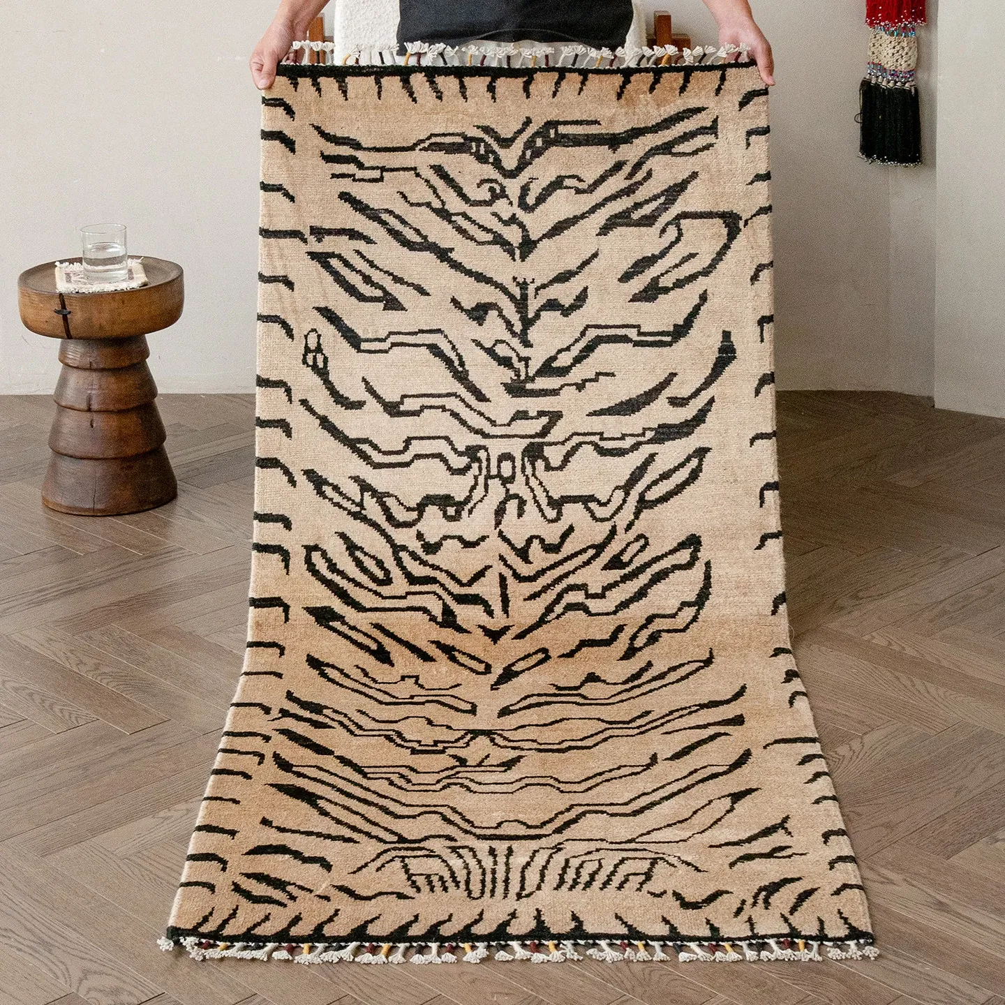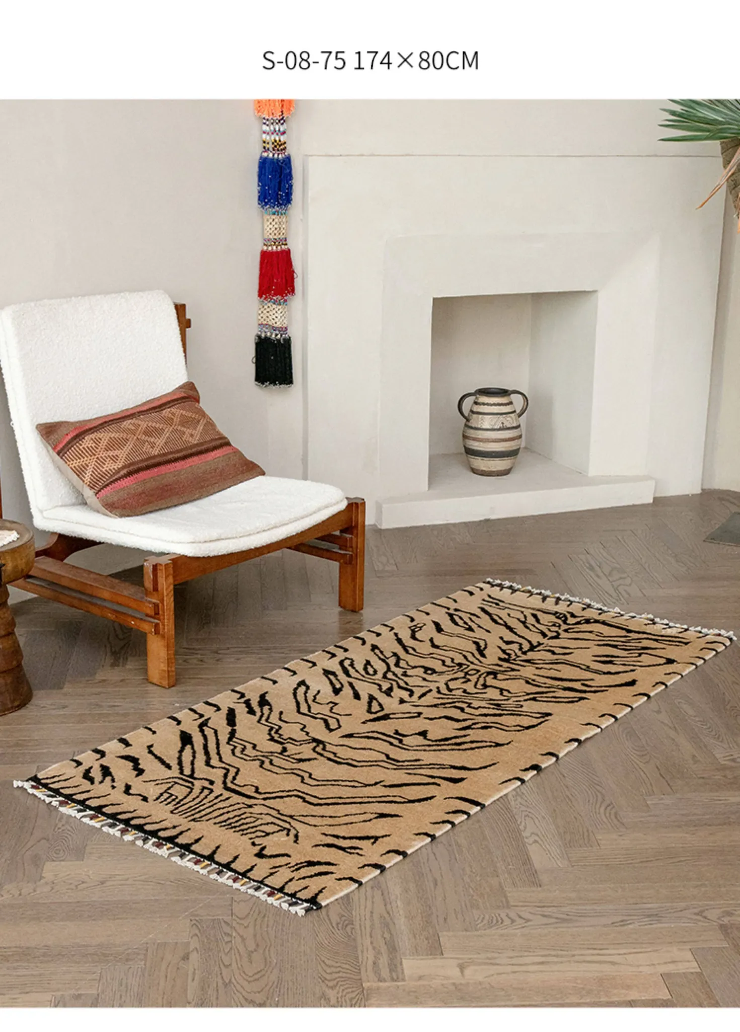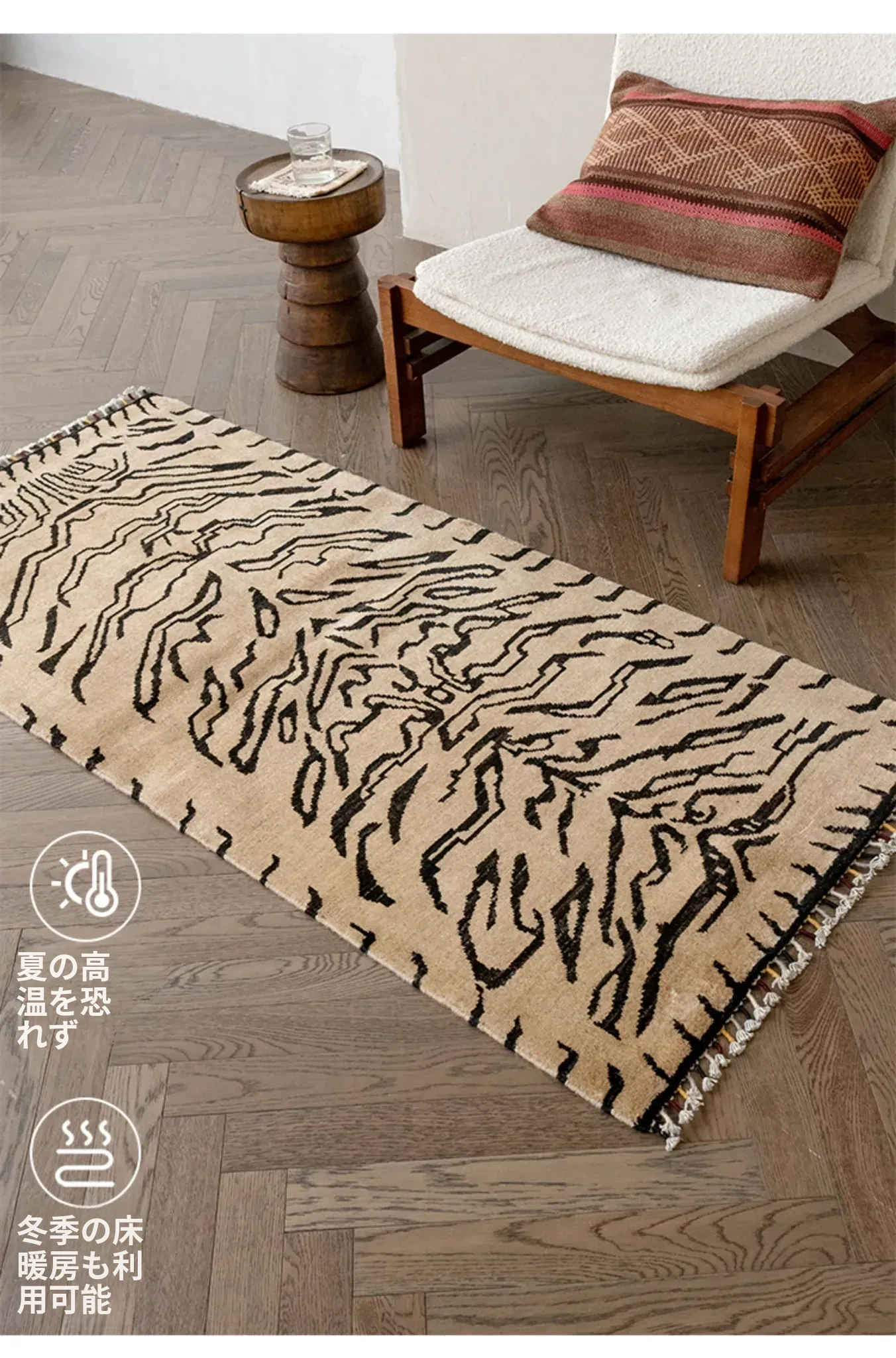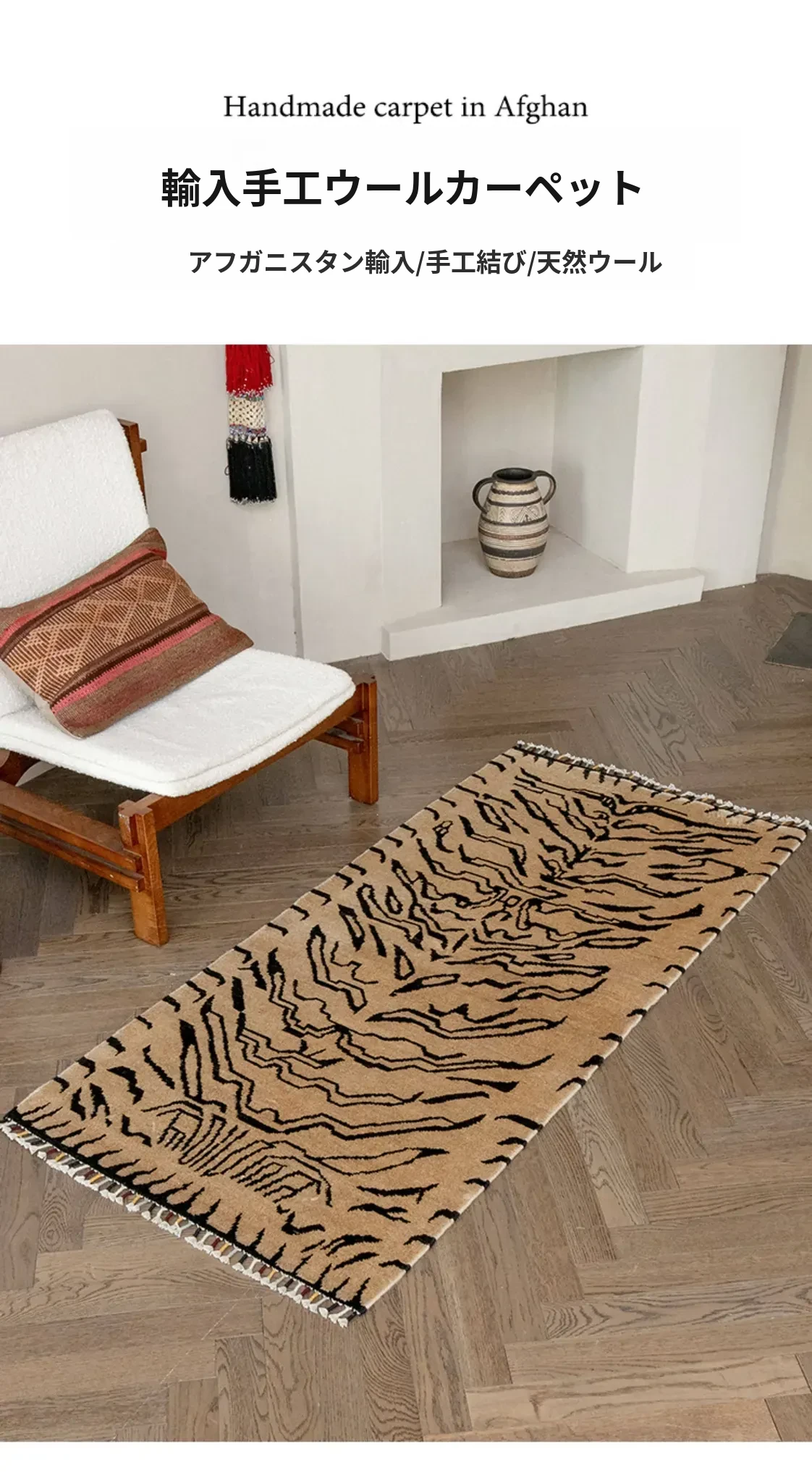 視覚と味覚を刺激する!アフガニスタン直輸入のトラ柄レトロ民族風ウールラグ - 高級感あふれるリビングや寝室にぴったりのアイテム!