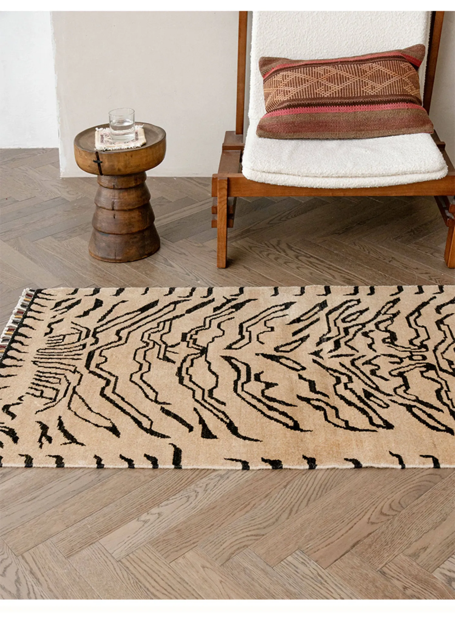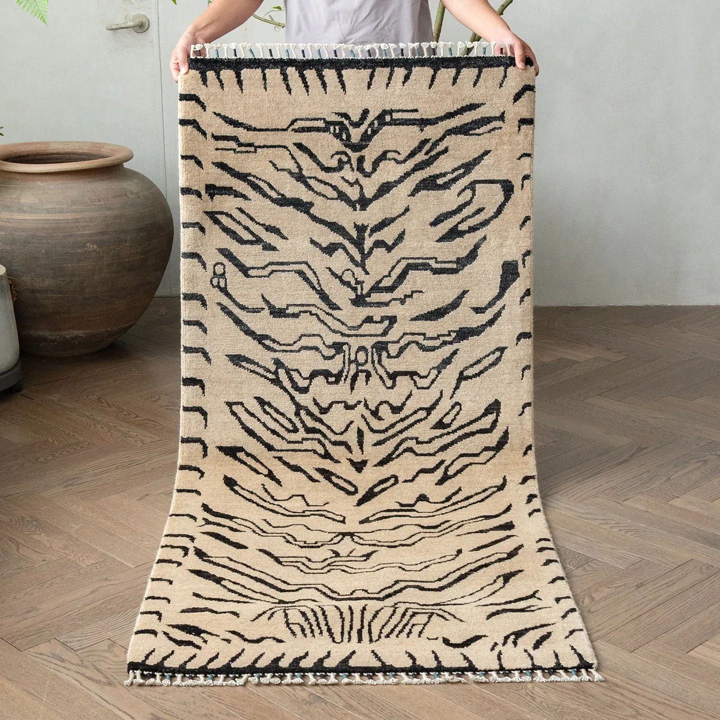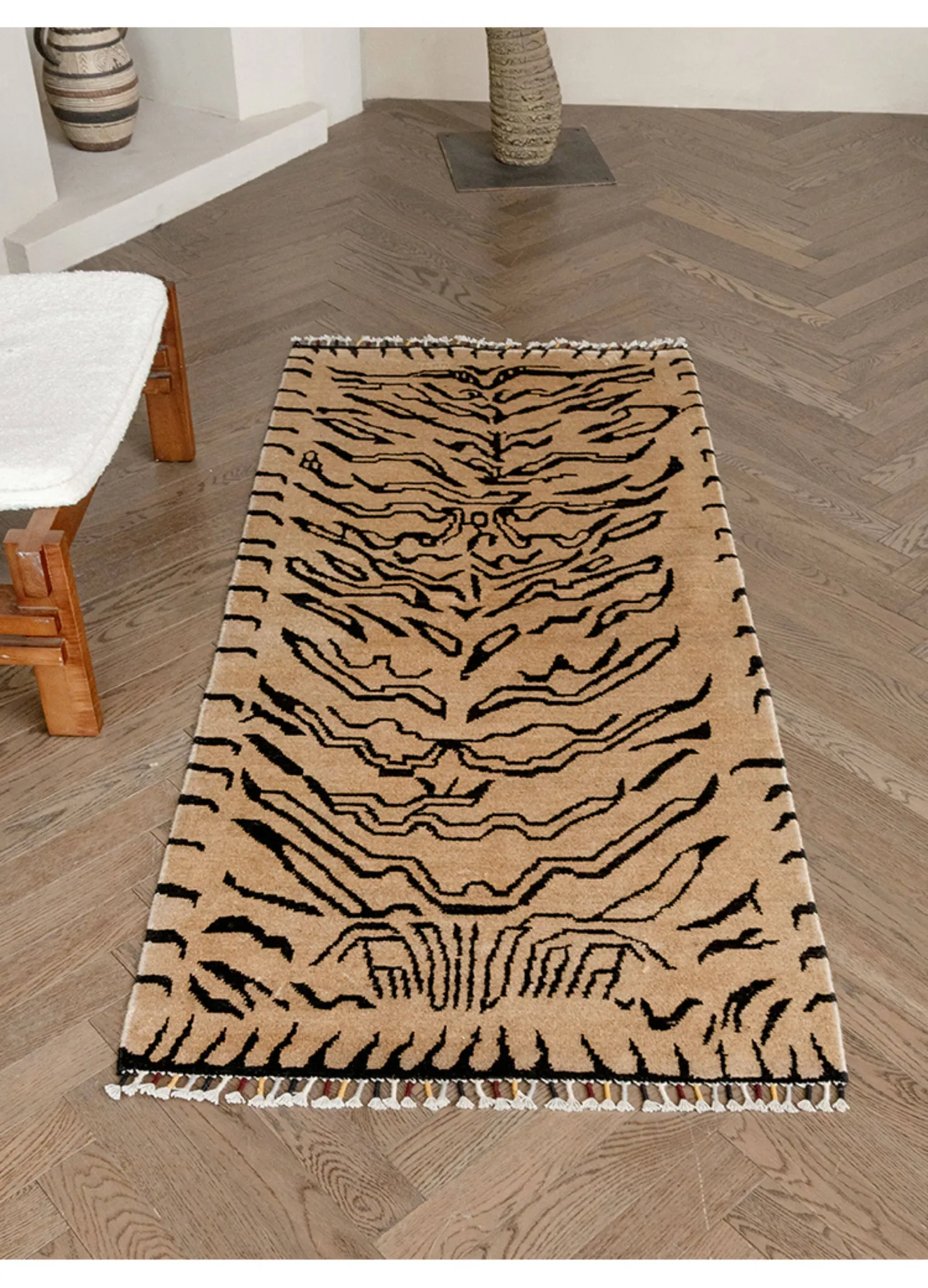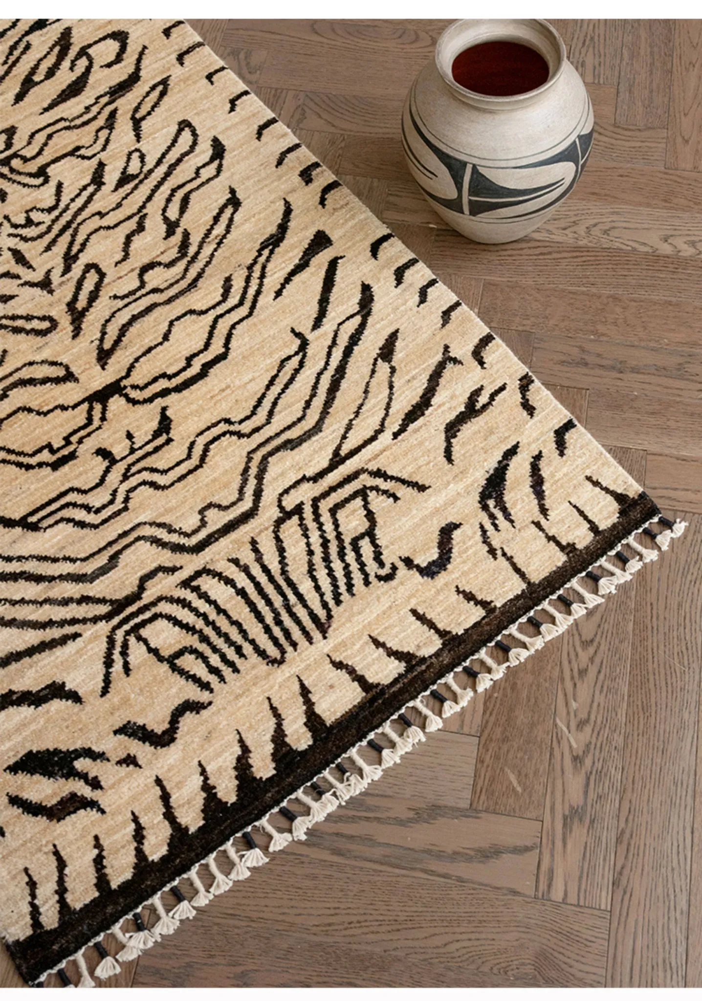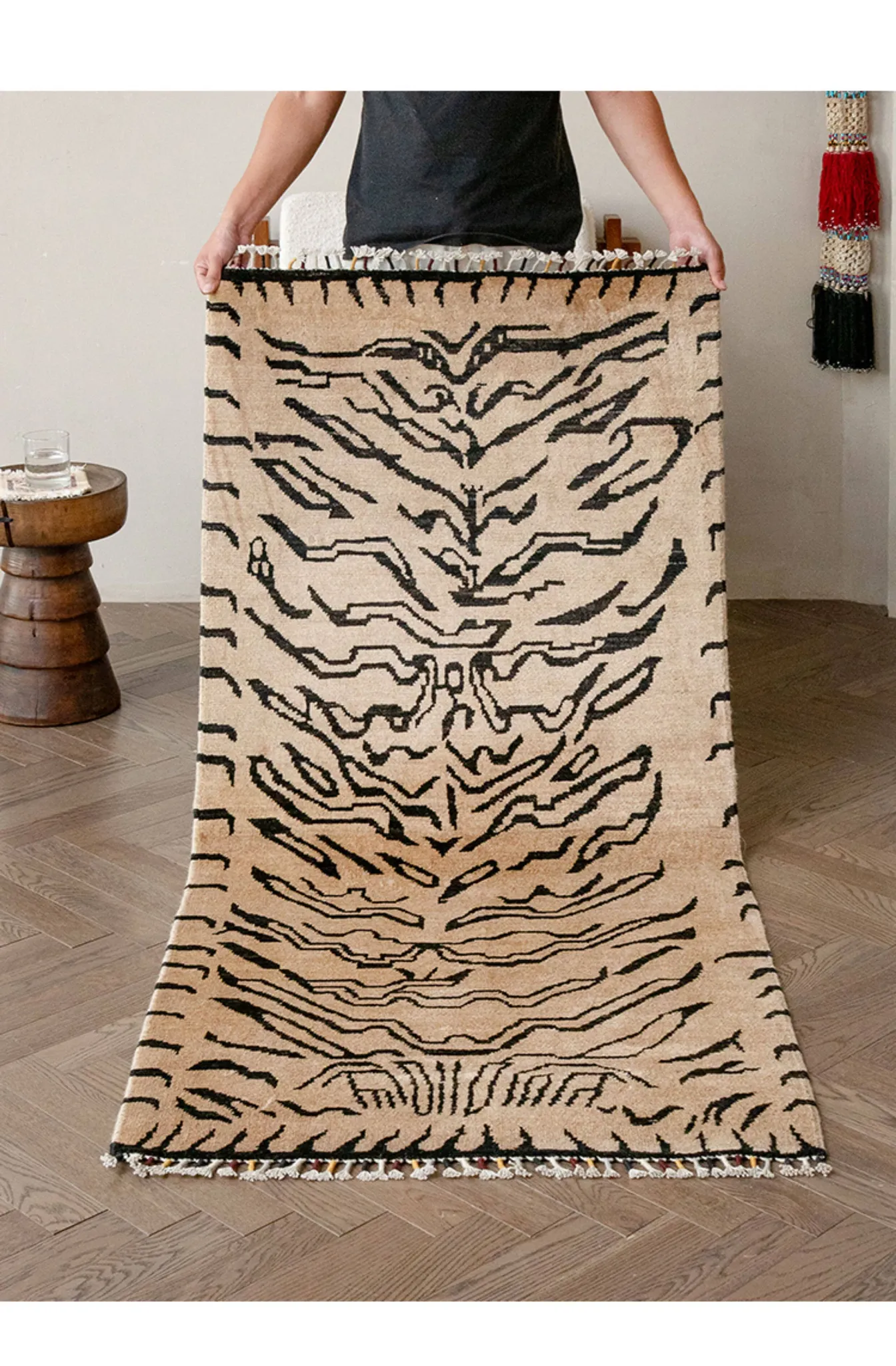 視覚と味覚を刺激する!アフガニスタン直輸入のトラ柄レトロ民族風ウールラグ - 高級感あふれるリビングや寝室にぴったりのアイテム!