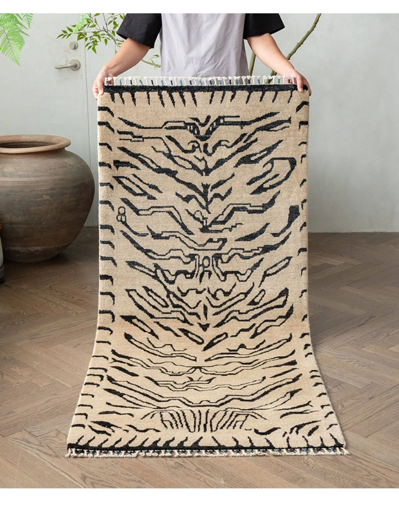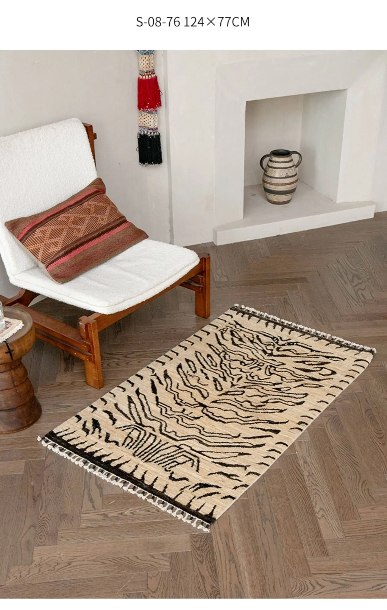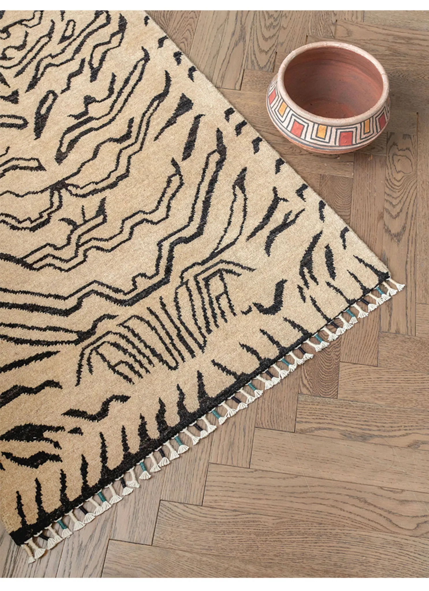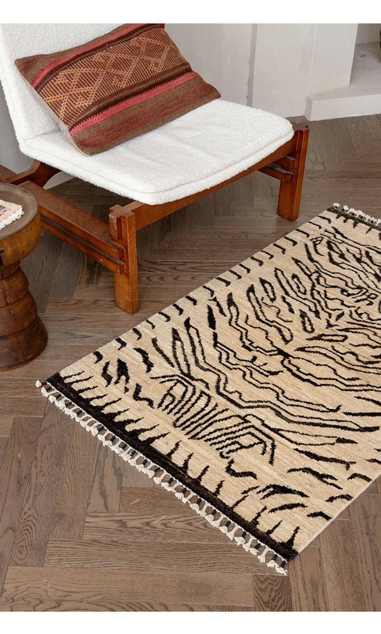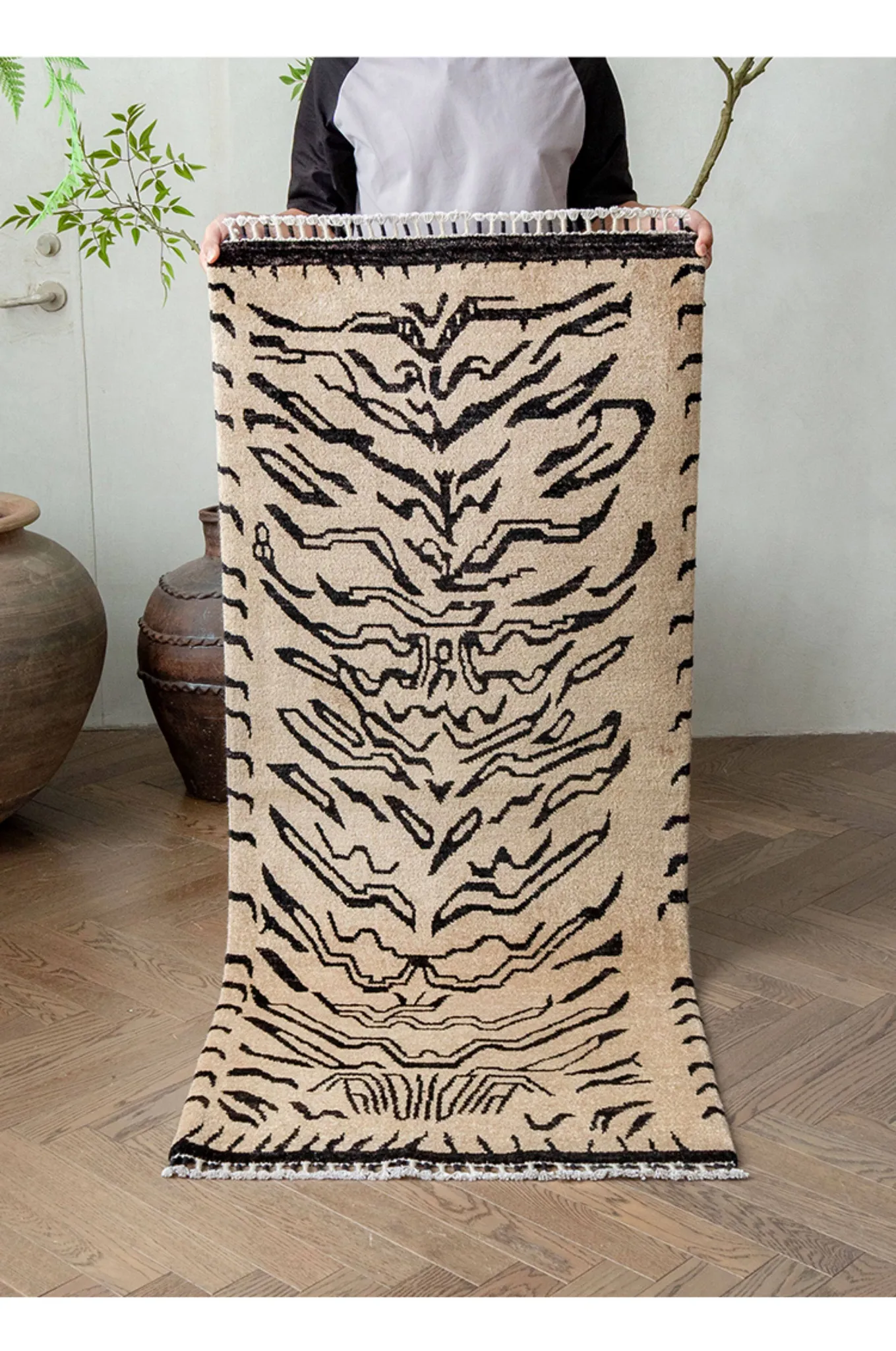 視覚と味覚を刺激する!アフガニスタン直輸入のトラ柄レトロ民族風ウールラグ - 高級感あふれるリビングや寝室にぴったりのアイテム!