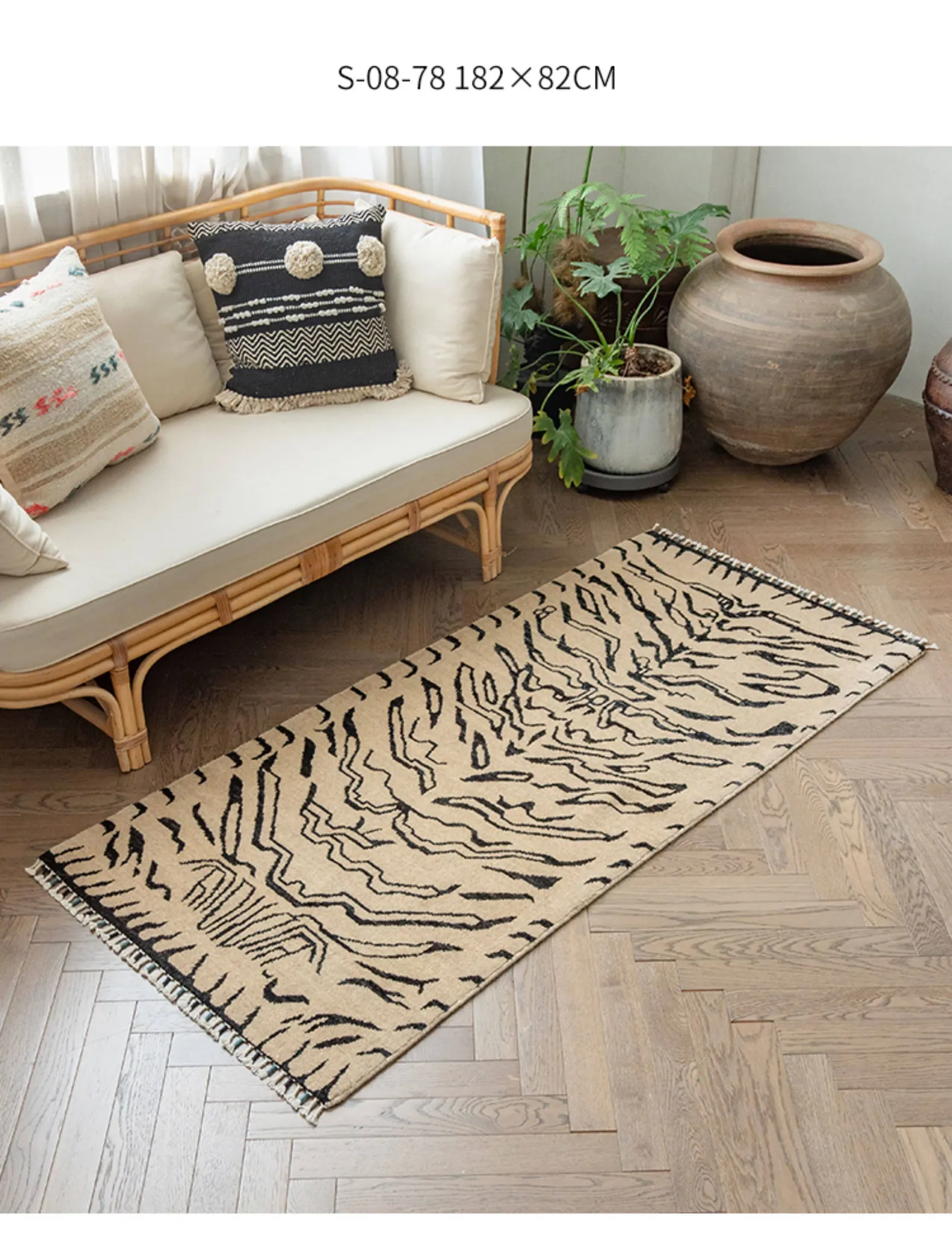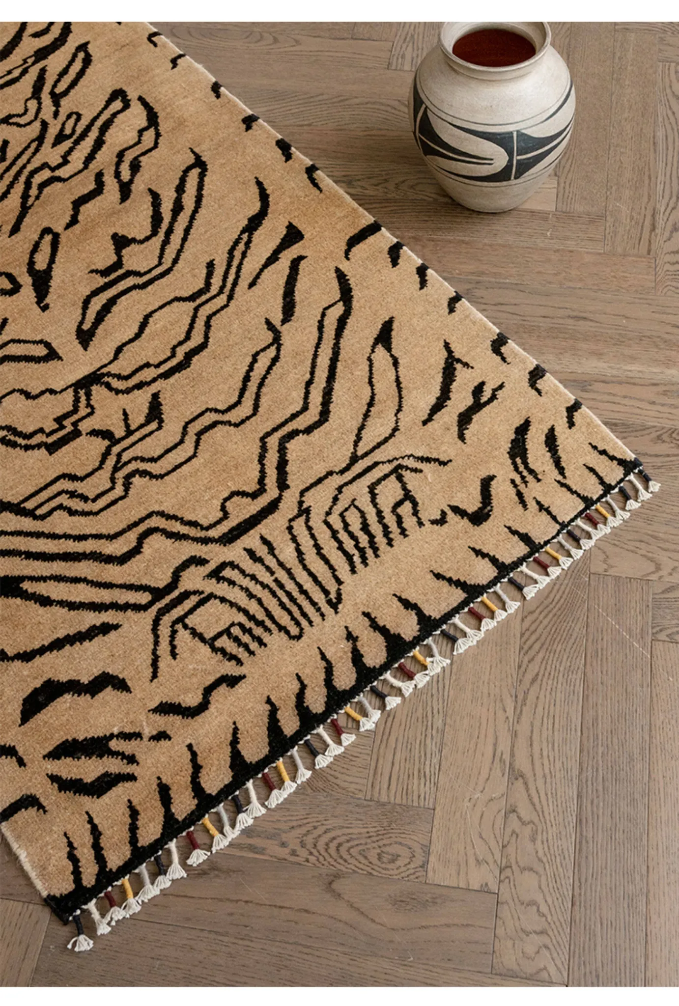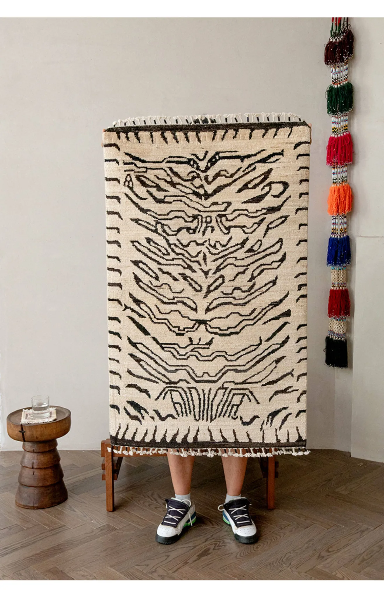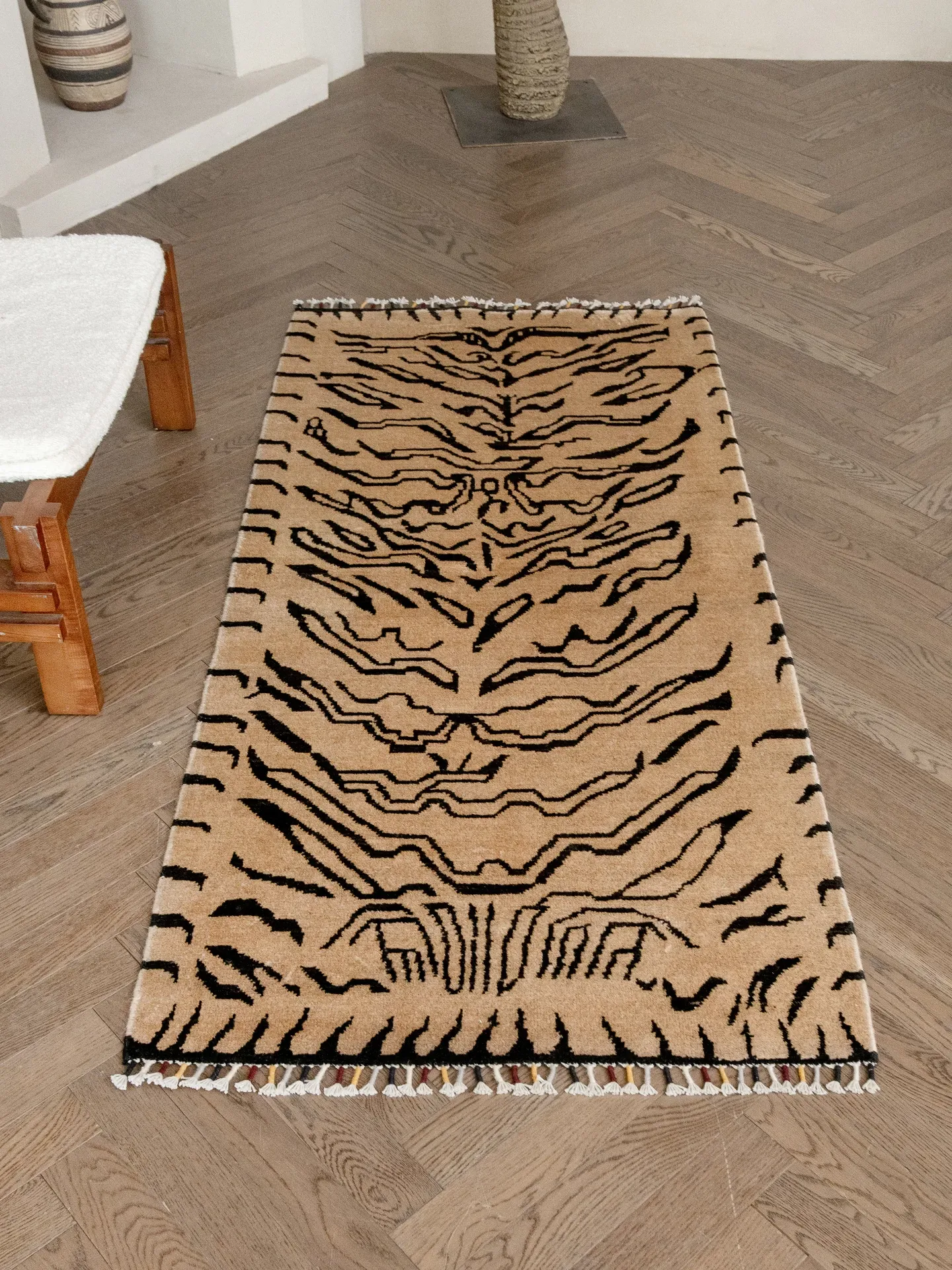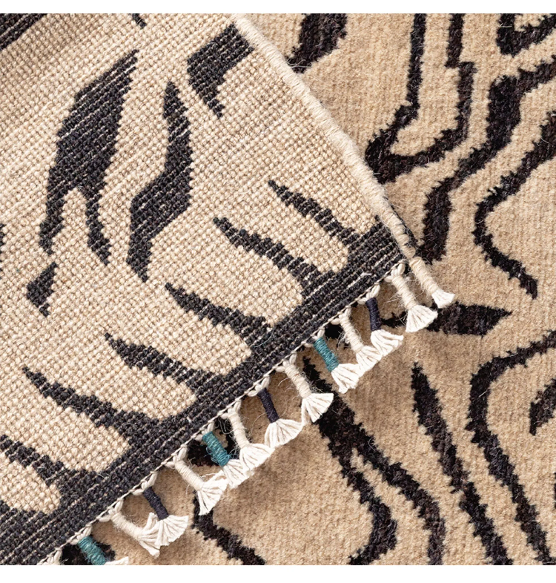 視覚と味覚を刺激する!アフガニスタン直輸入のトラ柄レトロ民族風ウールラグ - 高級感あふれるリビングや寝室にぴったりのアイテム!