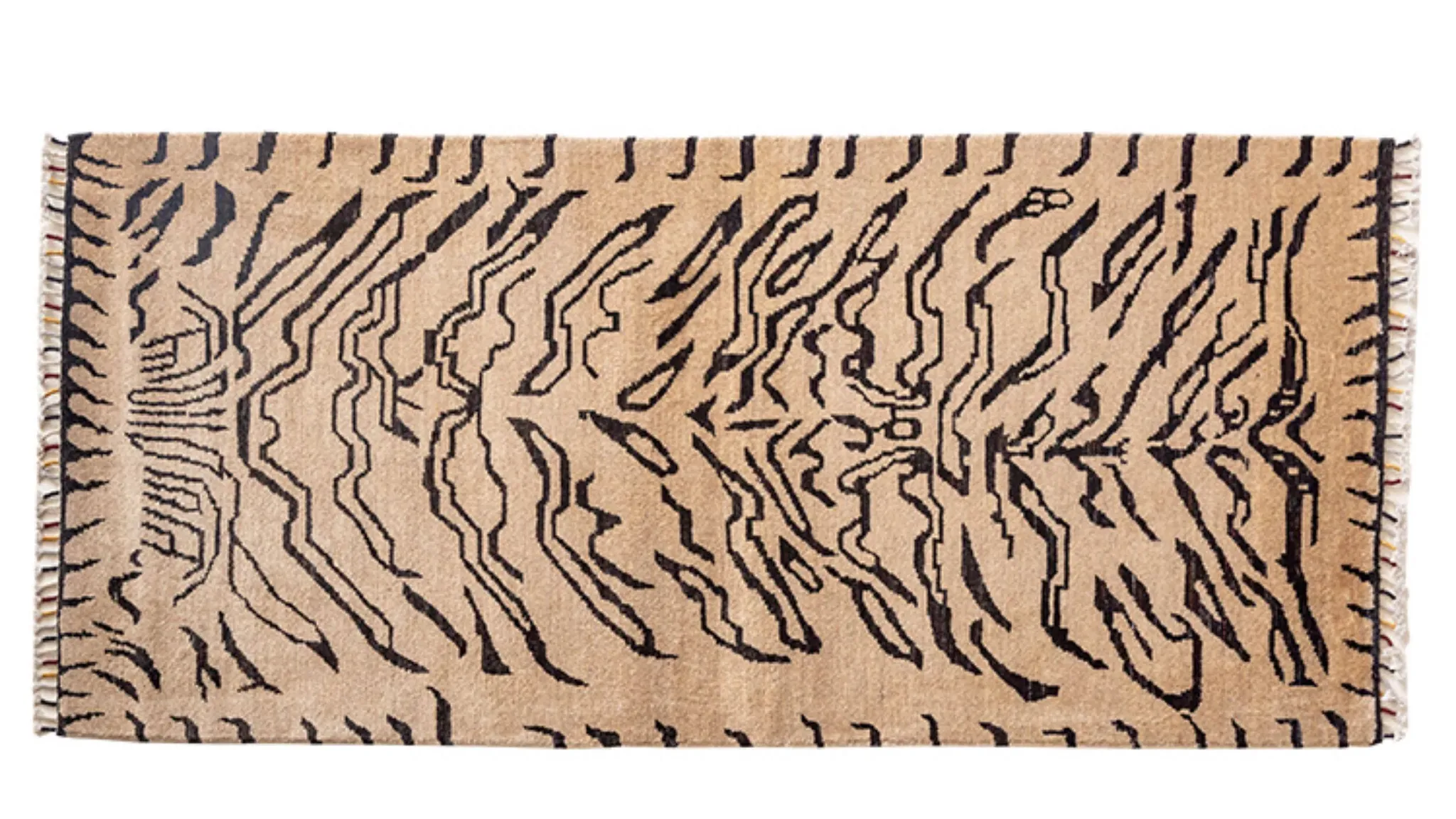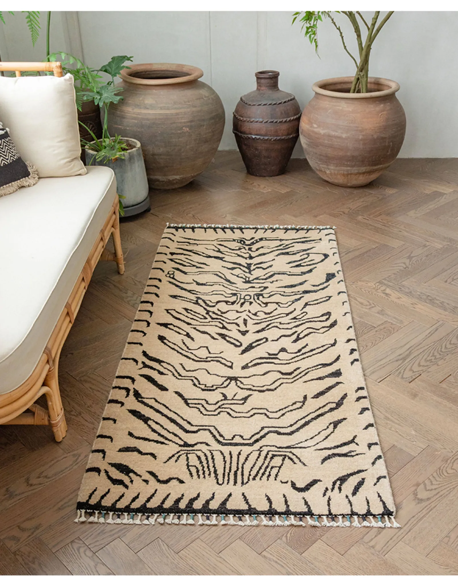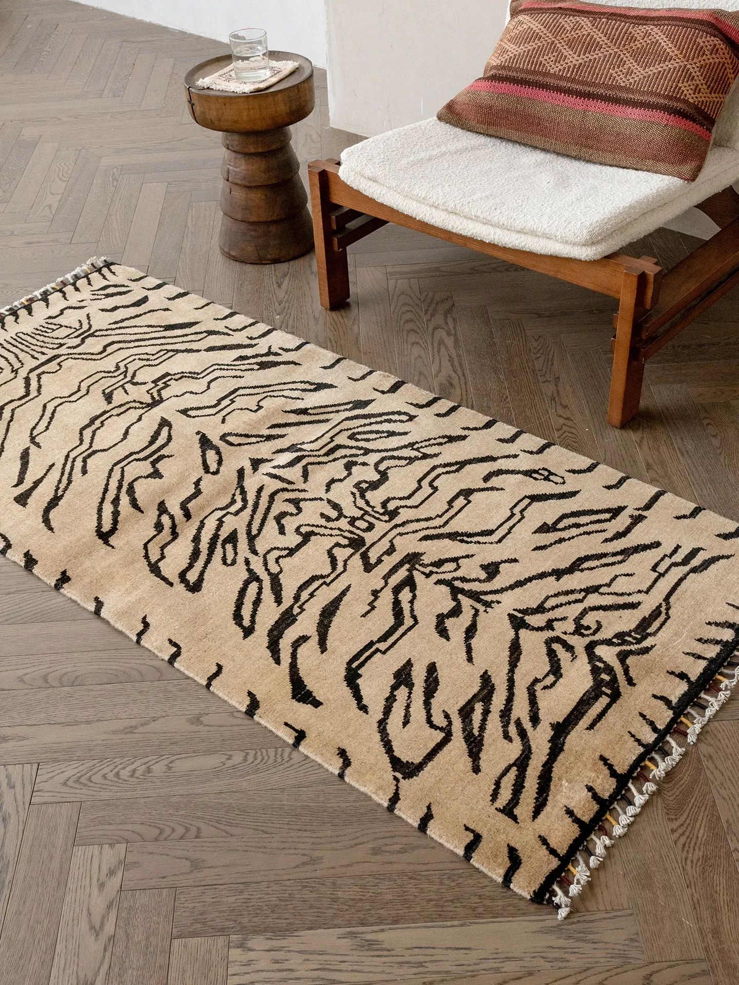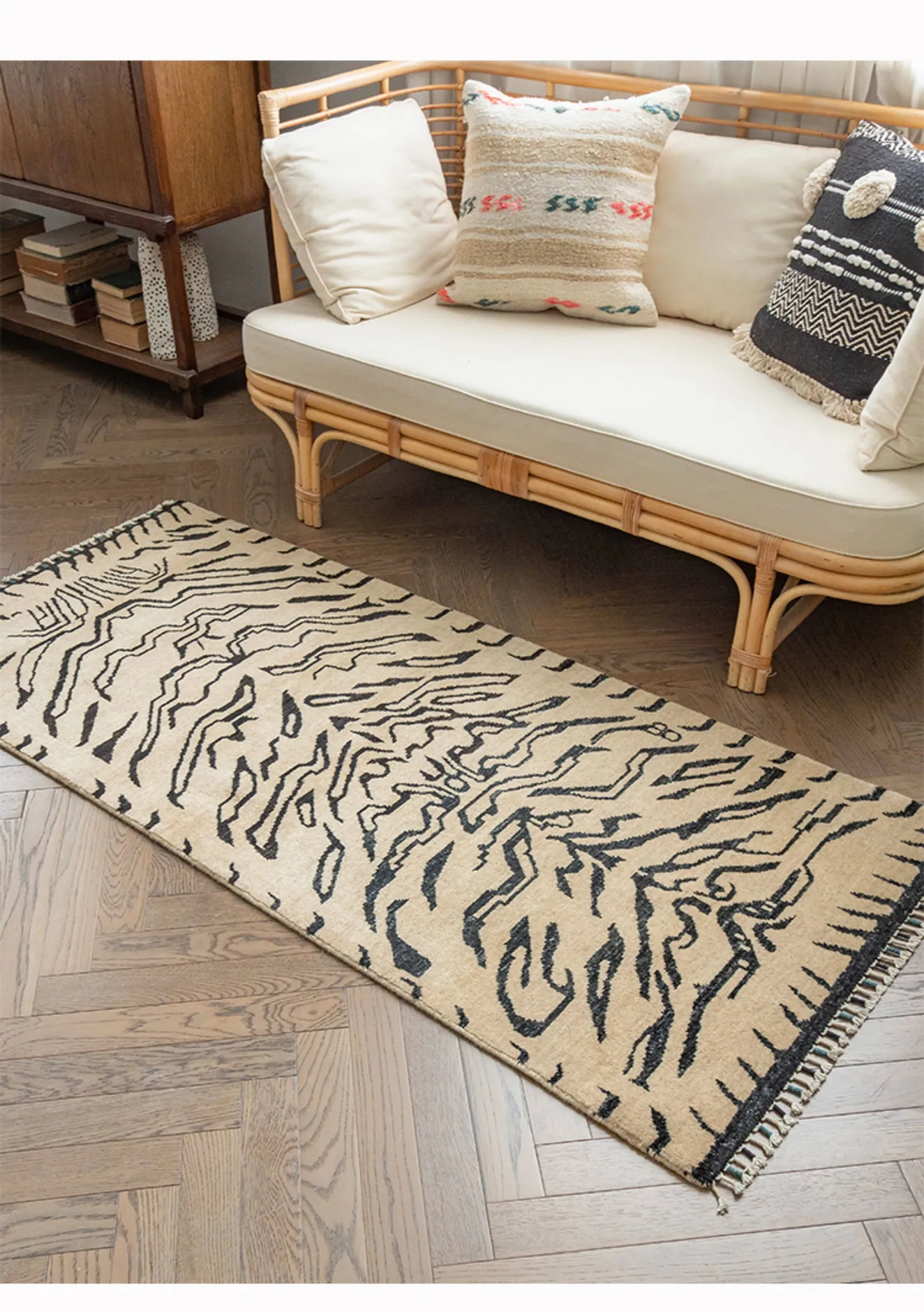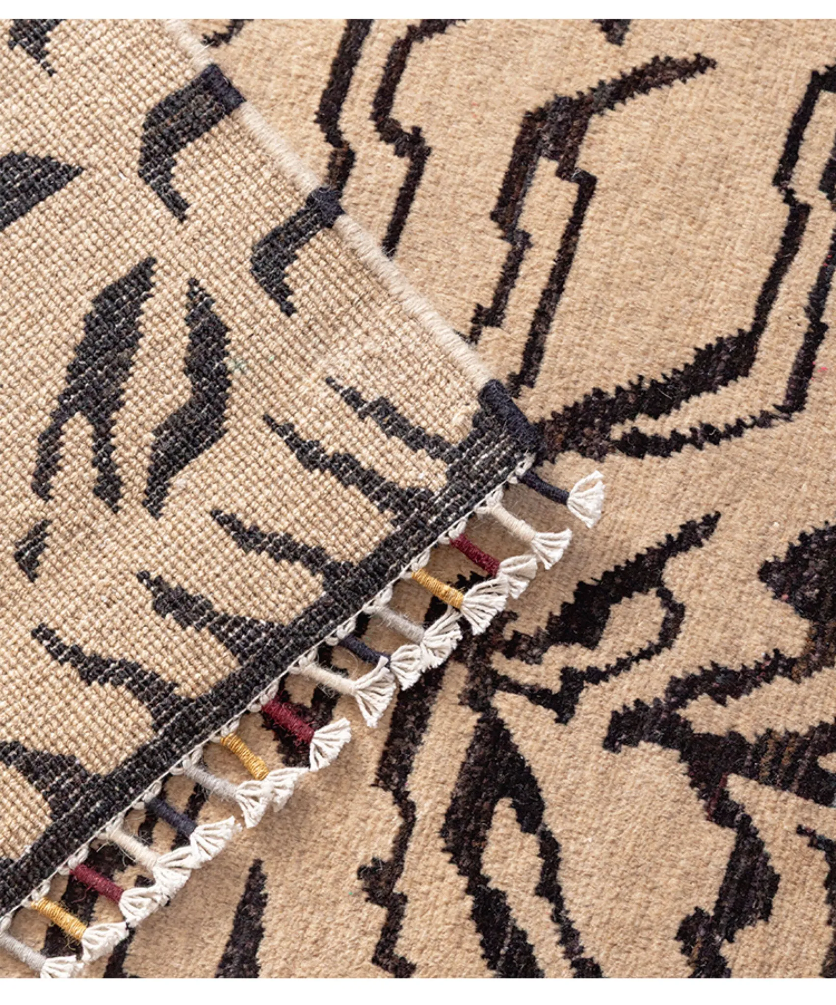 視覚と味覚を刺激する!アフガニスタン直輸入のトラ柄レトロ民族風ウールラグ - 高級感あふれるリビングや寝室にぴったりのアイテム!