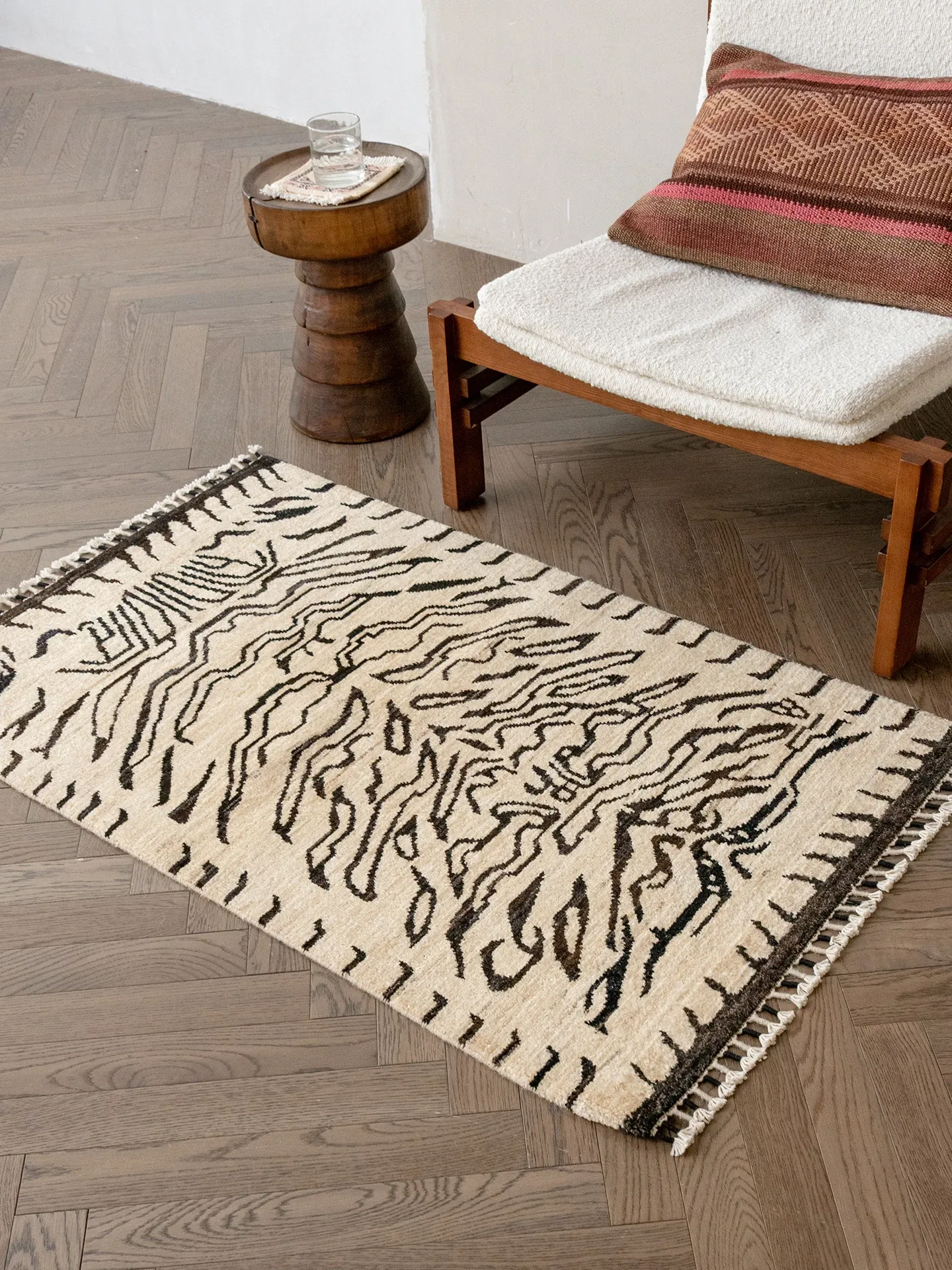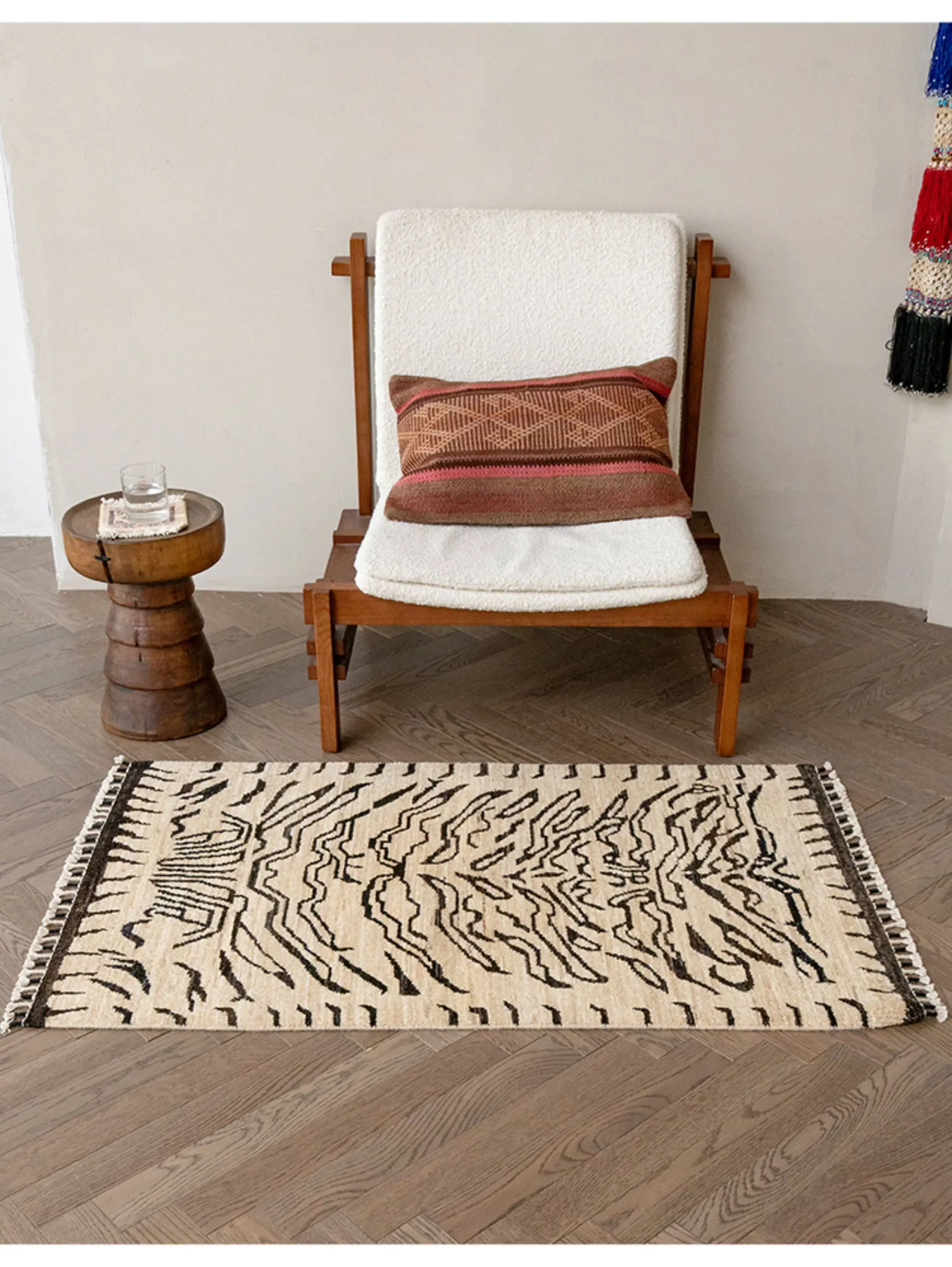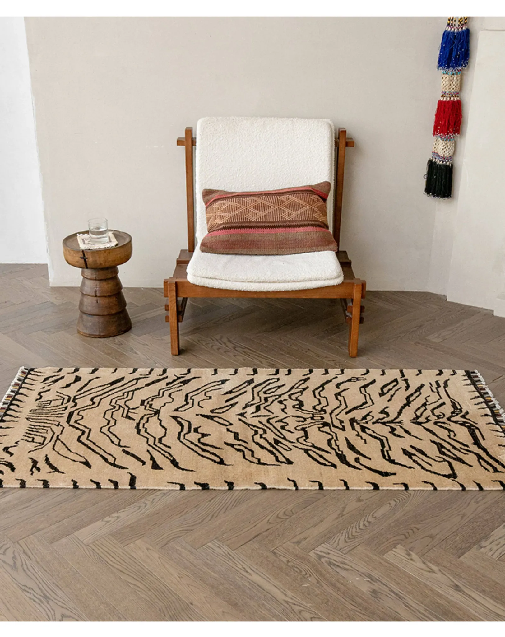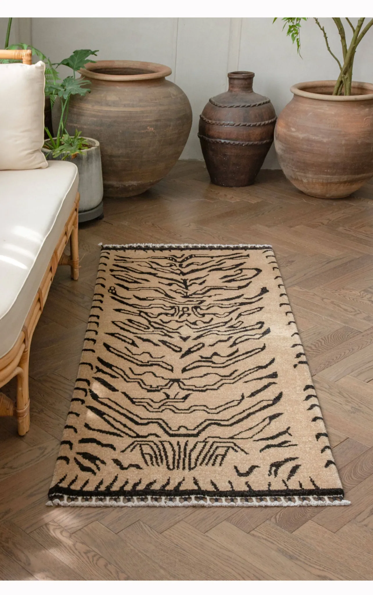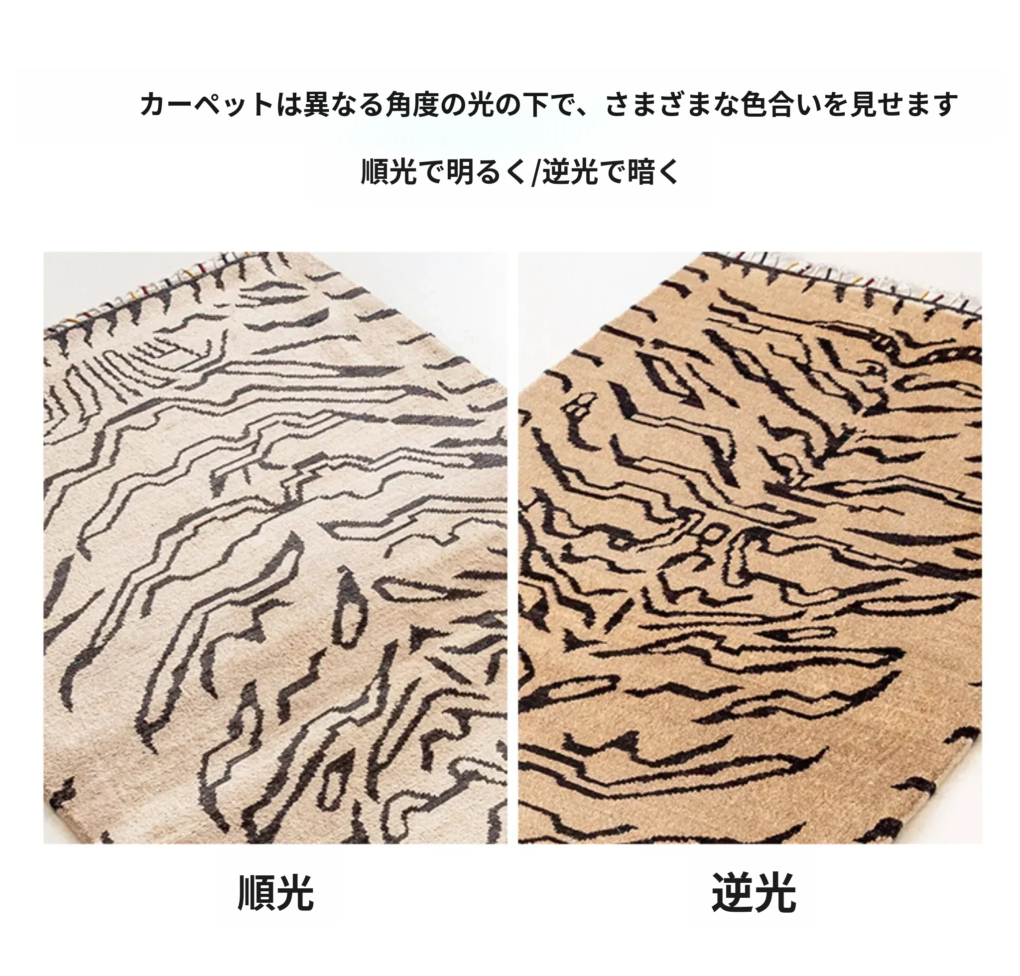 視覚と味覚を刺激する!アフガニスタン直輸入のトラ柄レトロ民族風ウールラグ - 高級感あふれるリビングや寝室にぴったりのアイテム!