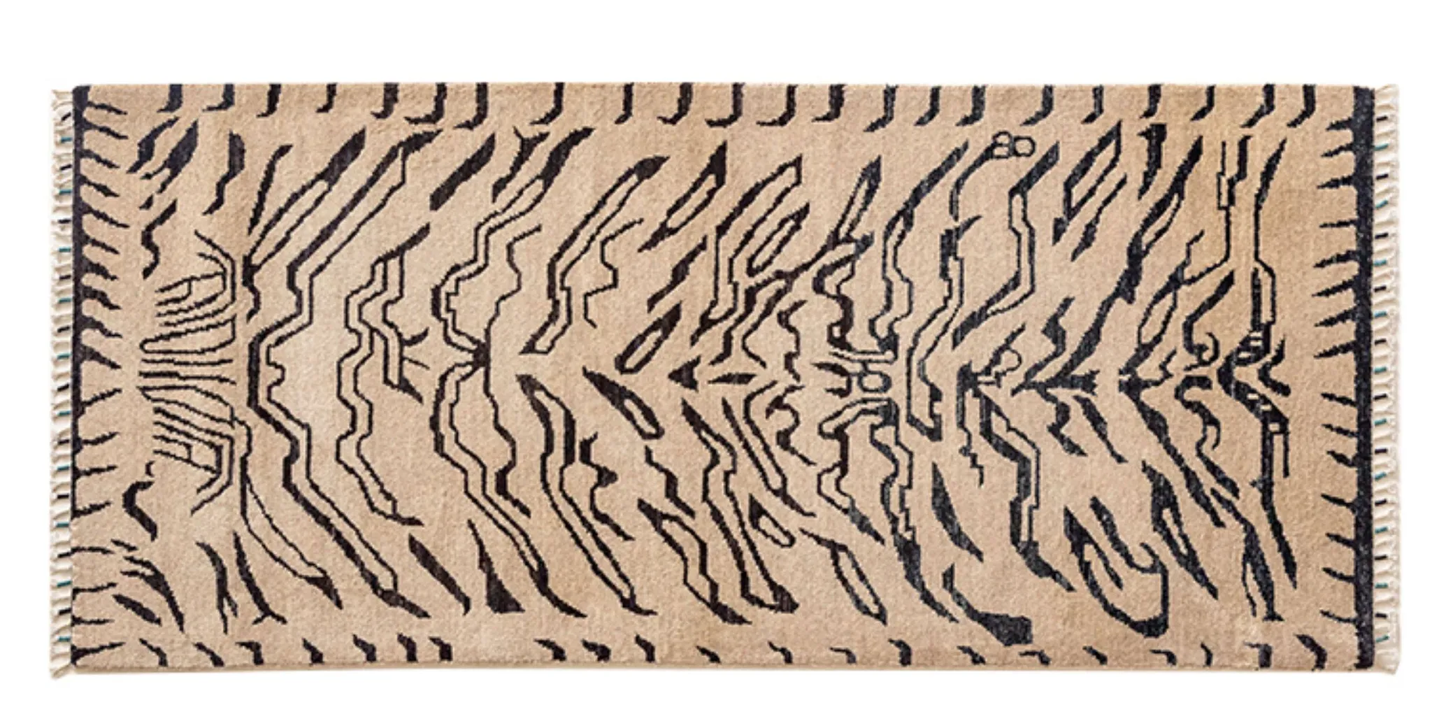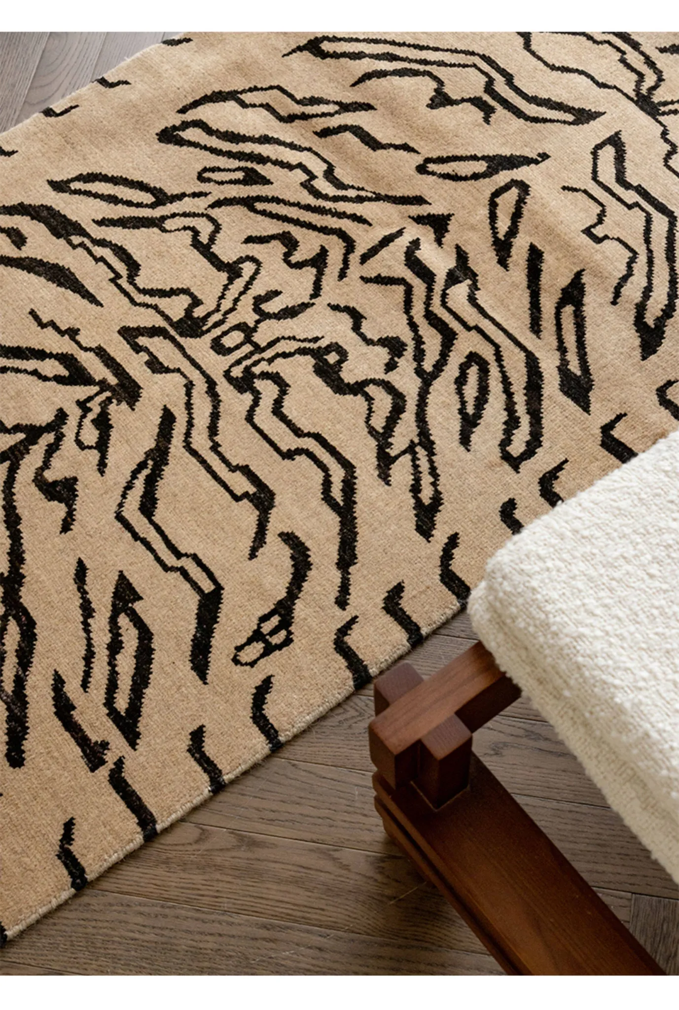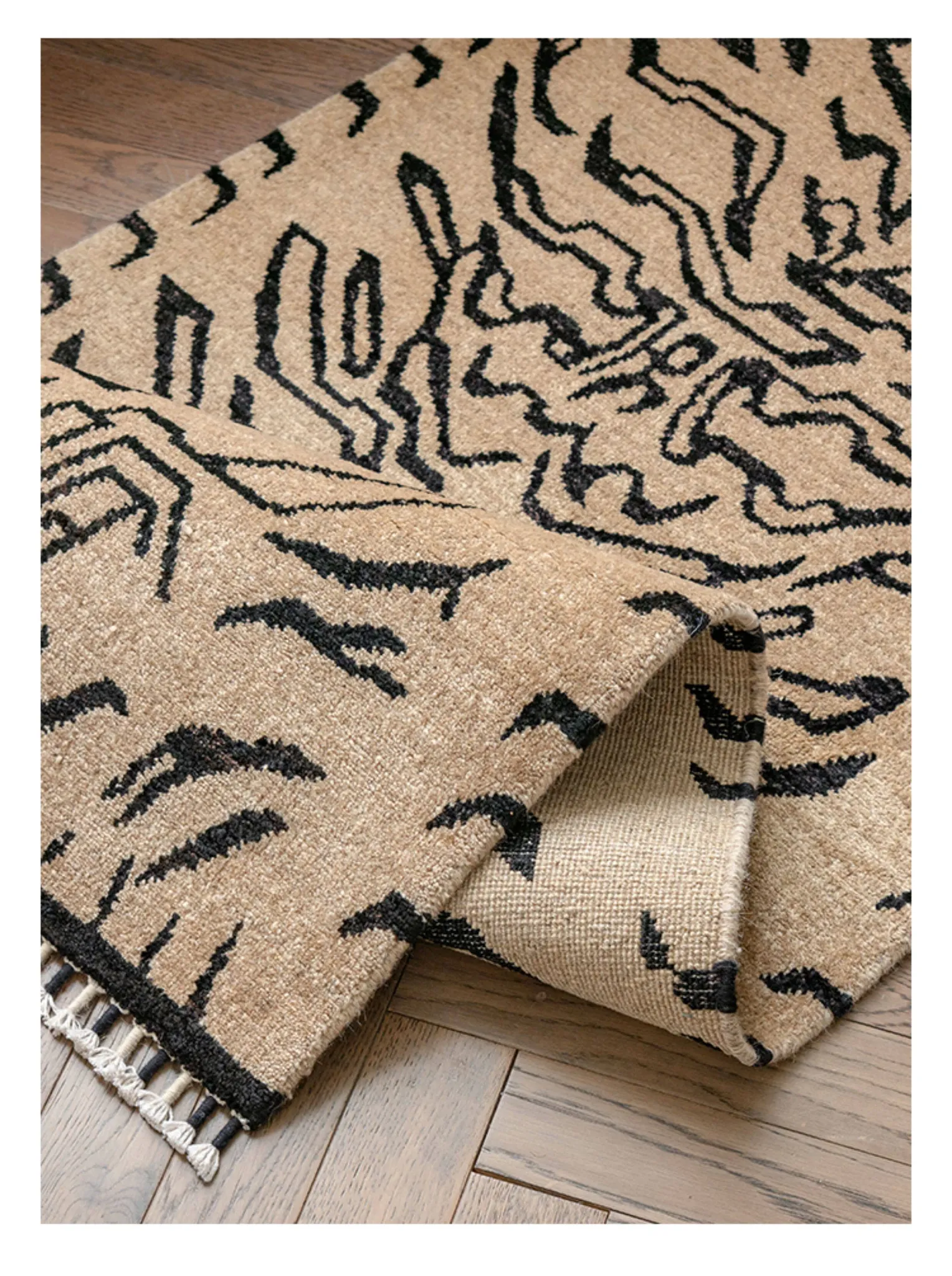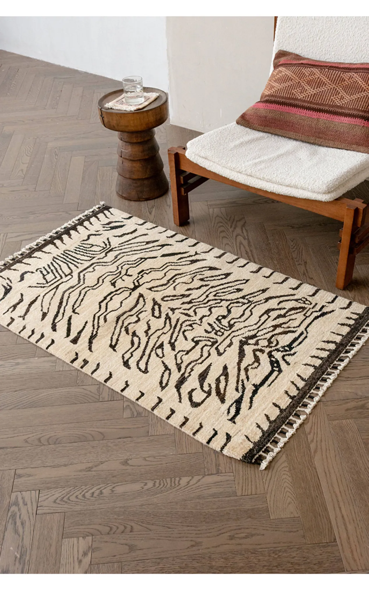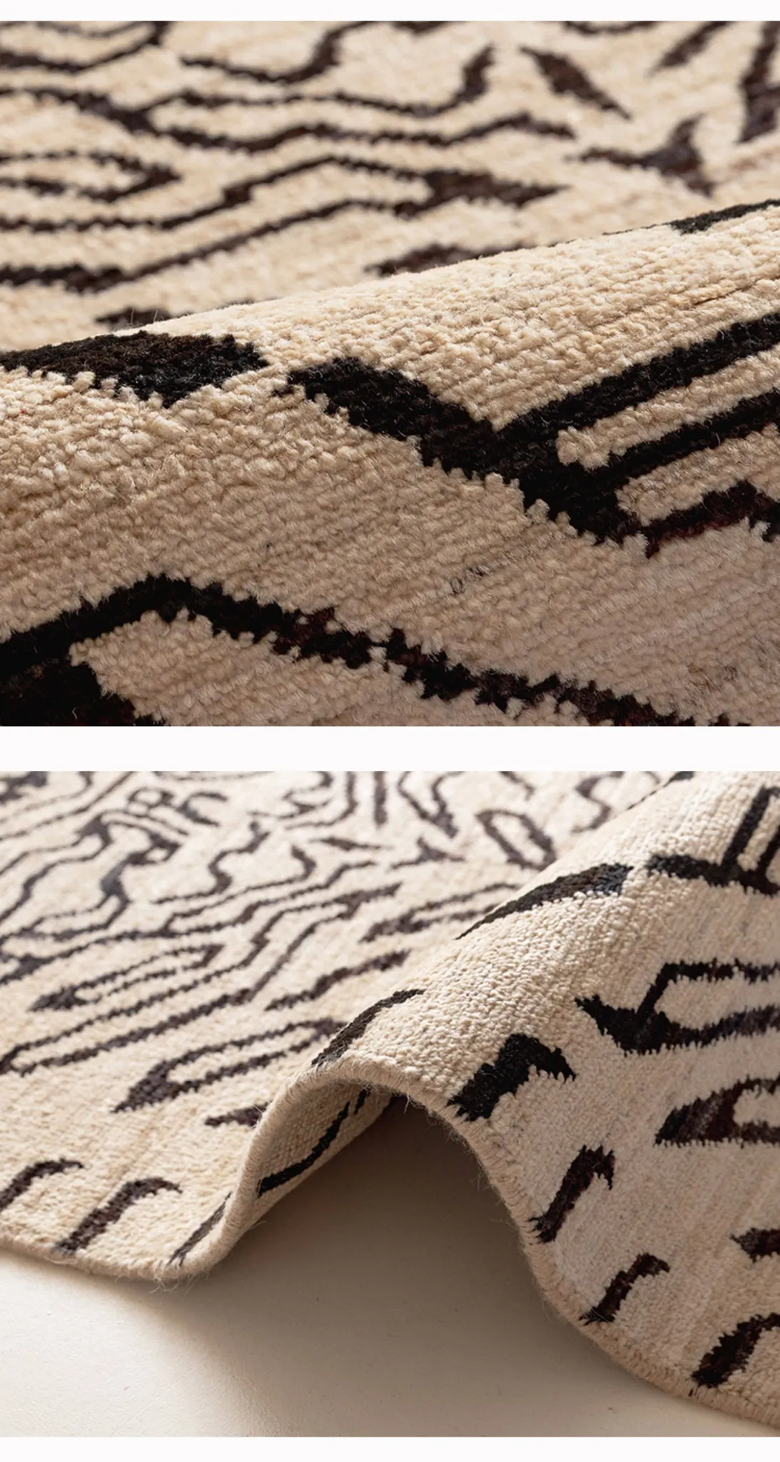 視覚と味覚を刺激する!アフガニスタン直輸入のトラ柄レトロ民族風ウールラグ - 高級感あふれるリビングや寝室にぴったりのアイテム!