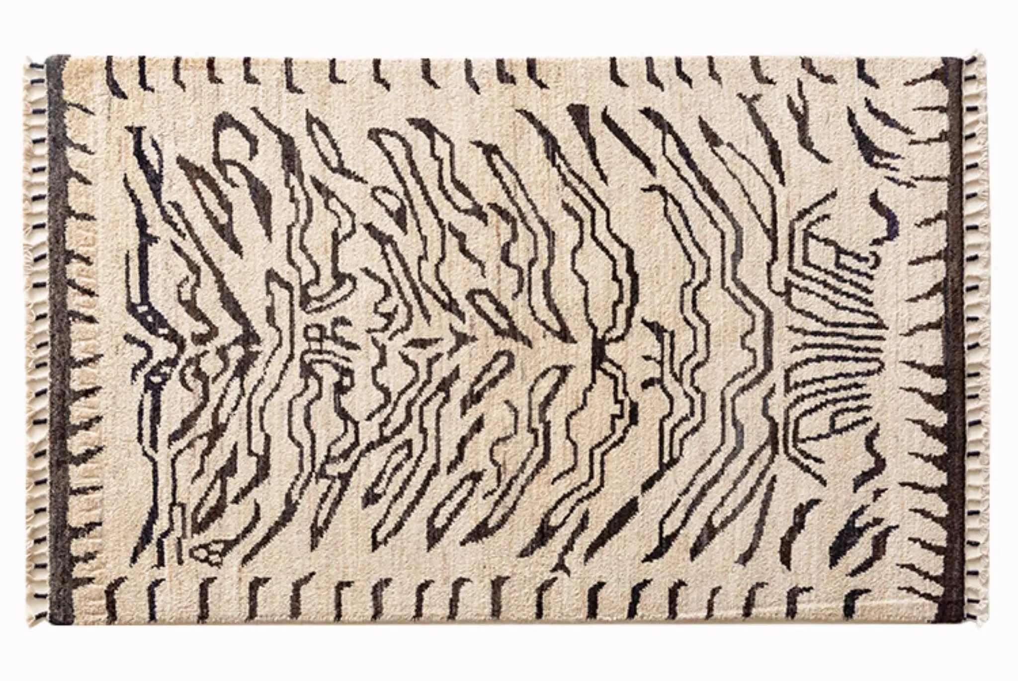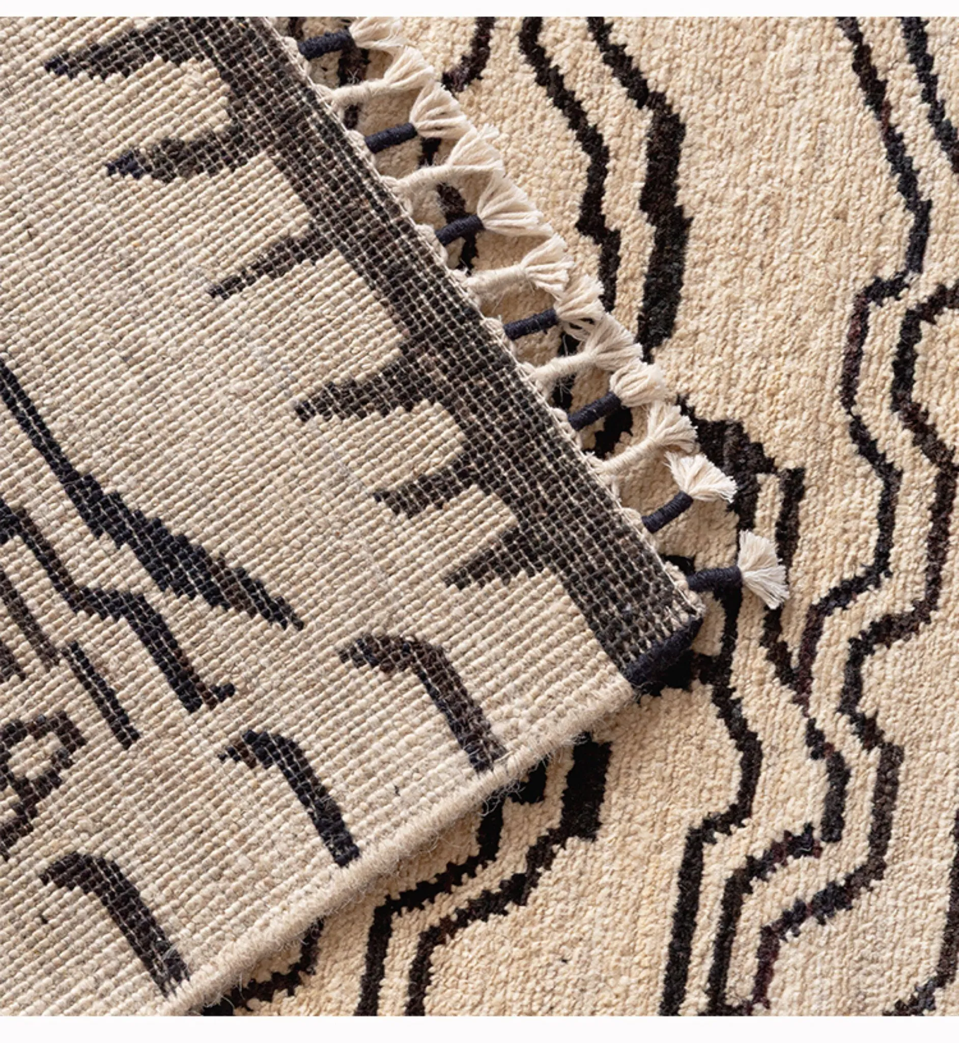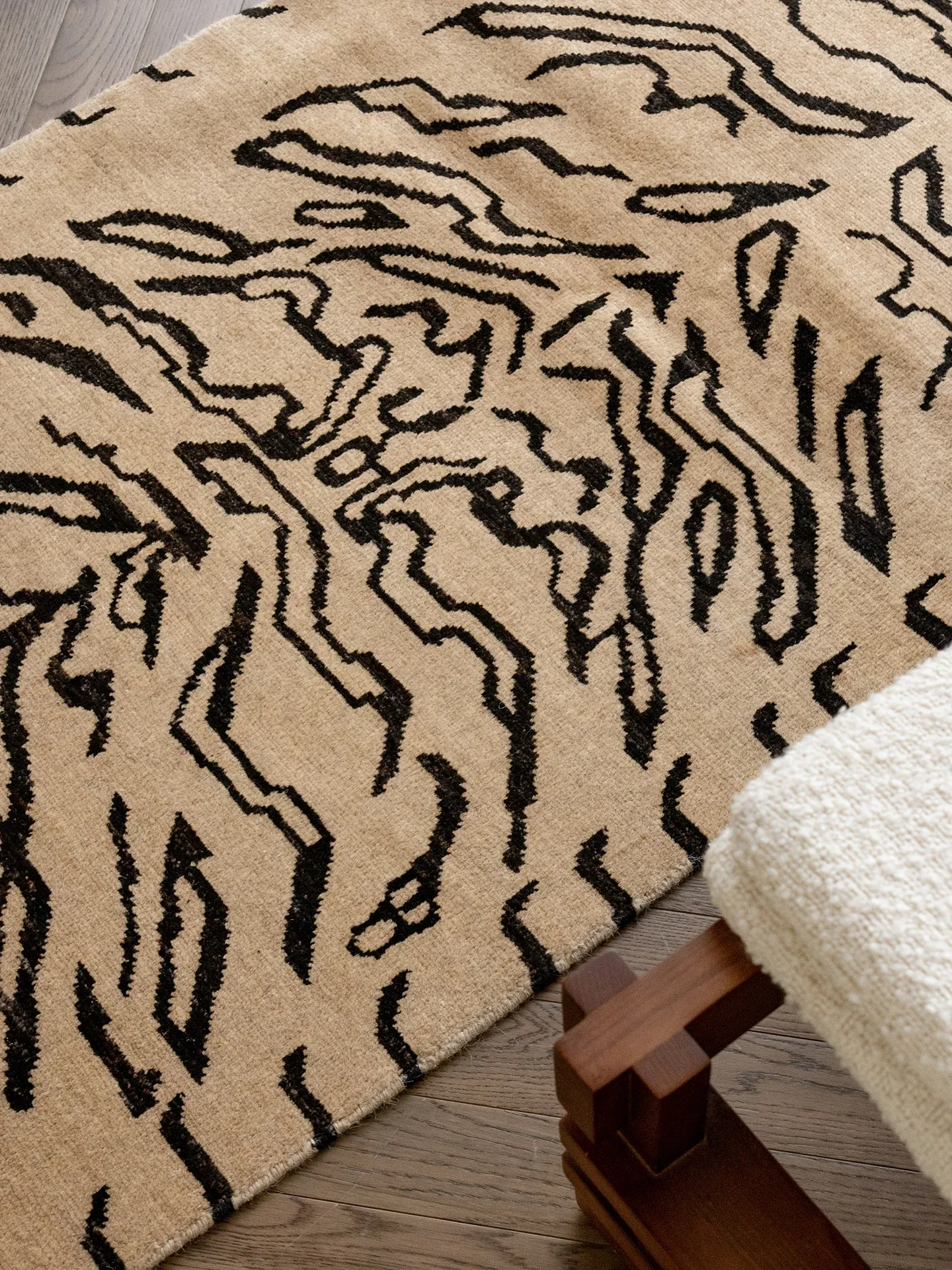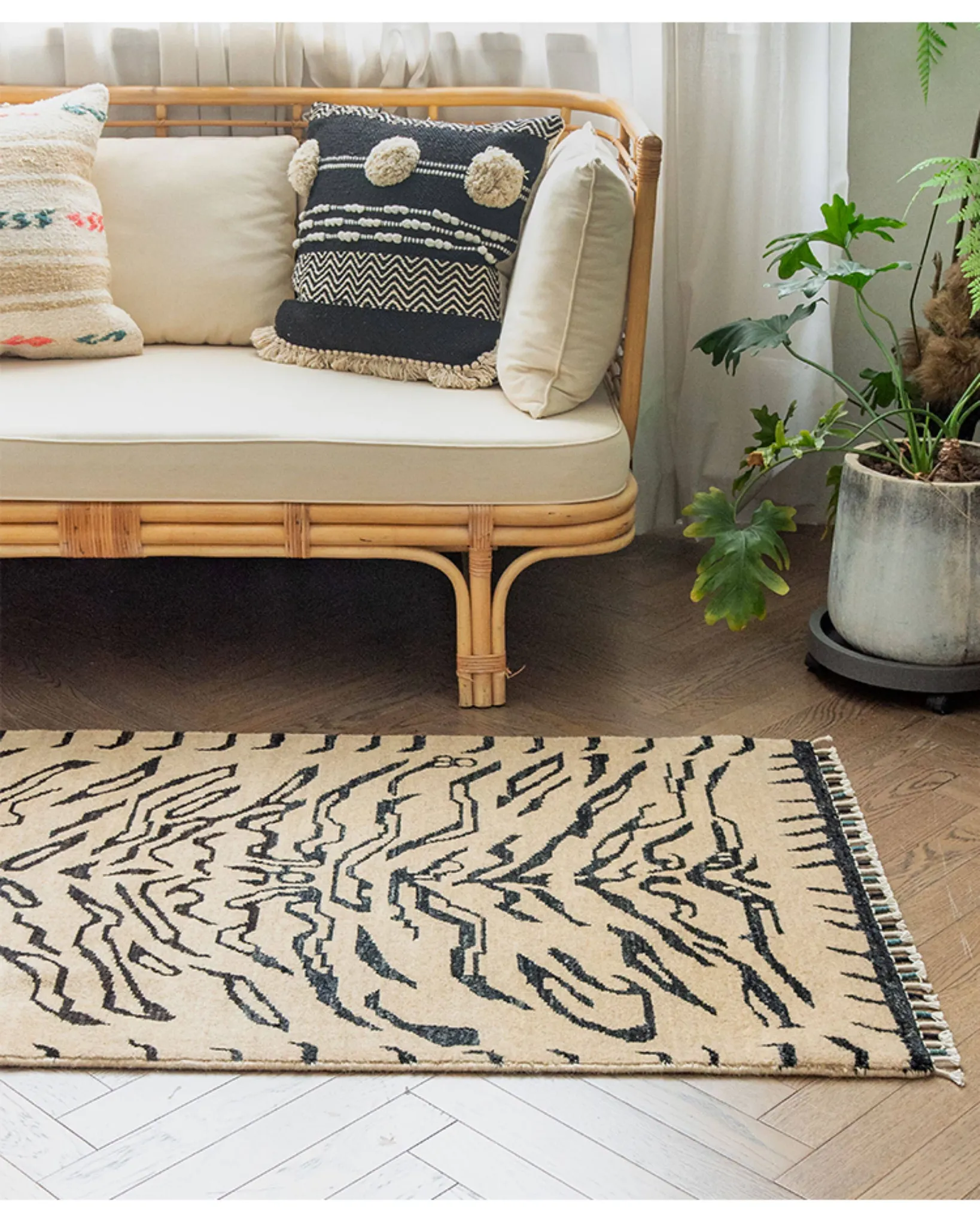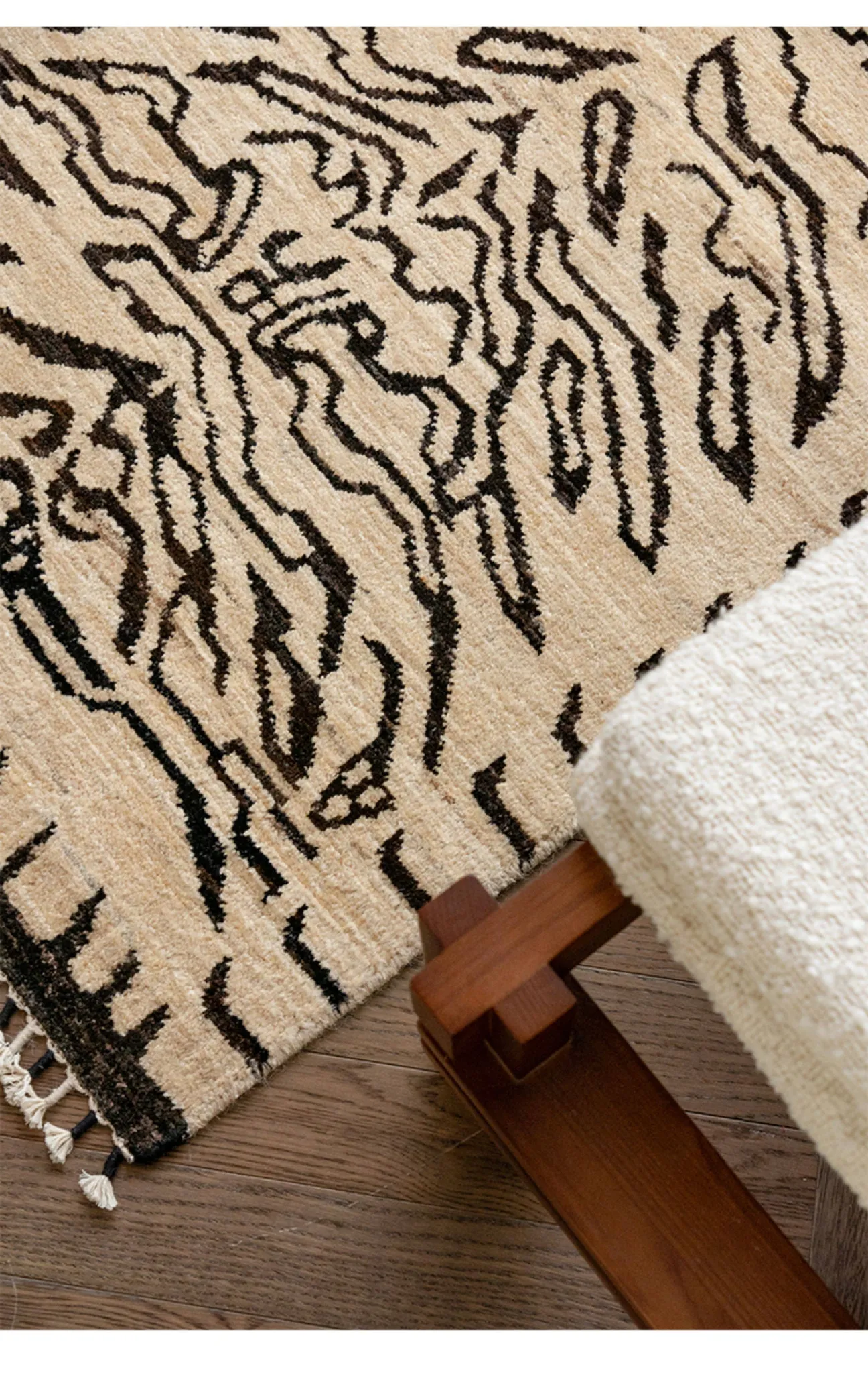 視覚と味覚を刺激する!アフガニスタン直輸入のトラ柄レトロ民族風ウールラグ - 高級感あふれるリビングや寝室にぴったりのアイテム!