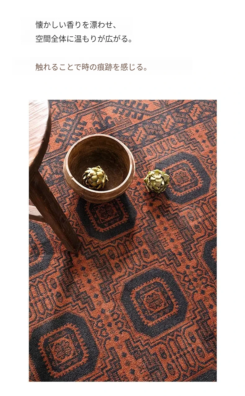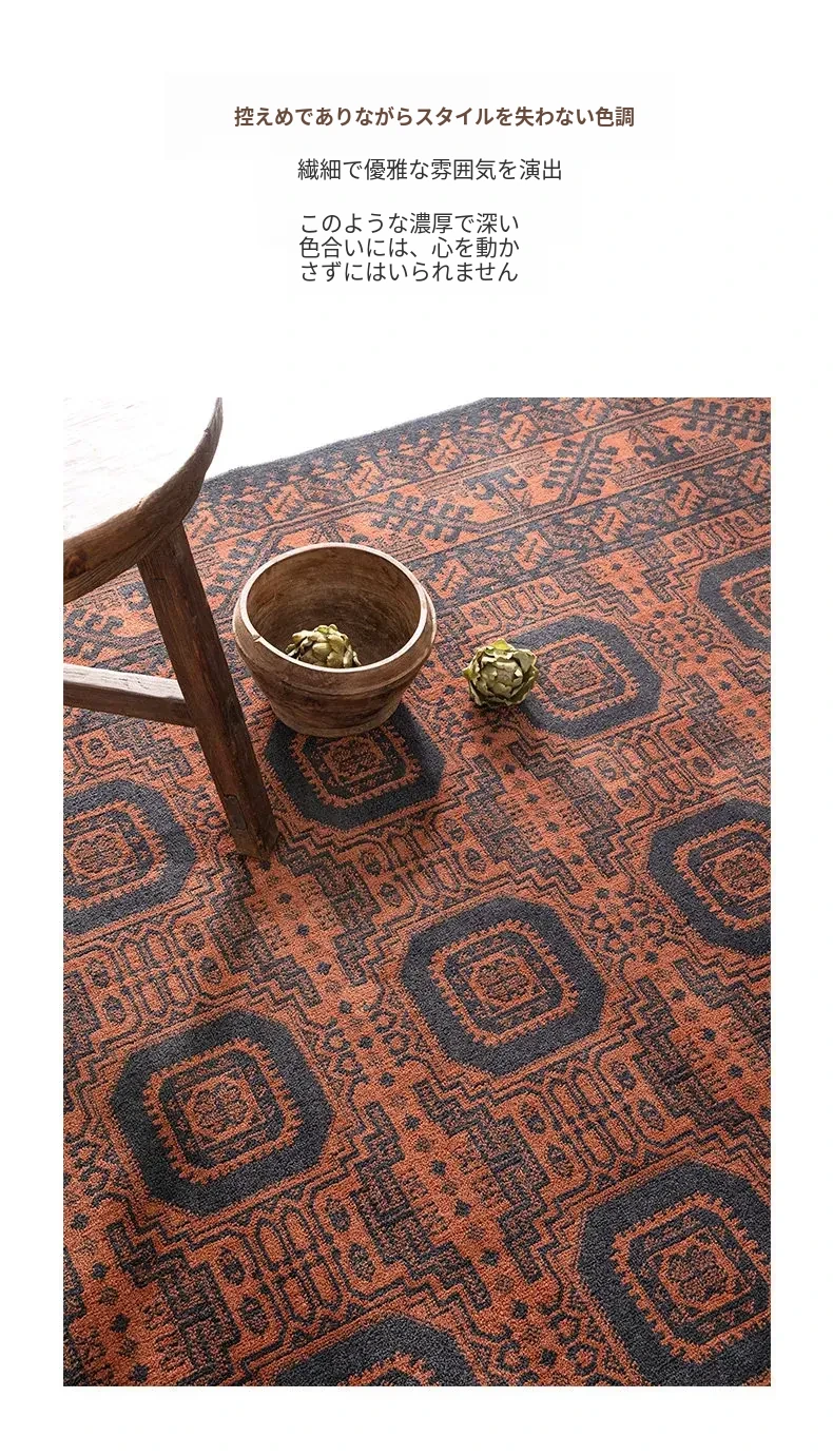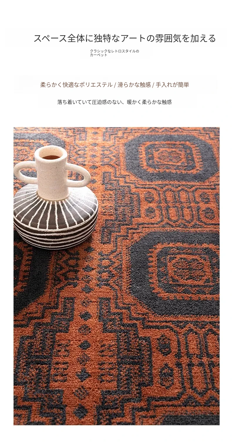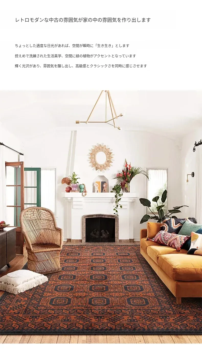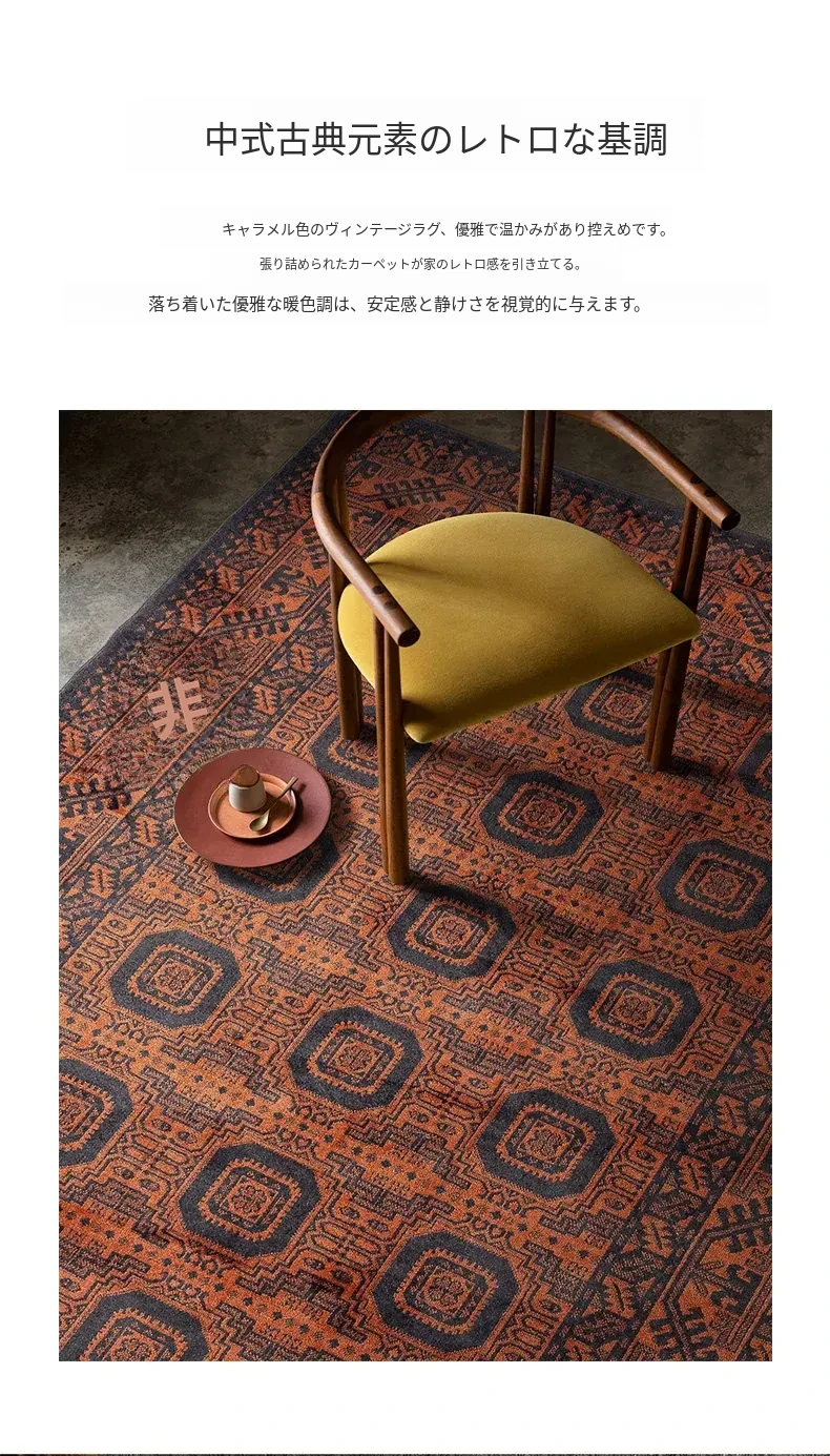 視覚を楽しむ!中古フレンチ・南洋スタイルのリビングカーペット、深いキャラメル色のレトロペルシャベッドサイドラグ。おしゃれで温かみのある空間を演出し、あなたの部屋に特別な魅力をプラス!