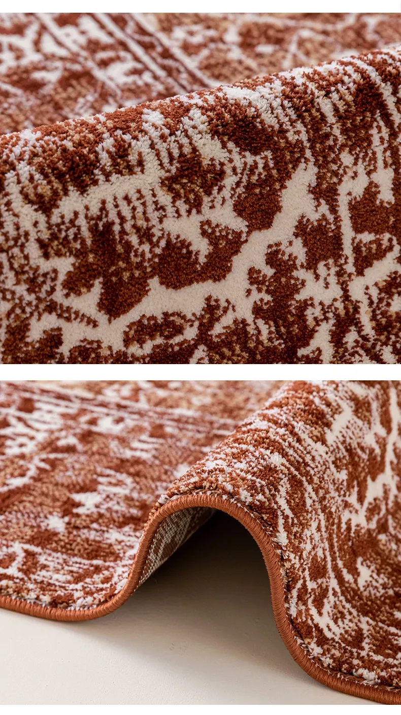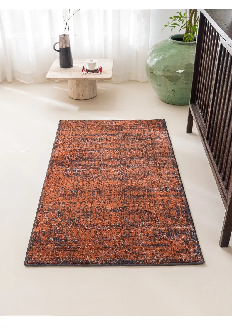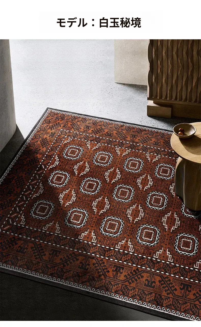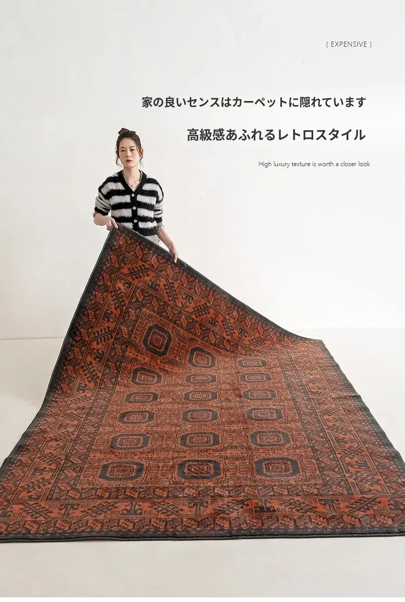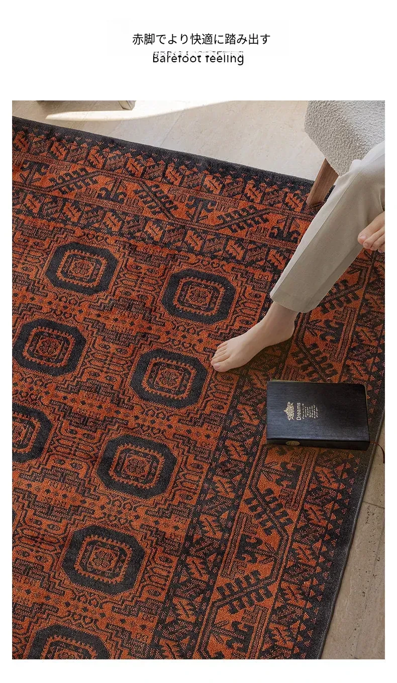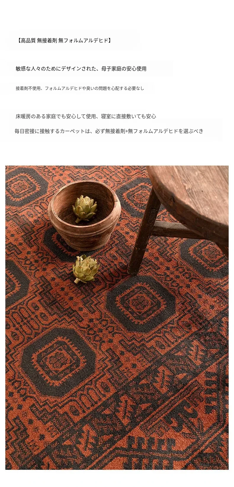 視覚を楽しむ!中古フレンチ・南洋スタイルのリビングカーペット、深いキャラメル色のレトロペルシャベッドサイドラグ。おしゃれで温かみのある空間を演出し、あなたの部屋に特別な魅力をプラス!