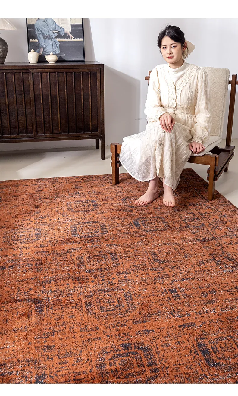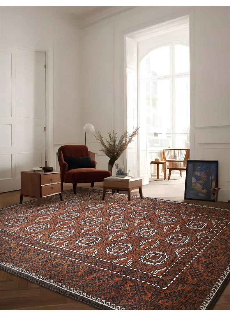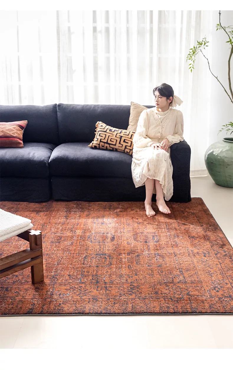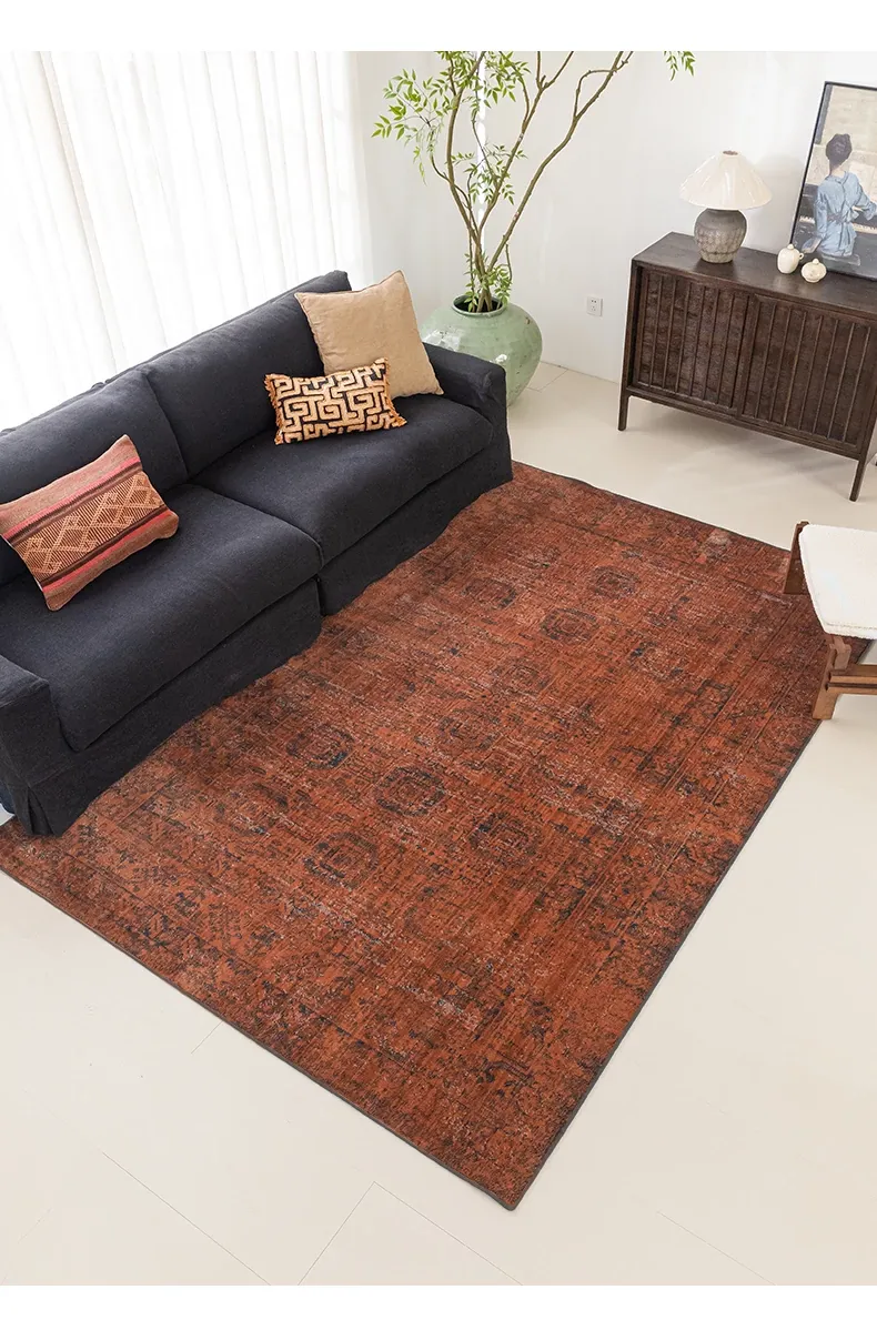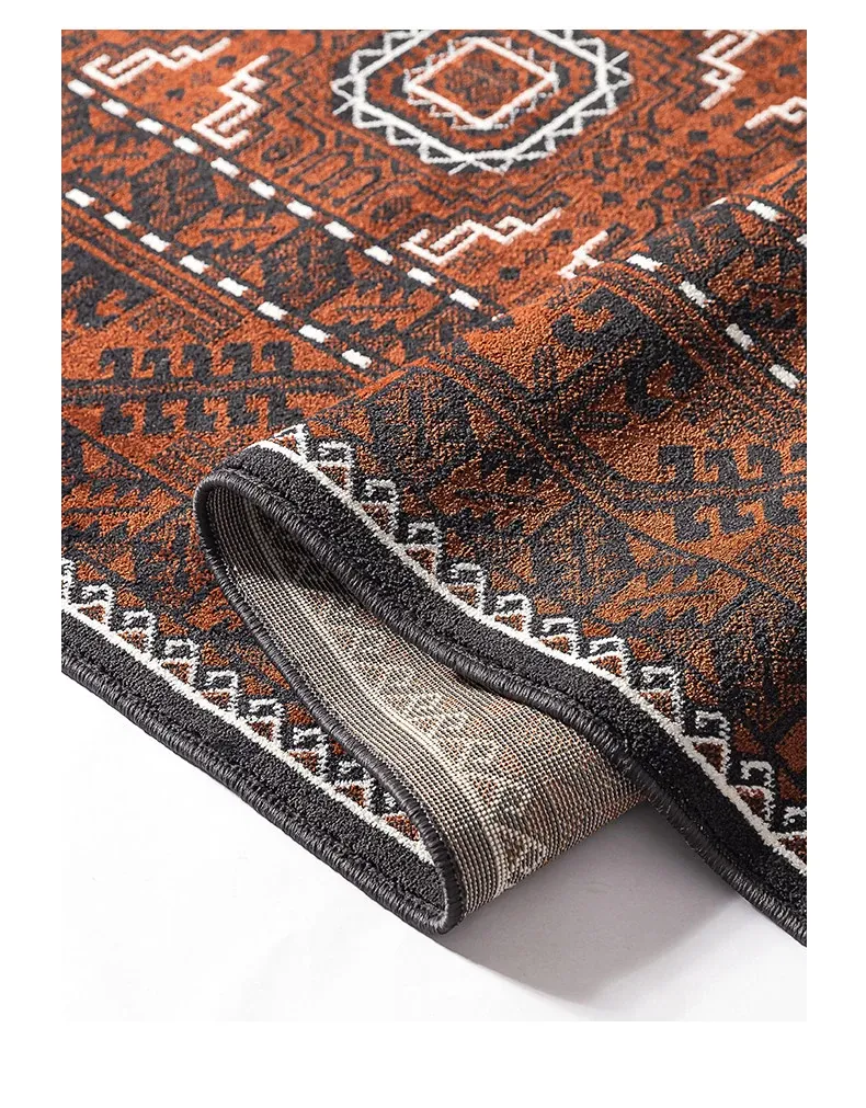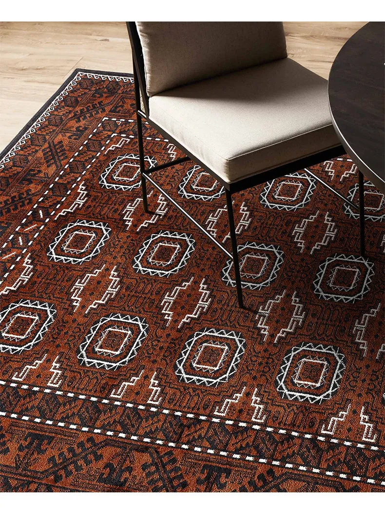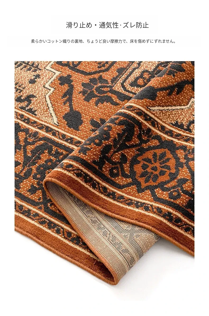 視覚を楽しむ!中古フレンチ・南洋スタイルのリビングカーペット、深いキャラメル色のレトロペルシャベッドサイドラグ。おしゃれで温かみのある空間を演出し、あなたの部屋に特別な魅力をプラス!