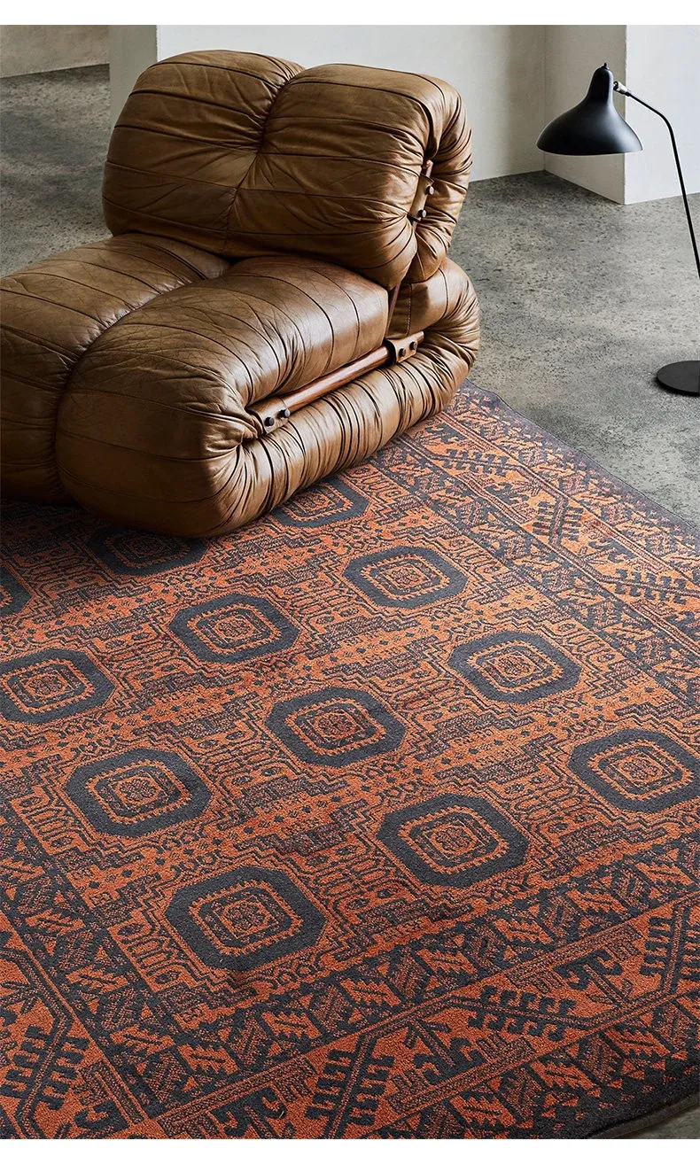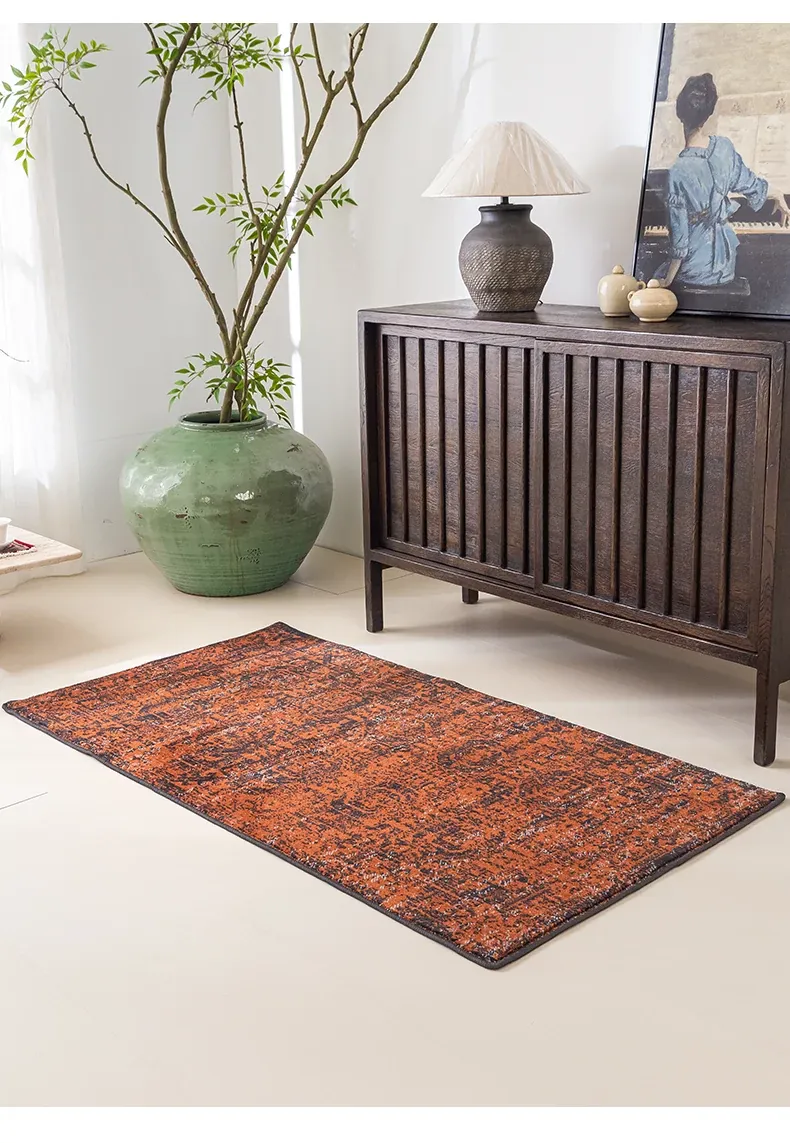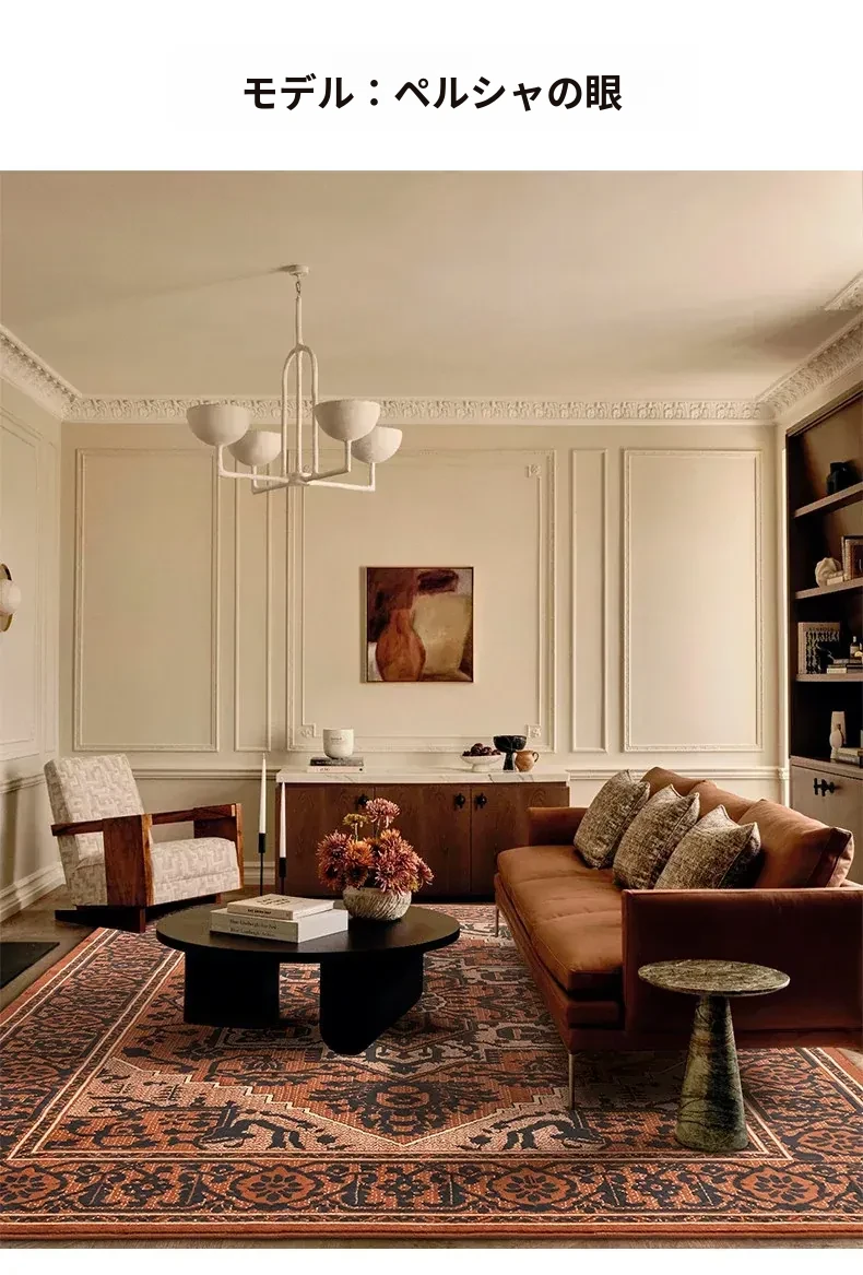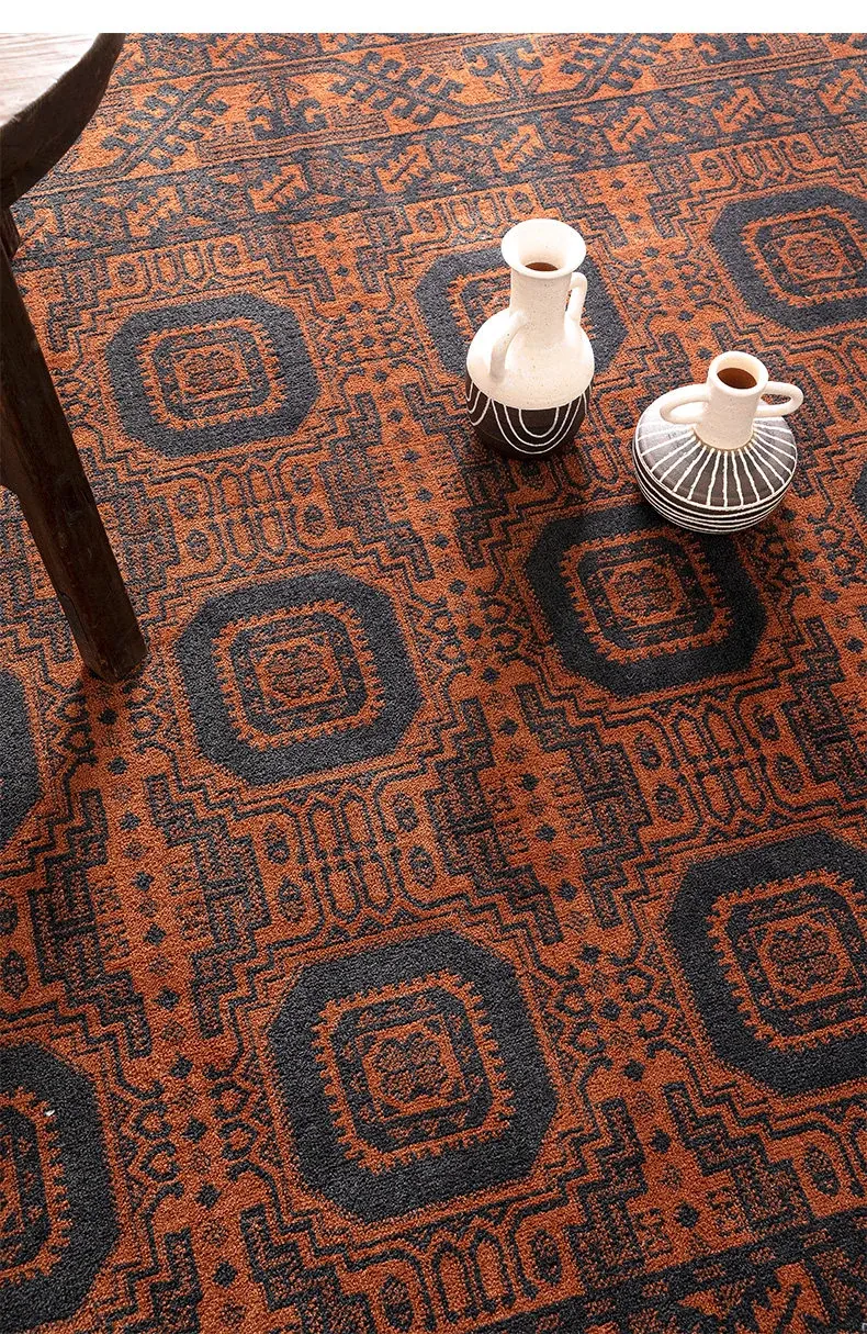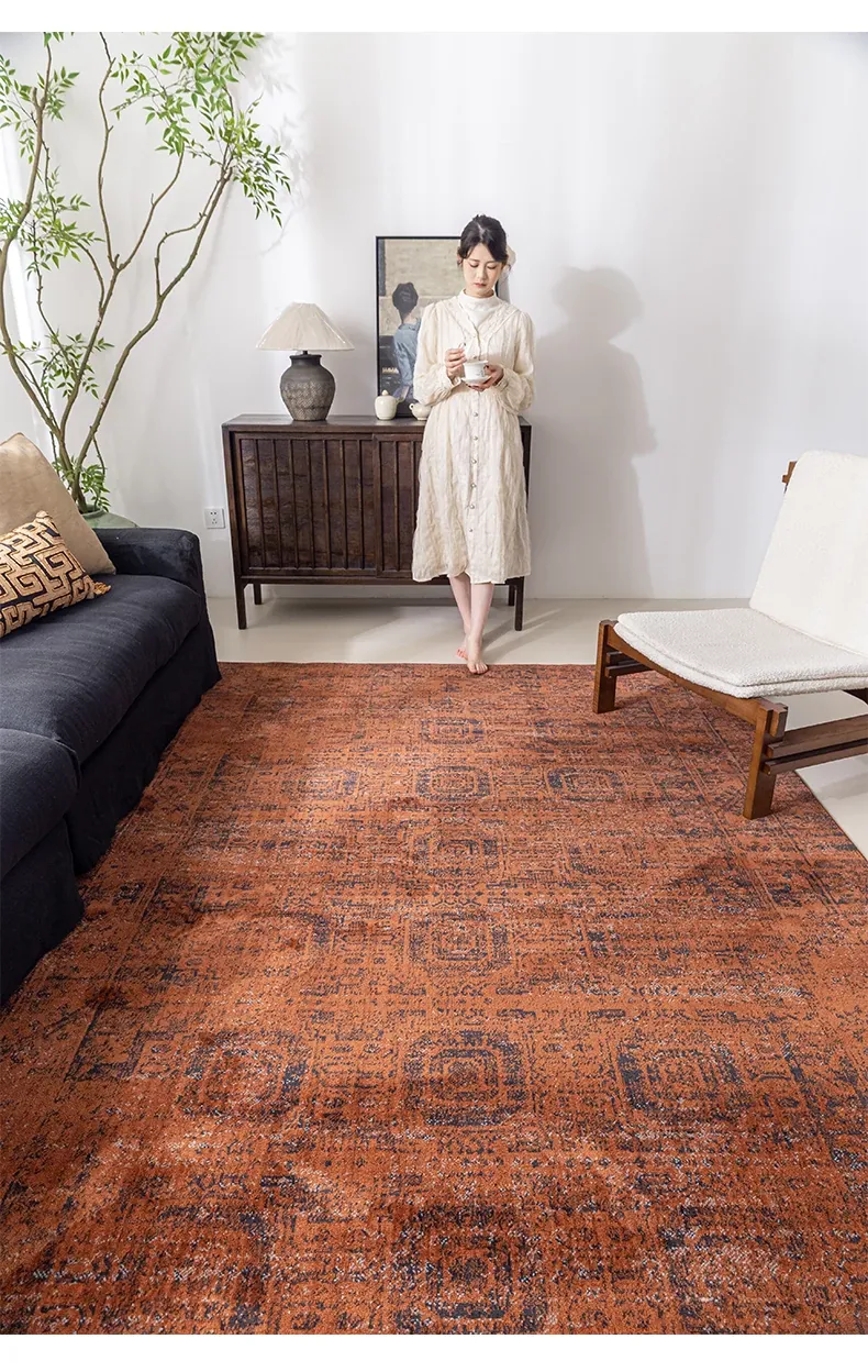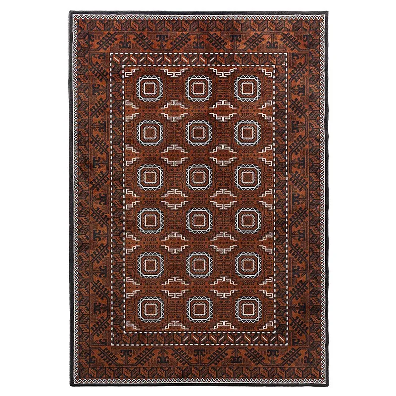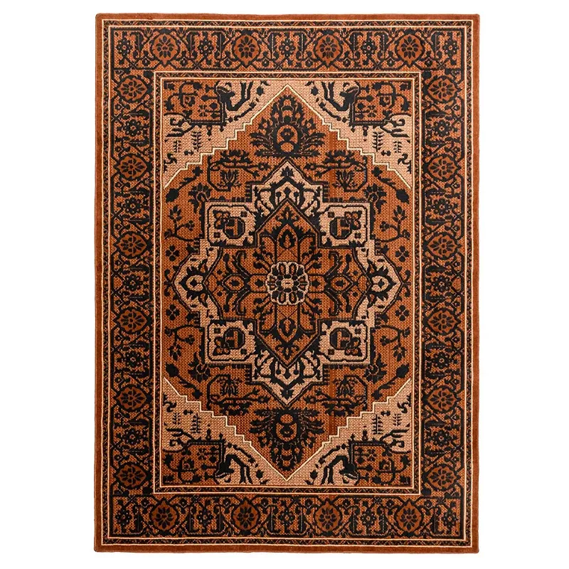 視覚を楽しむ!中古フレンチ・南洋スタイルのリビングカーペット、深いキャラメル色のレトロペルシャベッドサイドラグ。おしゃれで温かみのある空間を演出し、あなたの部屋に特別な魅力をプラス!