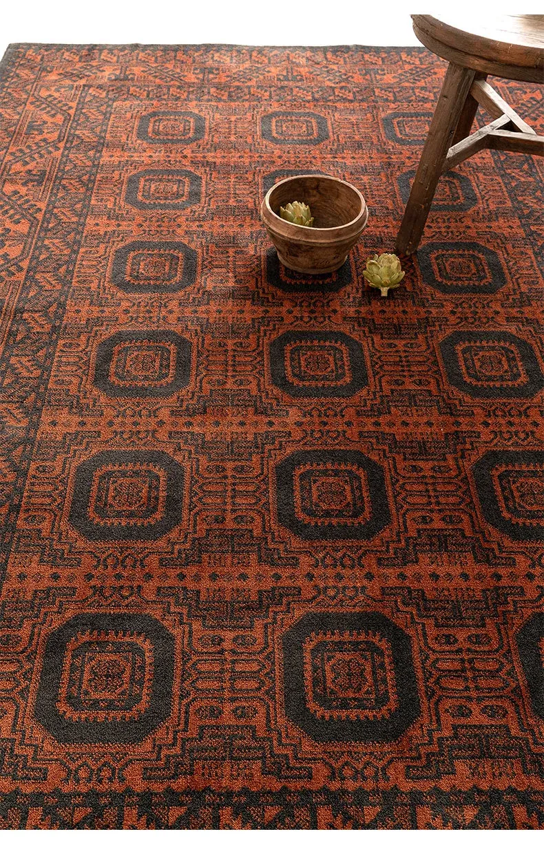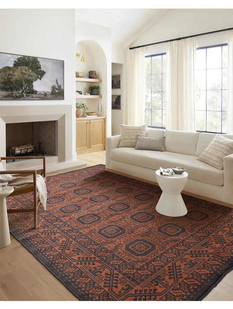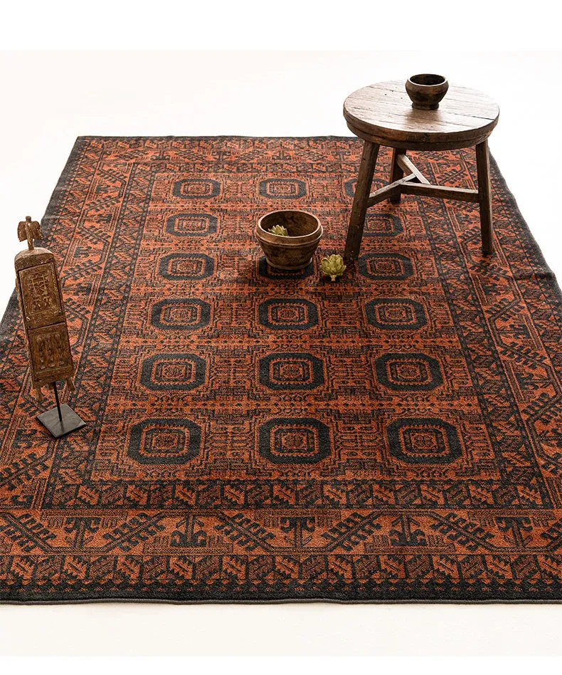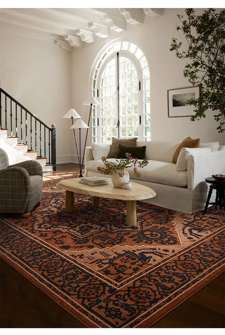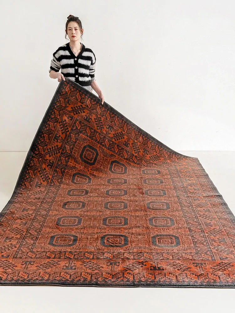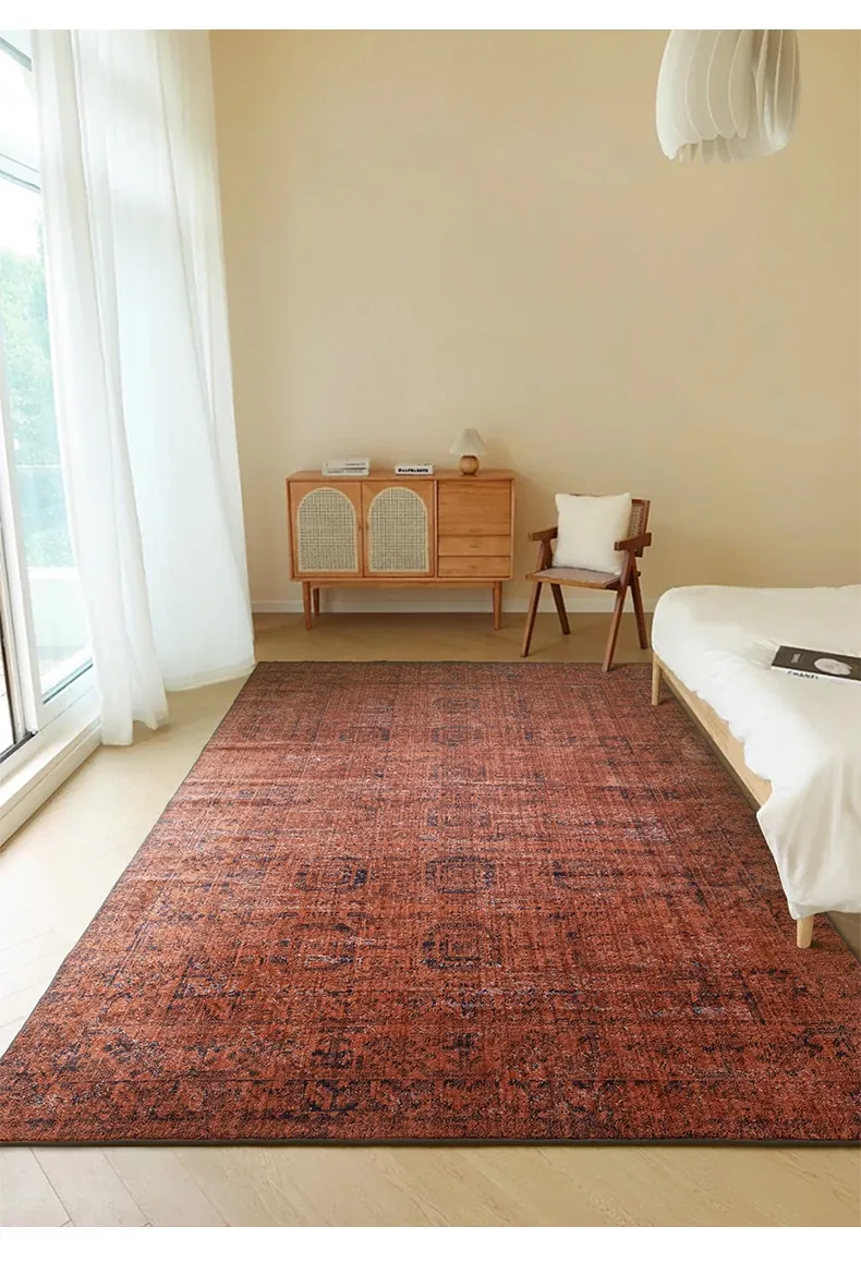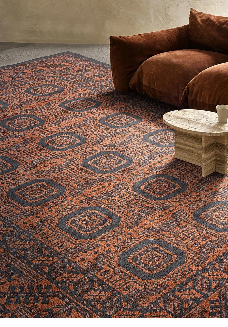 視覚を楽しむ!中古フレンチ・南洋スタイルのリビングカーペット、深いキャラメル色のレトロペルシャベッドサイドラグ。おしゃれで温かみのある空間を演出し、あなたの部屋に特別な魅力をプラス!