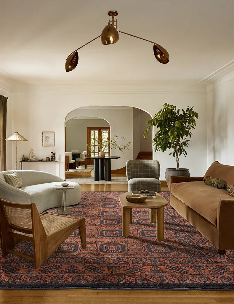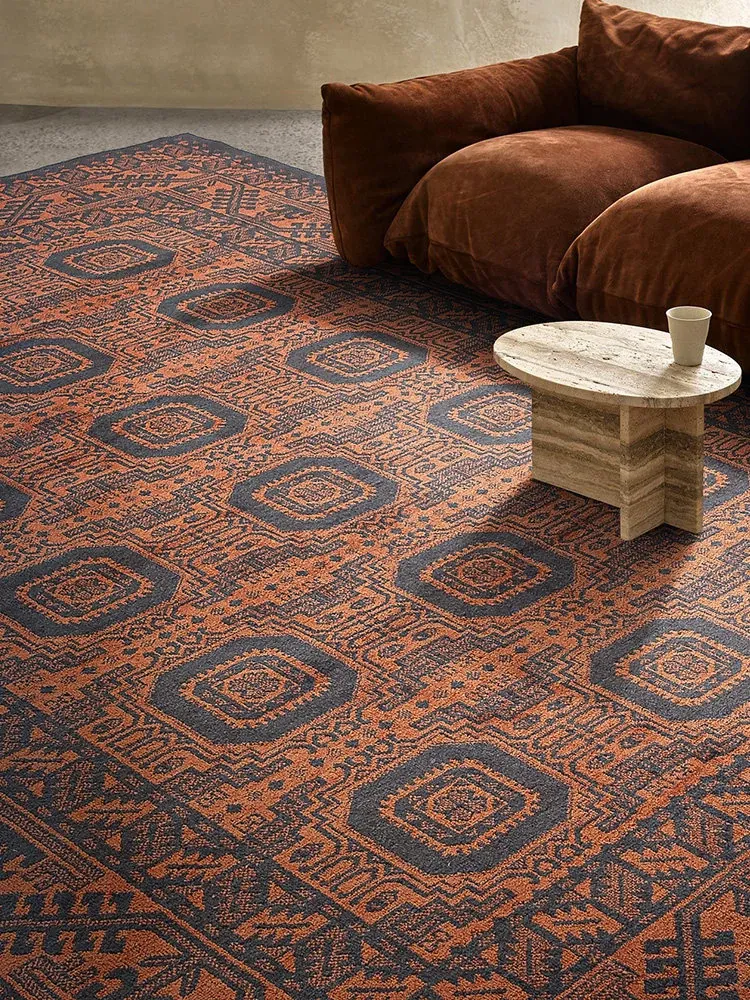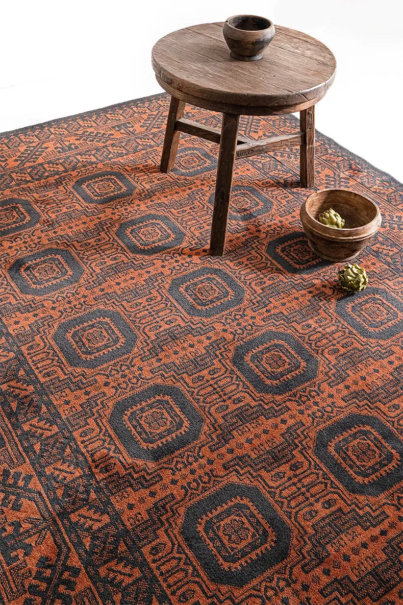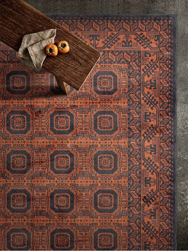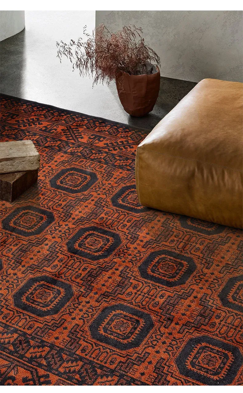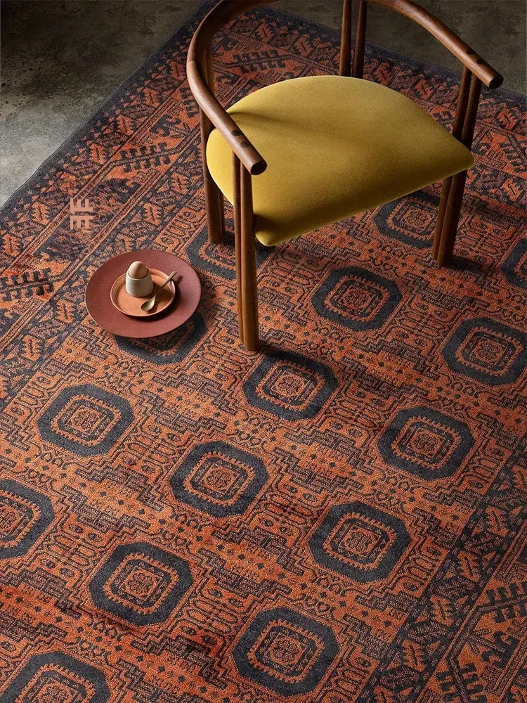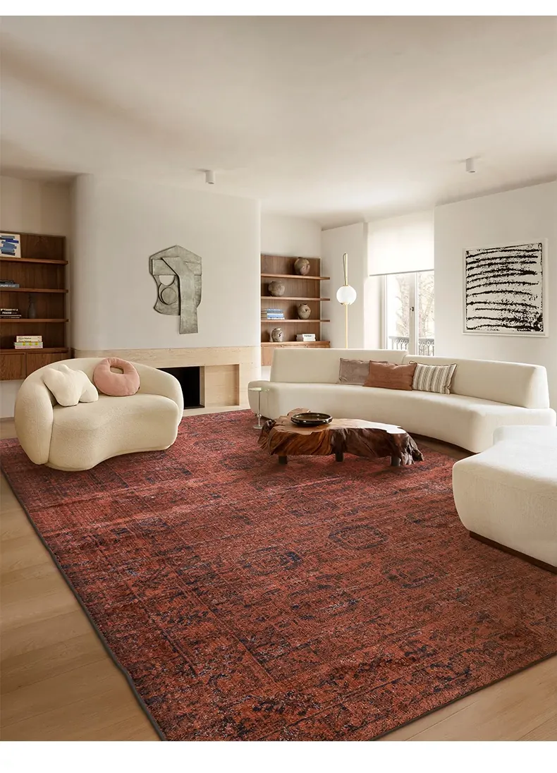 視覚を楽しむ!中古フレンチ・南洋スタイルのリビングカーペット、深いキャラメル色のレトロペルシャベッドサイドラグ。おしゃれで温かみのある空間を演出し、あなたの部屋に特別な魅力をプラス!
