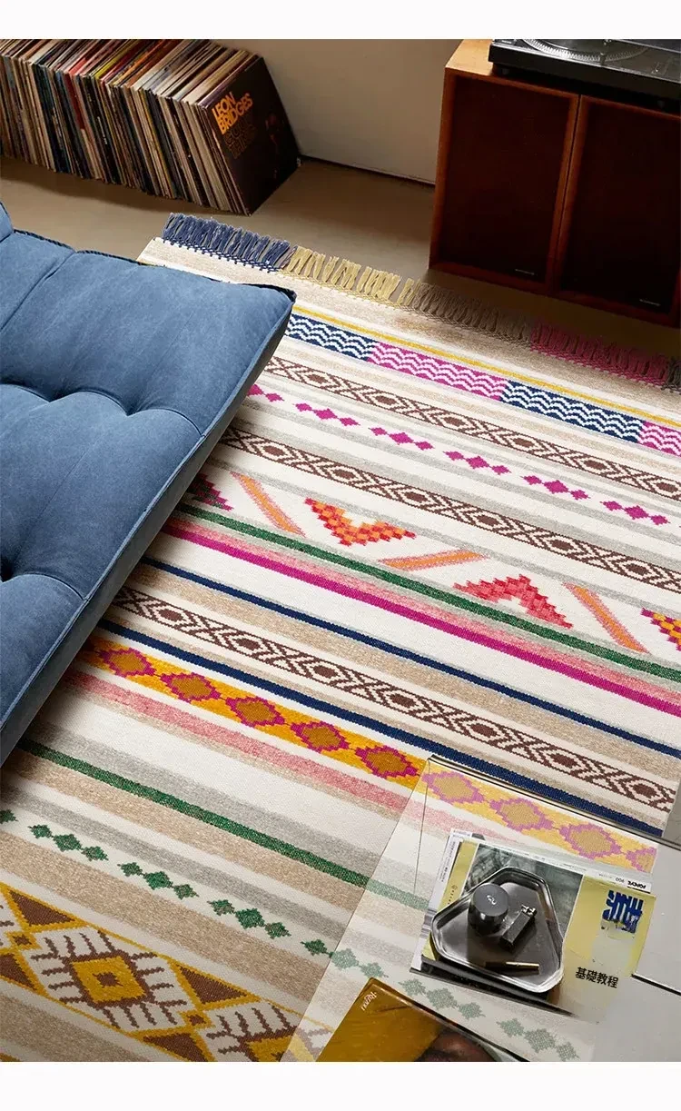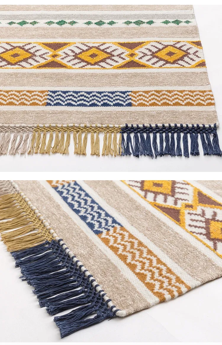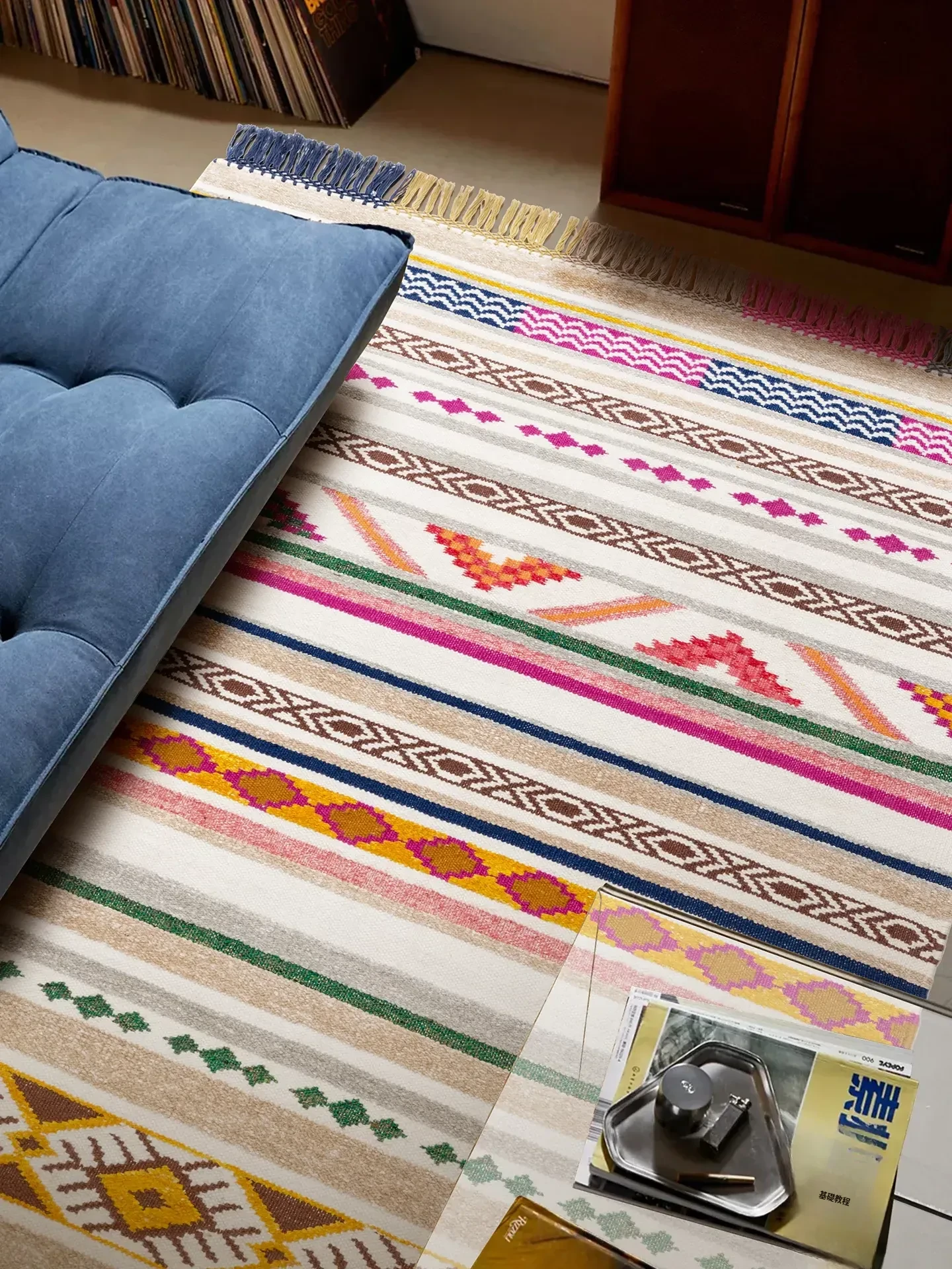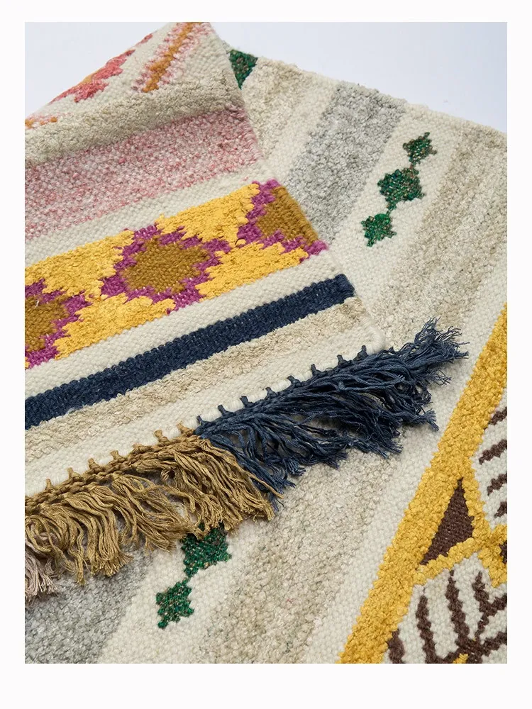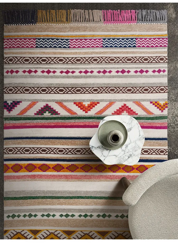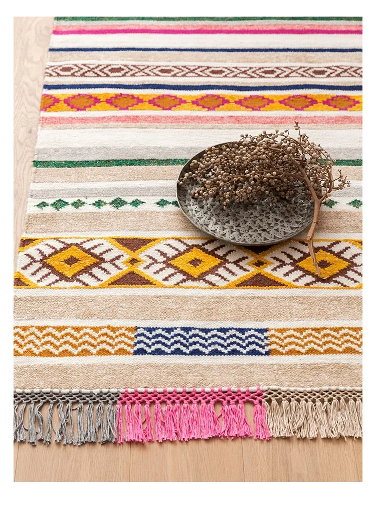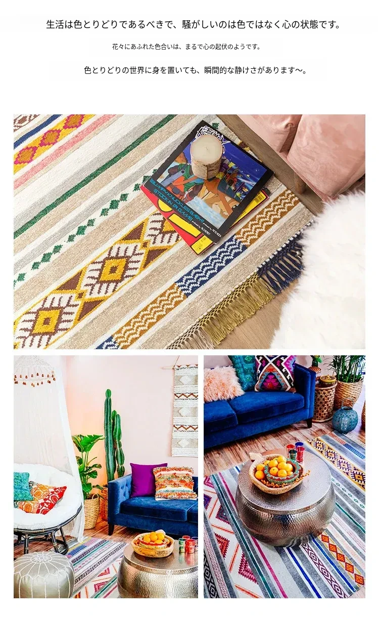 ヴィジュアルテイスト 輸入ウールカーペット ヴィンテージ風 ボヘミアンアメリカン 手作り高品質ラグで、あなたのリビングをスタイリッシュに彩る!