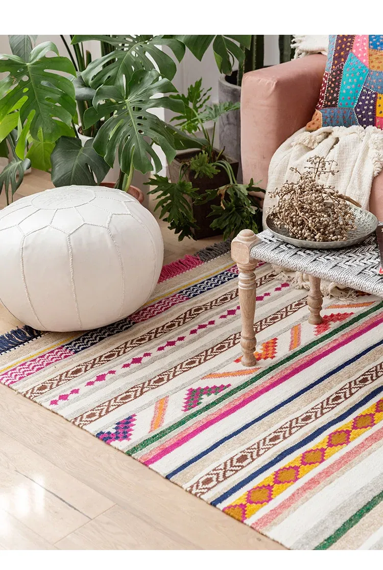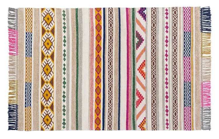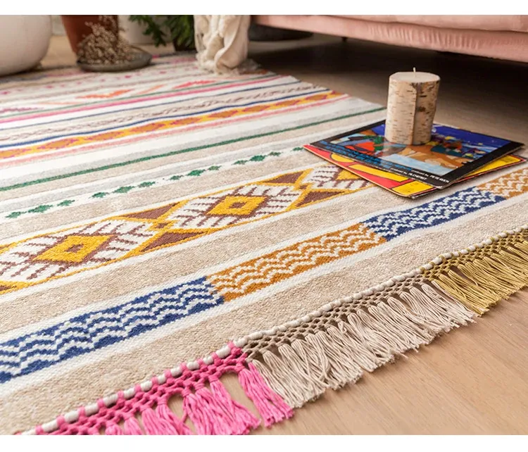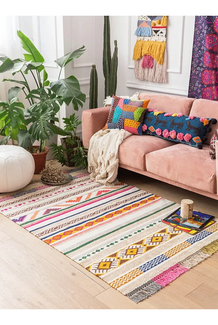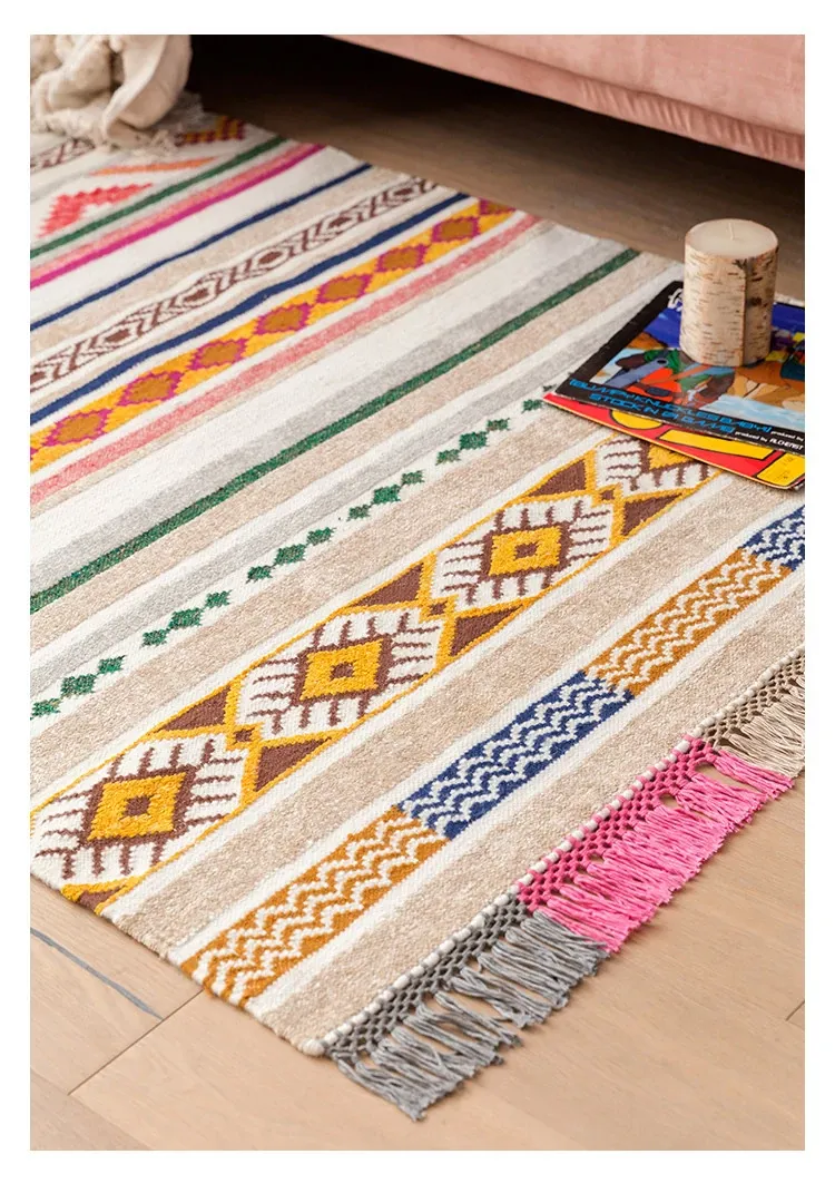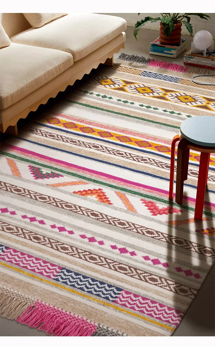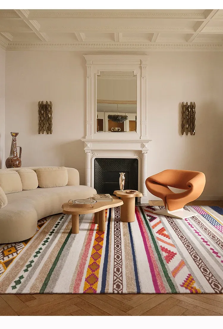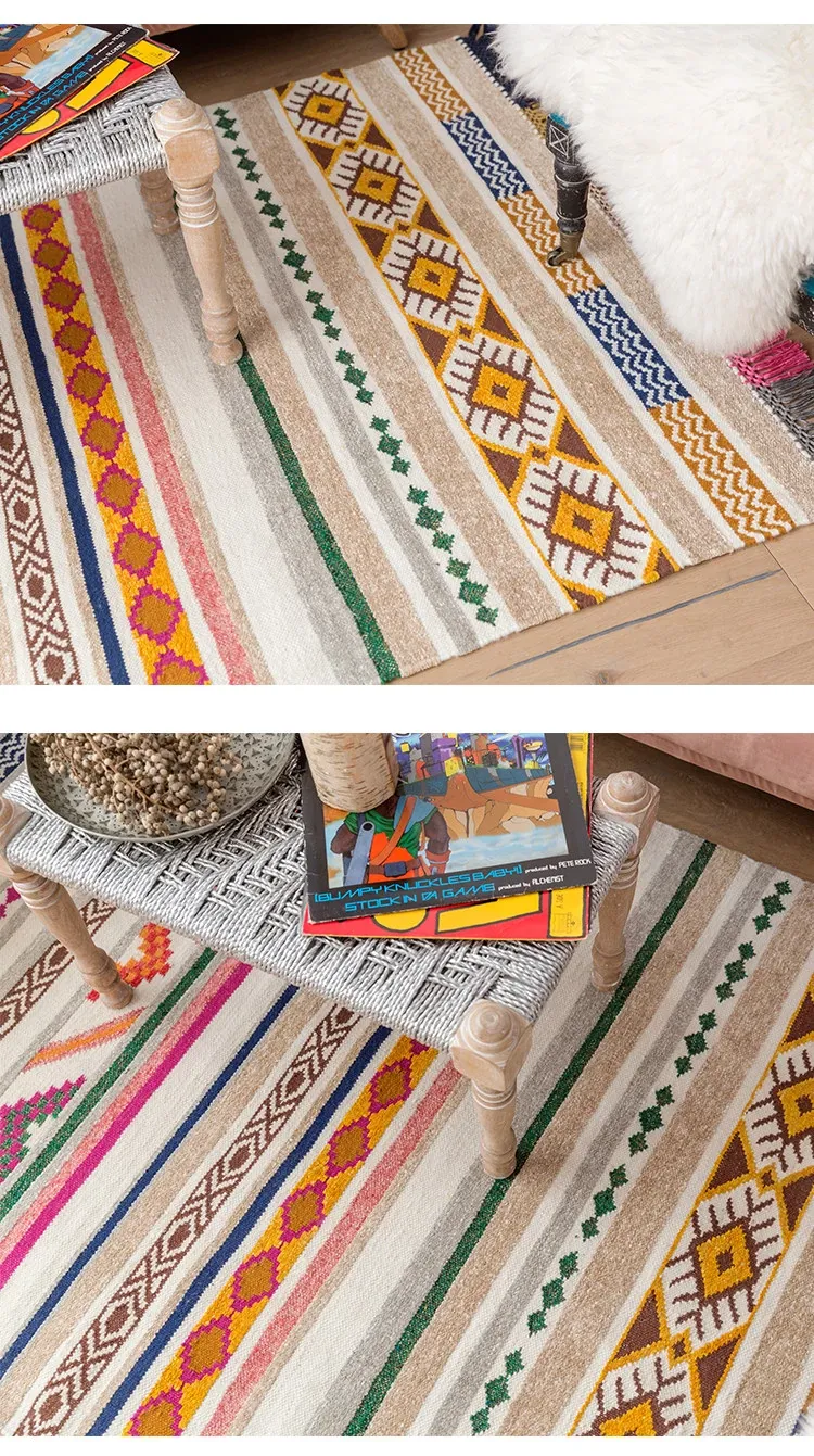 ヴィジュアルテイスト 輸入ウールカーペット ヴィンテージ風 ボヘミアンアメリカン 手作り高品質ラグで、あなたのリビングをスタイリッシュに彩る!