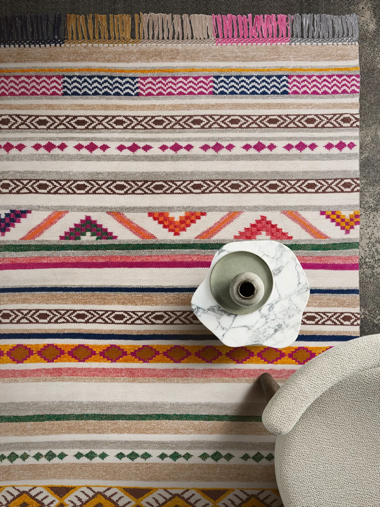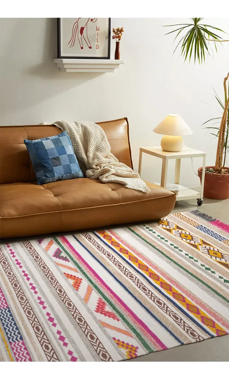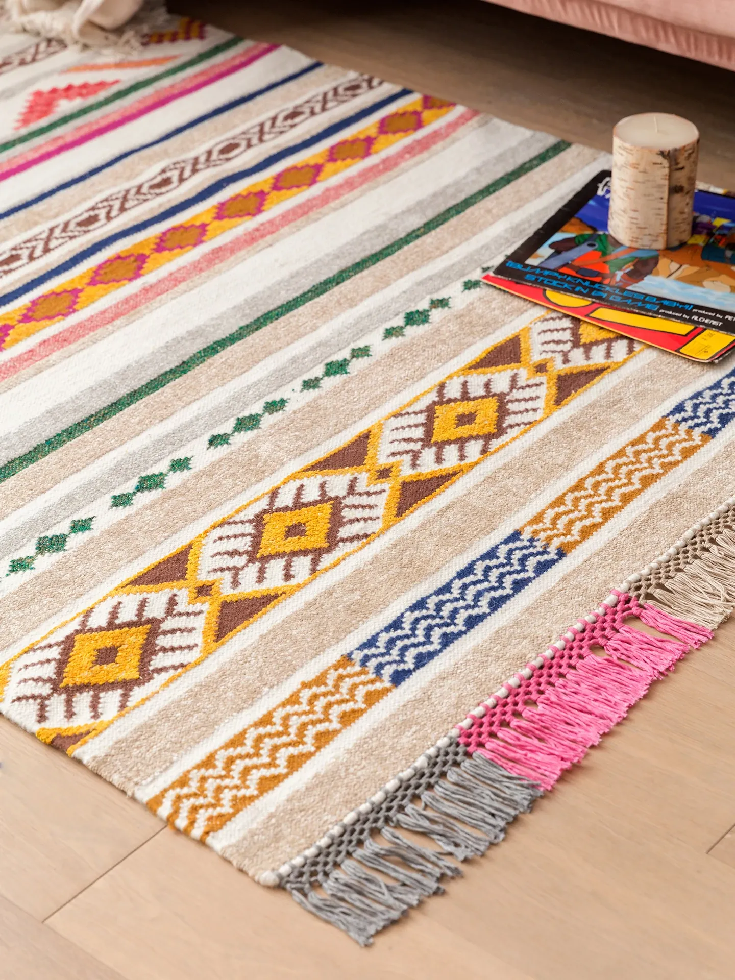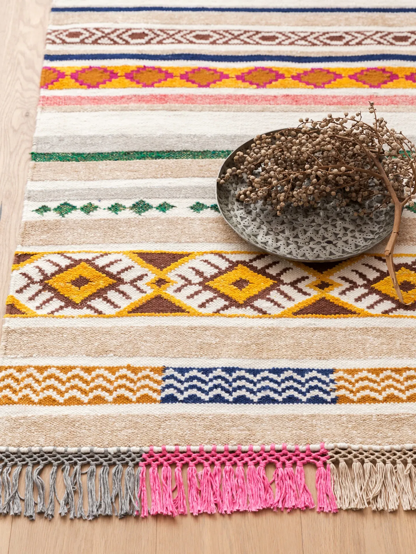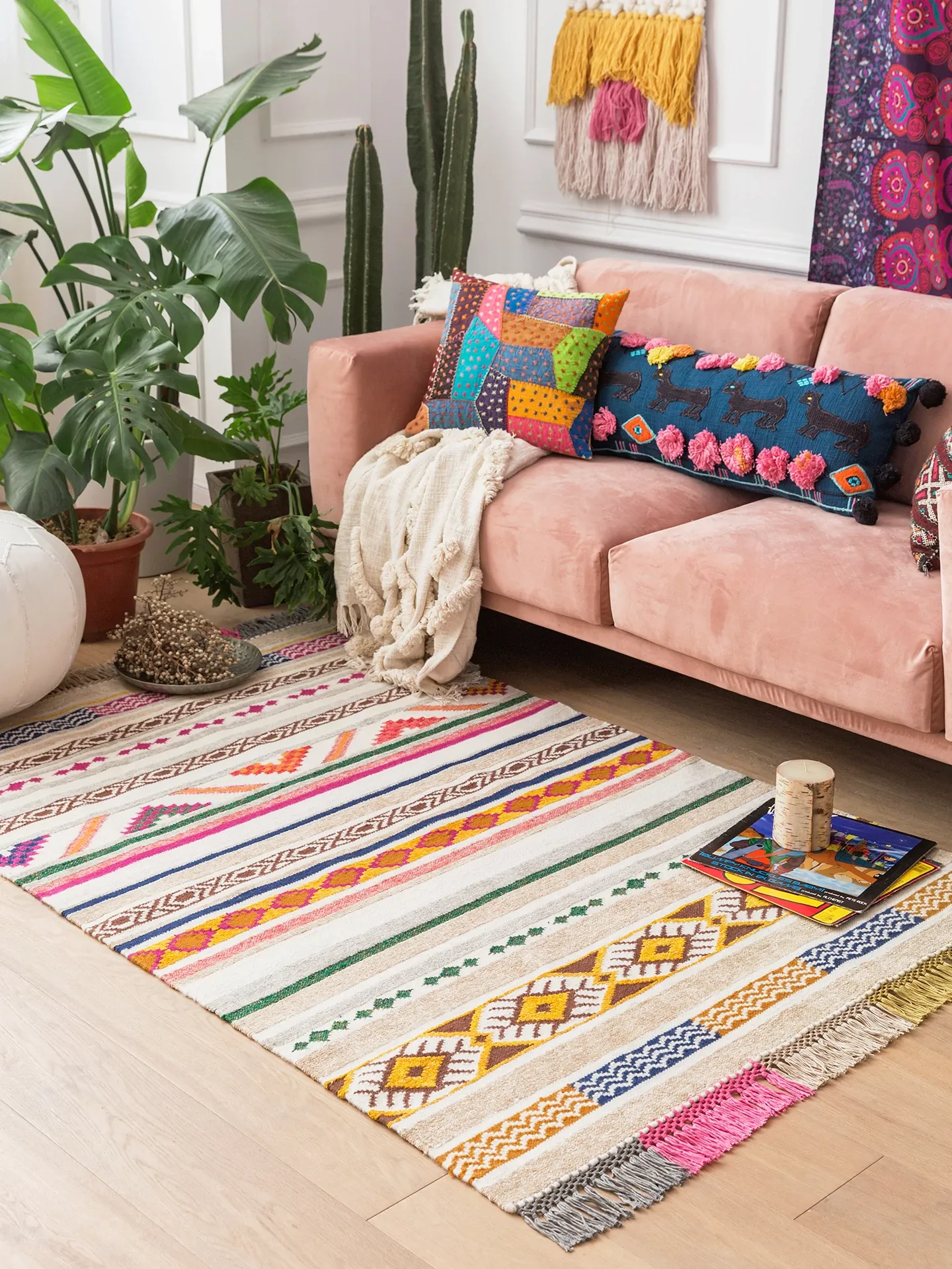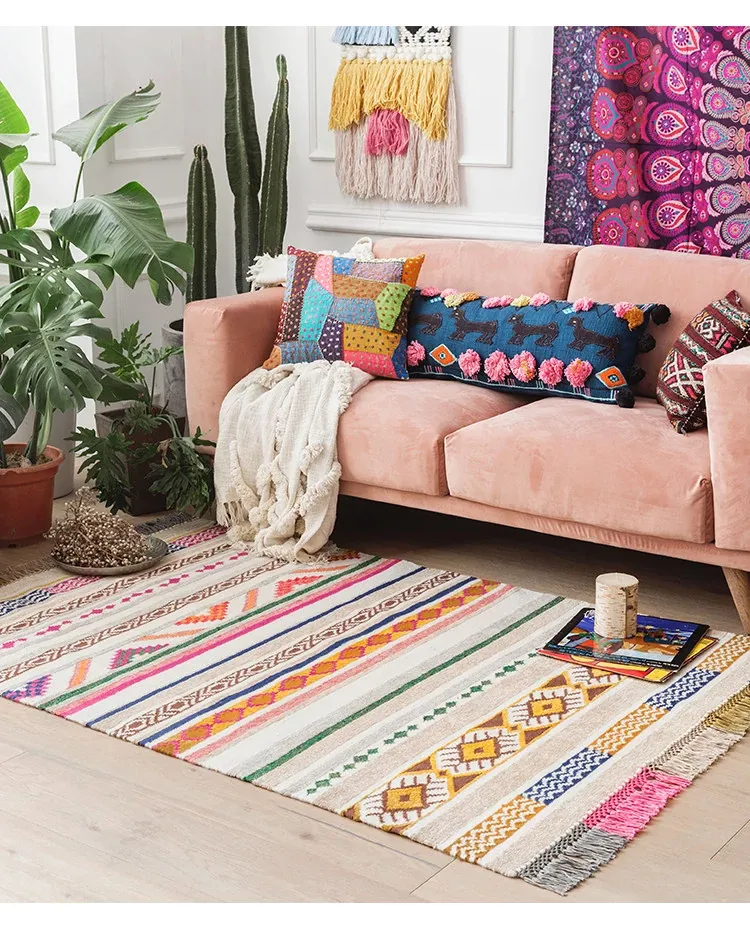 ヴィジュアルテイスト 輸入ウールカーペット ヴィンテージ風 ボヘミアンアメリカン 手作り高品質ラグで、あなたのリビングをスタイリッシュに彩る!