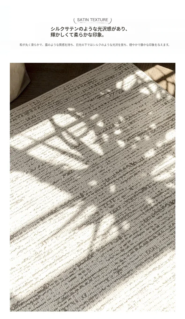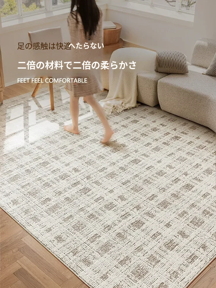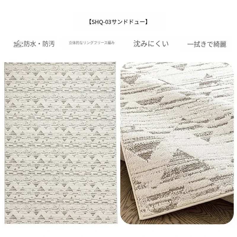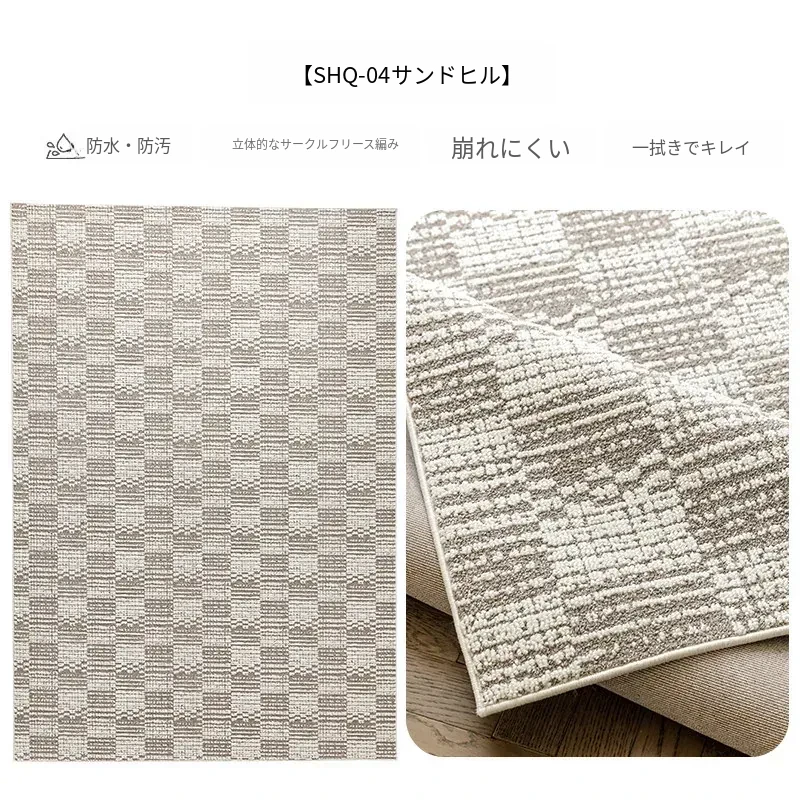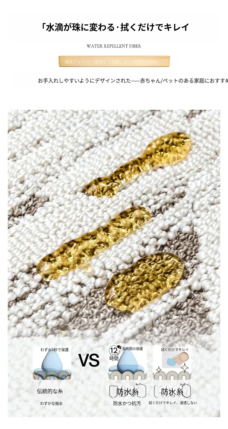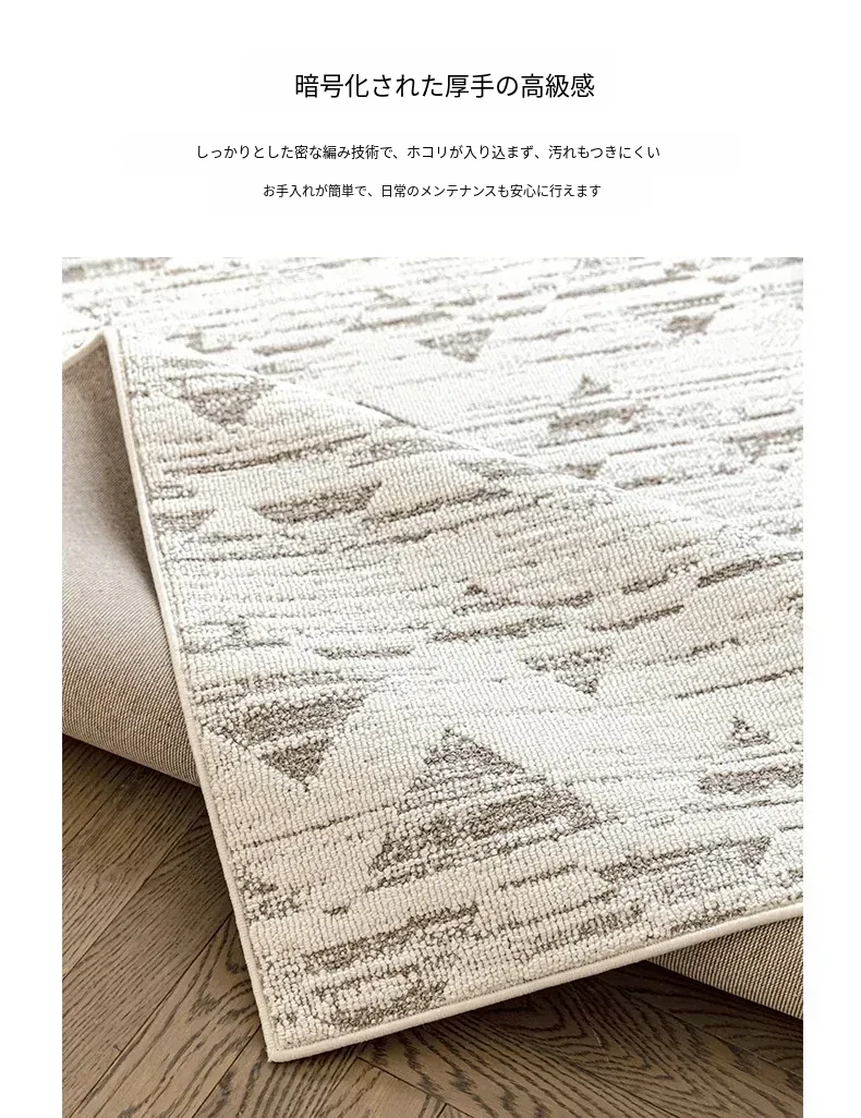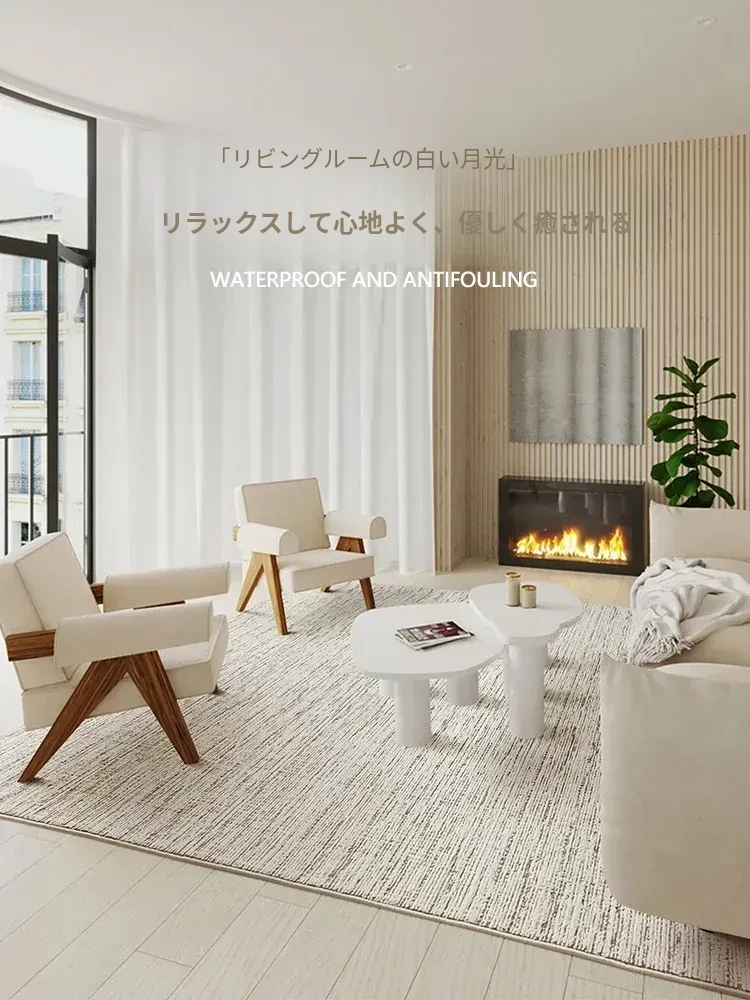 視覚と味覚を楽しむ防水・防汚のリビングラグ!手間いらずでお手入れ簡単、クリーミーな風合いで軽やかさと高級感を演出。侘寂の美しさを引き立てる、あなたの空間にぴったりのアイテムです。