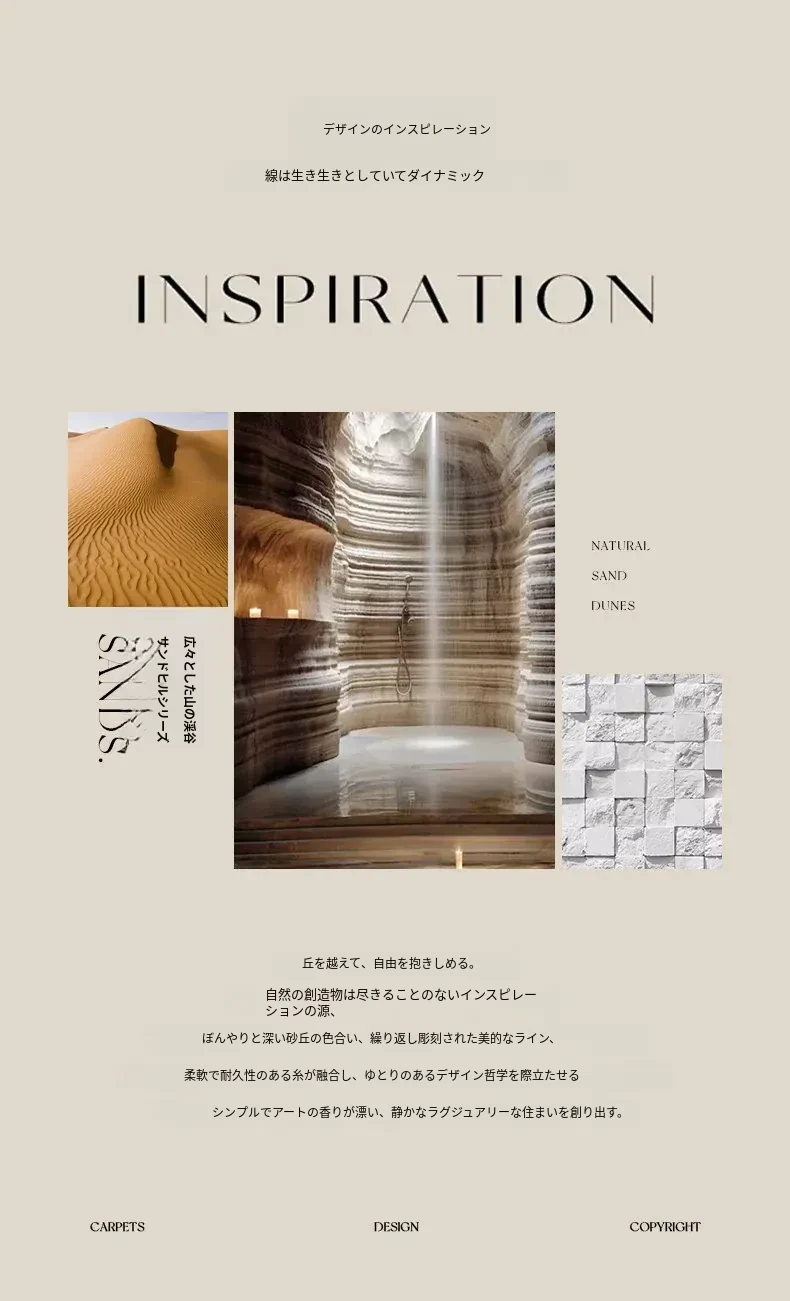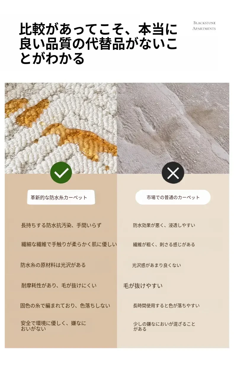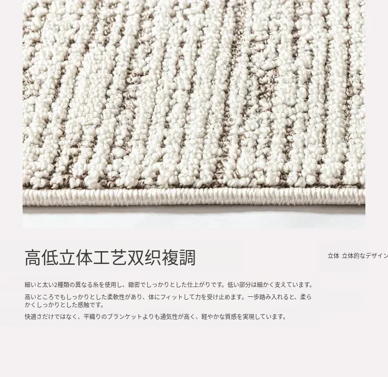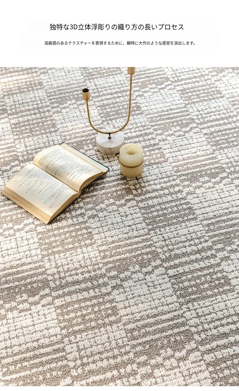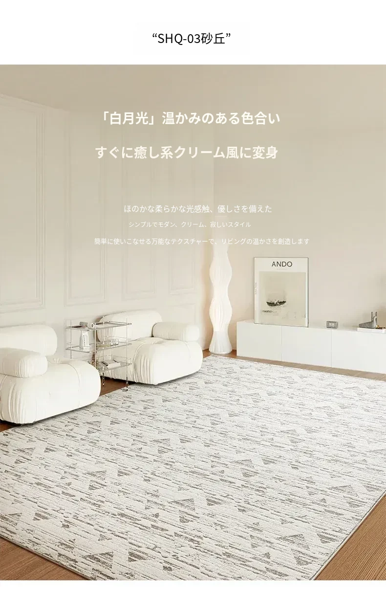 視覚と味覚を楽しむ防水・防汚のリビングラグ!手間いらずでお手入れ簡単、クリーミーな風合いで軽やかさと高級感を演出。侘寂の美しさを引き立てる、あなたの空間にぴったりのアイテムです。