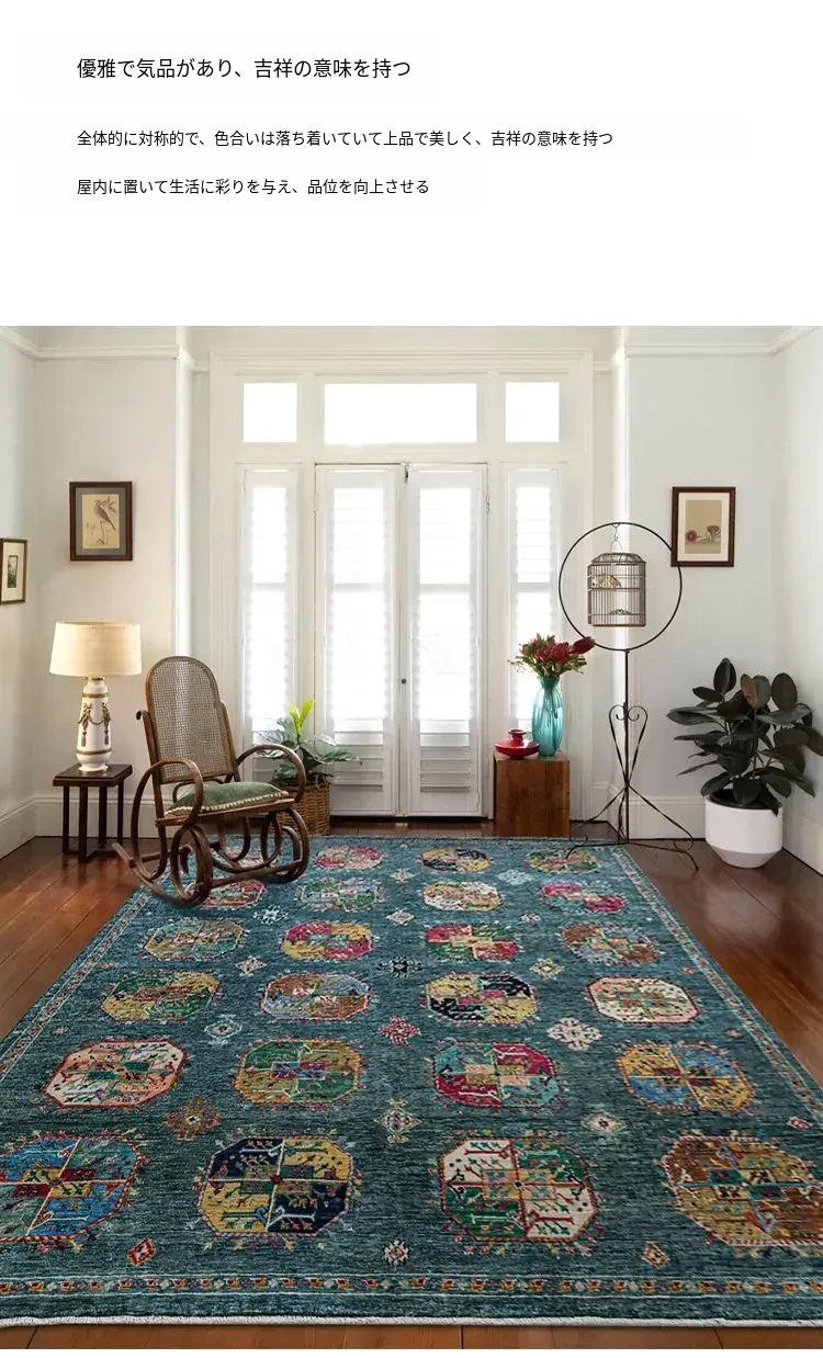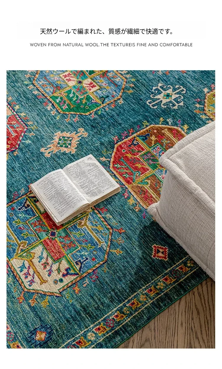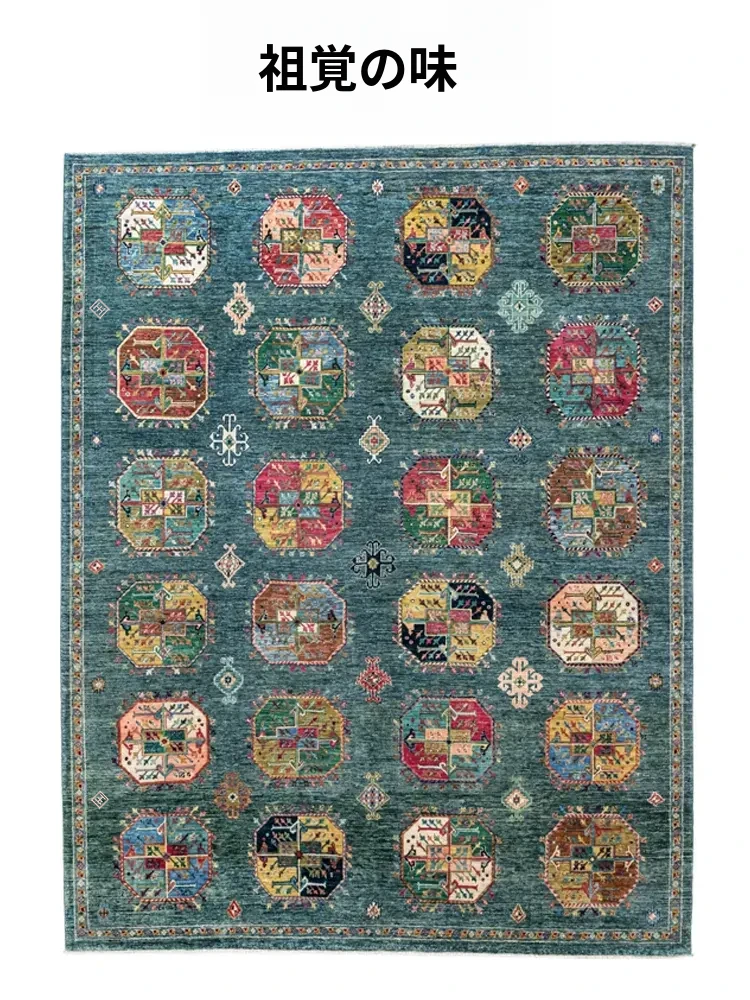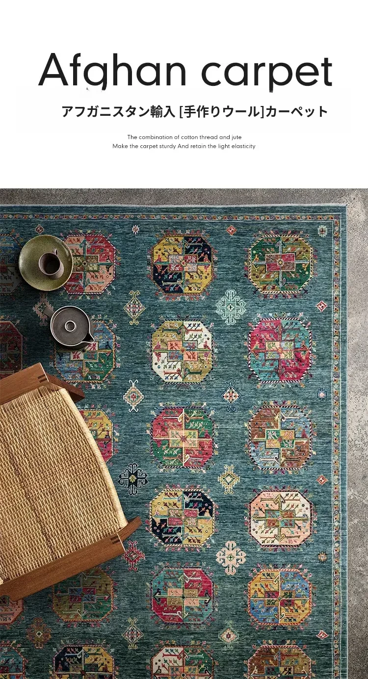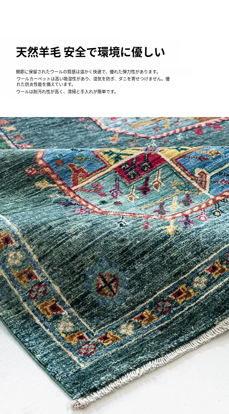 視覚と味覚を楽しむアフガニスタン産手作りウールラグ - ヴィラのリビングにぴったりな無ホルムアルデヒドの茶卓マット!上質な手結び工芸で、心地よい空間を演出します。
