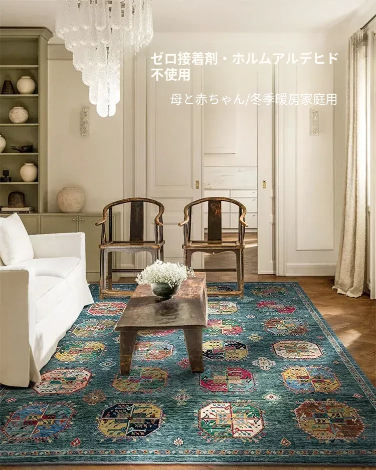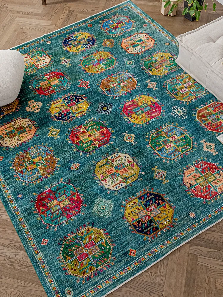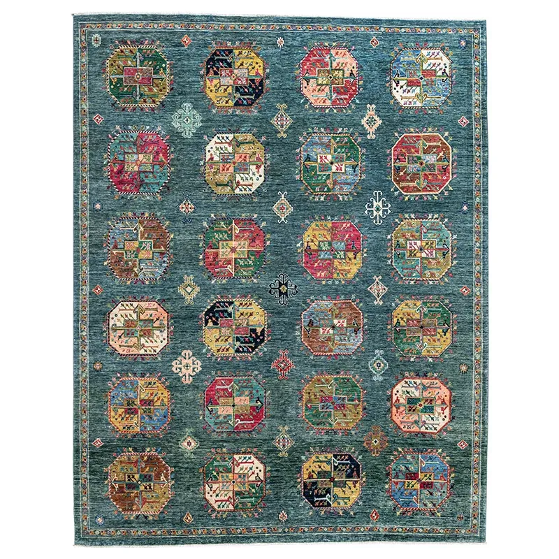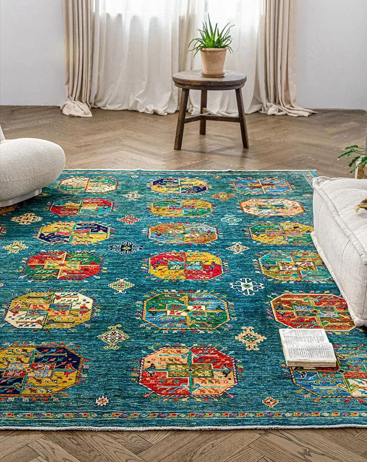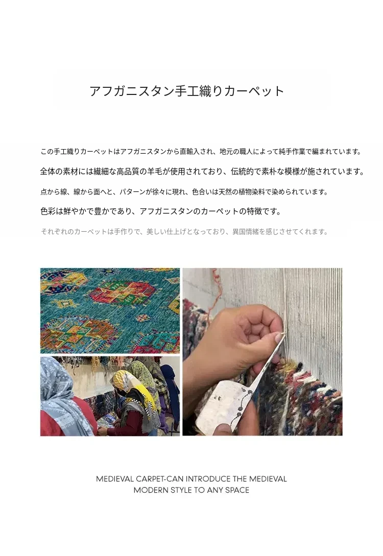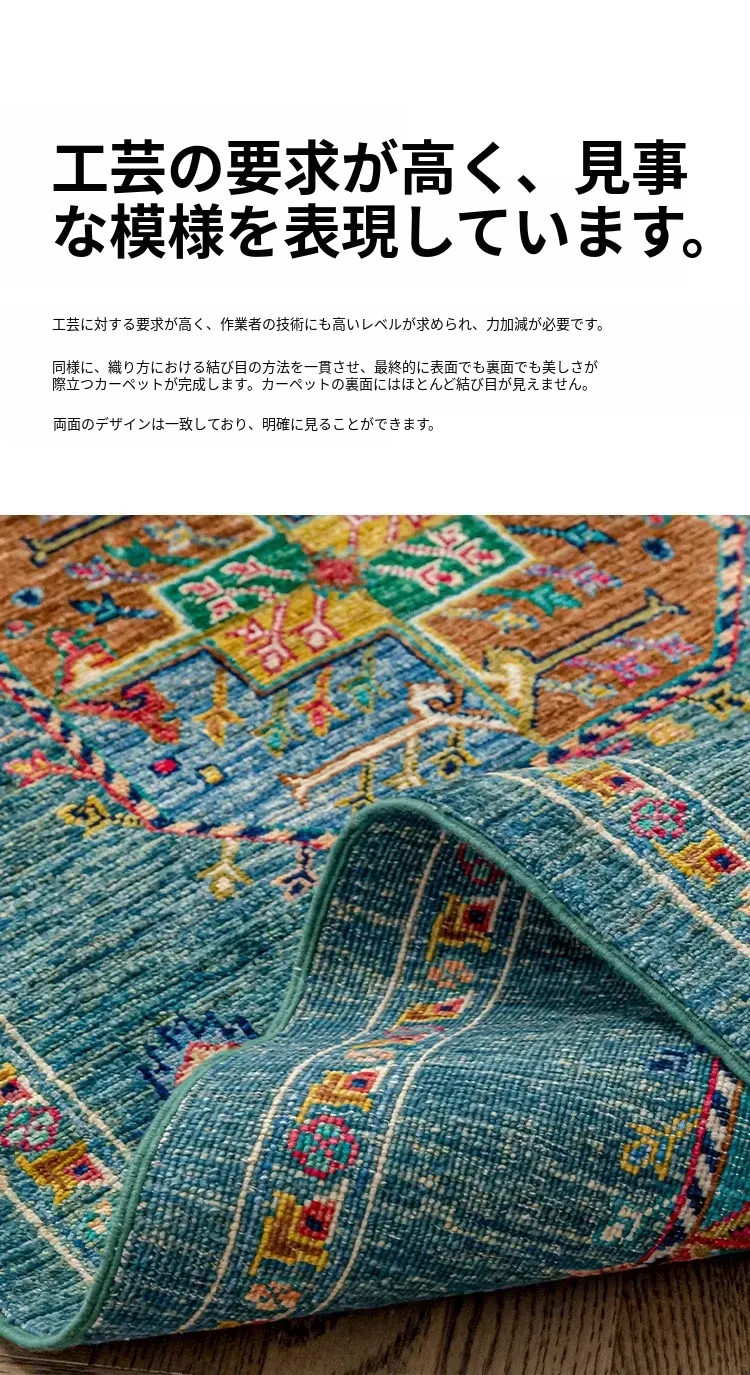 視覚と味覚を楽しむアフガニスタン産手作りウールラグ - ヴィラのリビングにぴったりな無ホルムアルデヒドの茶卓マット!上質な手結び工芸で、心地よい空間を演出します。