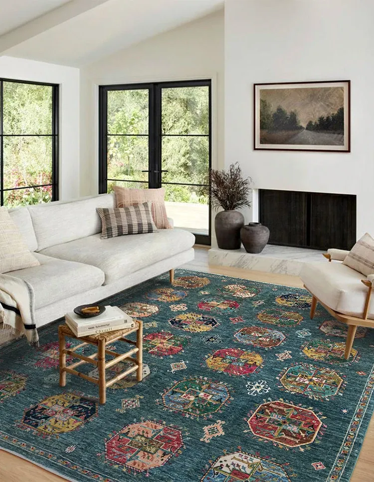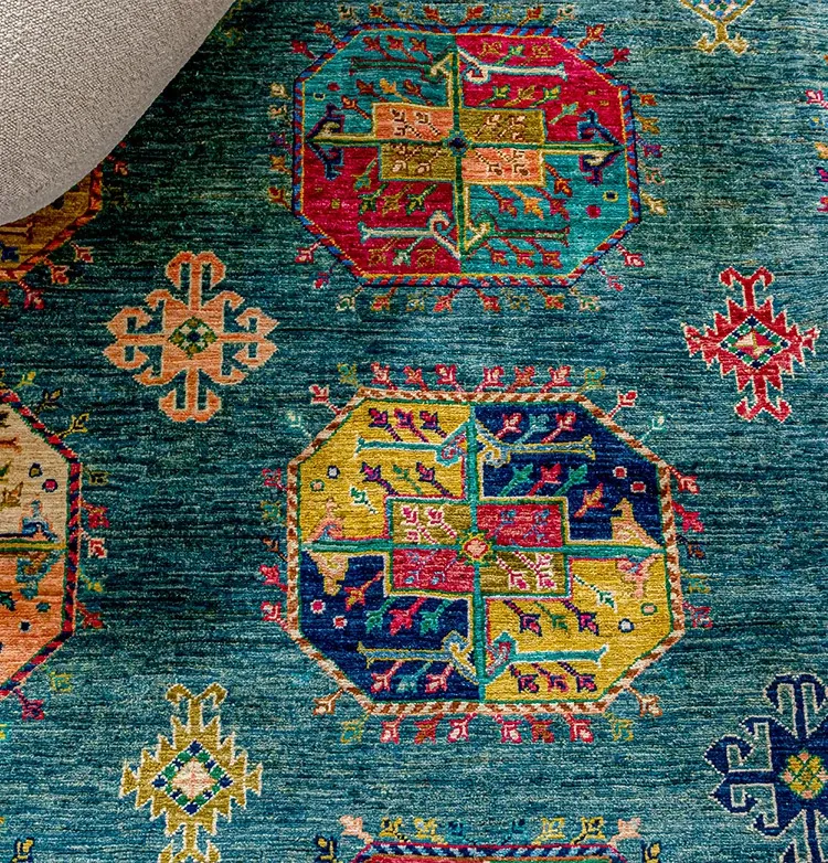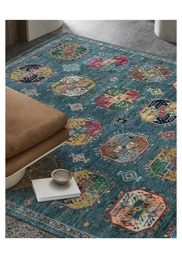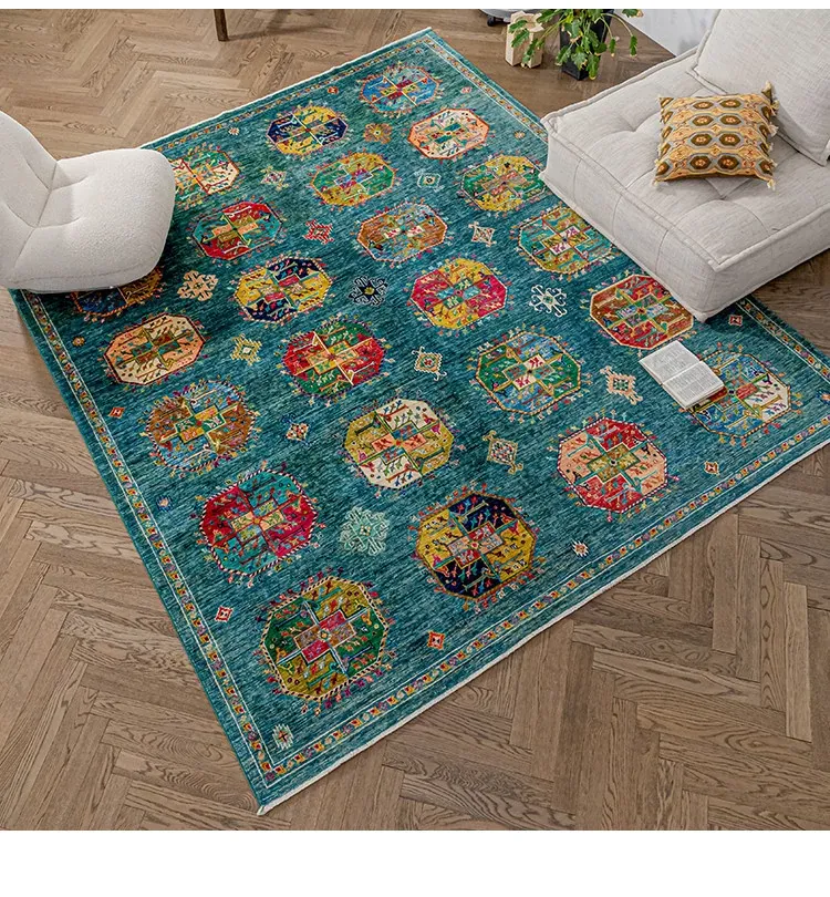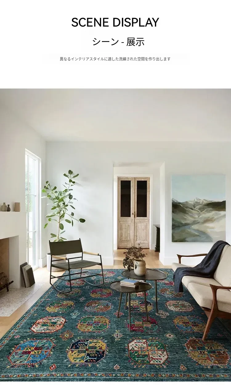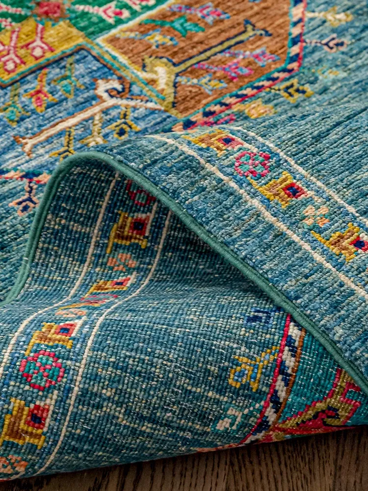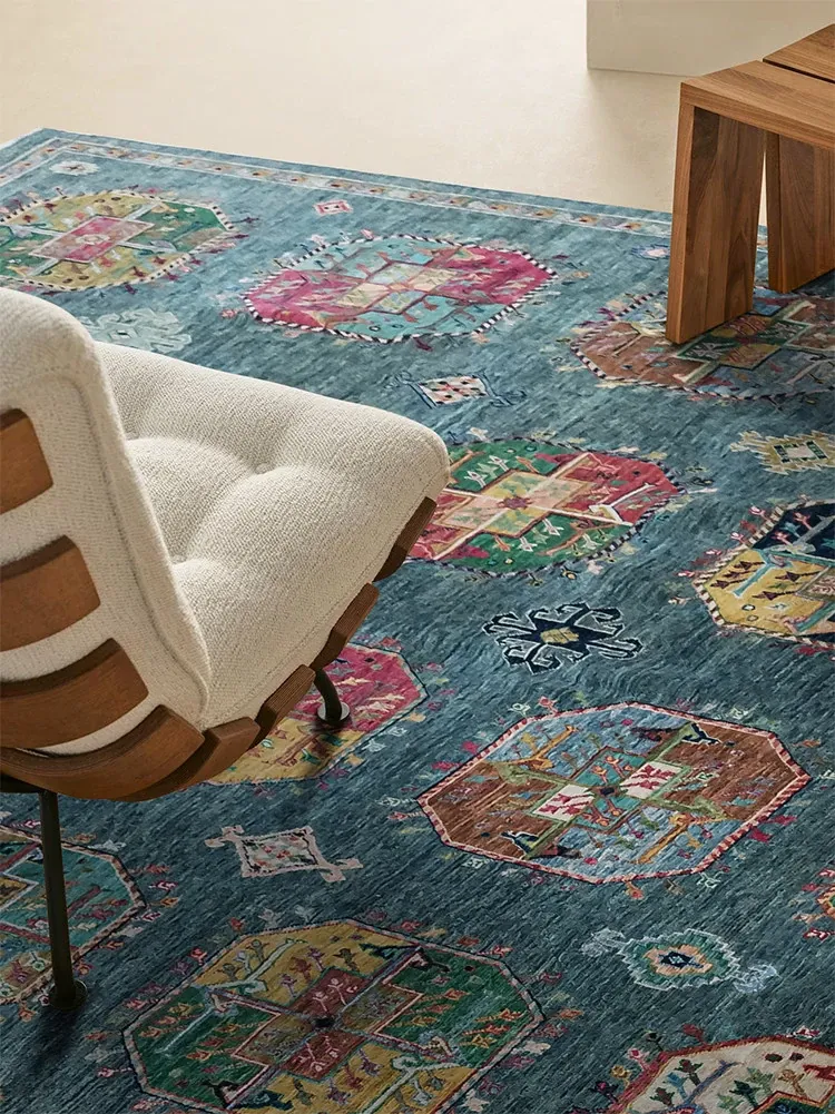 視覚と味覚を楽しむアフガニスタン産手作りウールラグ - ヴィラのリビングにぴったりな無ホルムアルデヒドの茶卓マット!上質な手結び工芸で、心地よい空間を演出します。