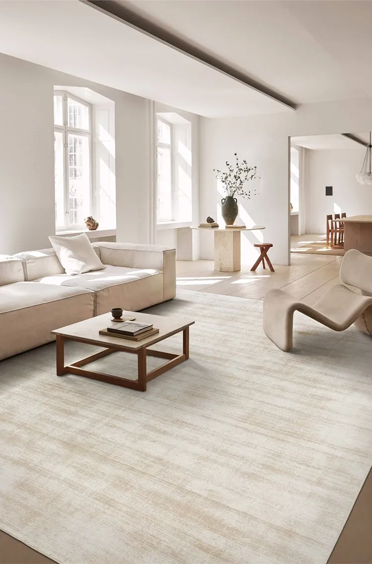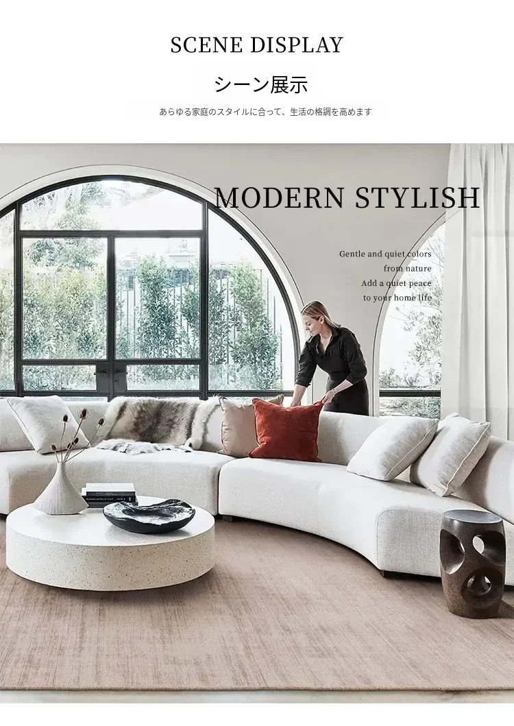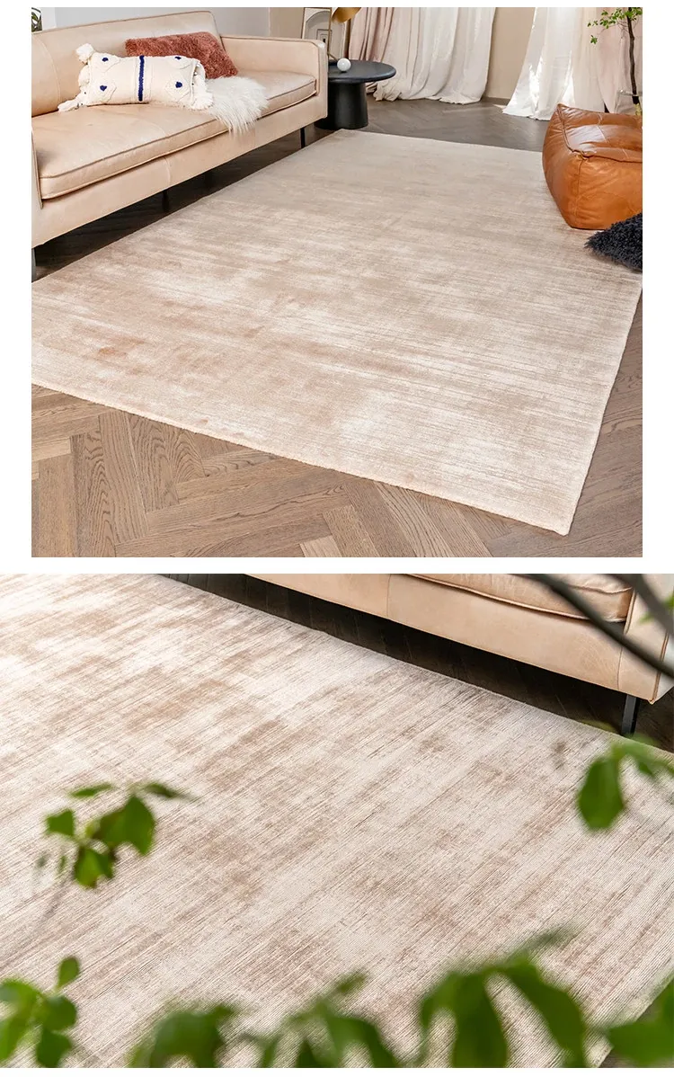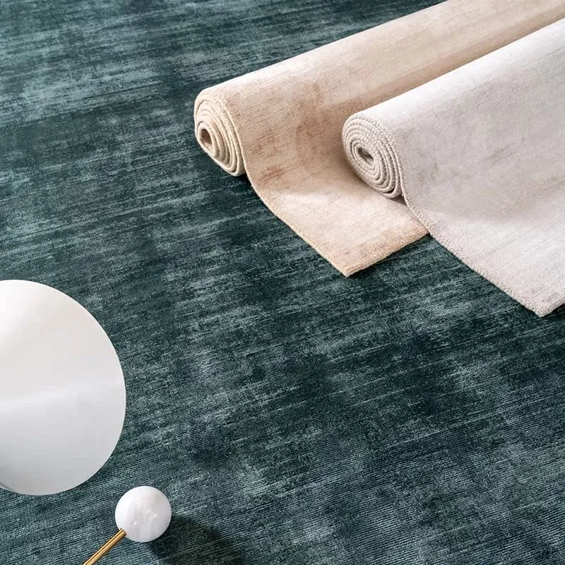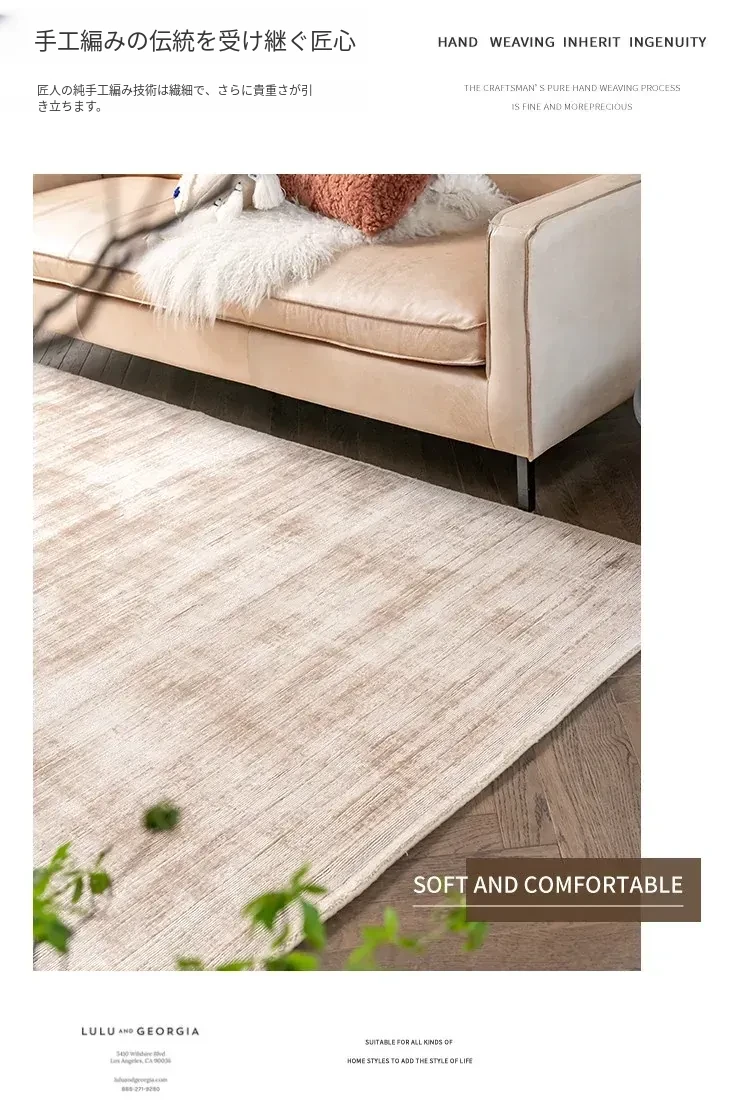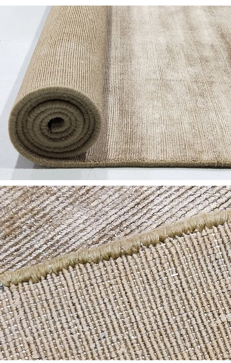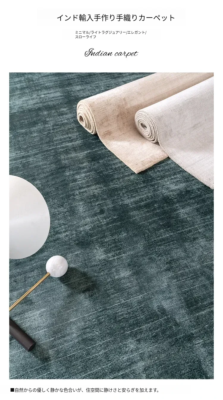 視覚的な味わい インド直輸入 高級無地手織りカーペット モダンミニマリズムの侘び寂びリビングにぴったり!ビスコース素材使用で環境にも優しい!