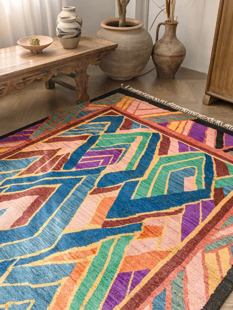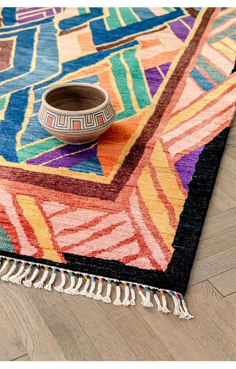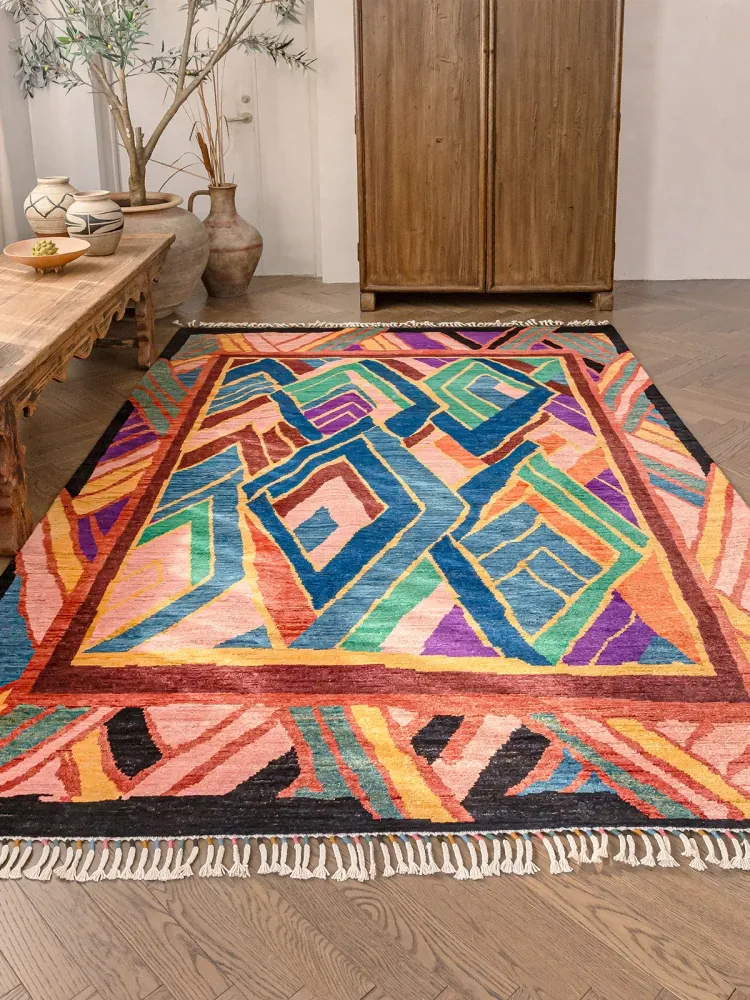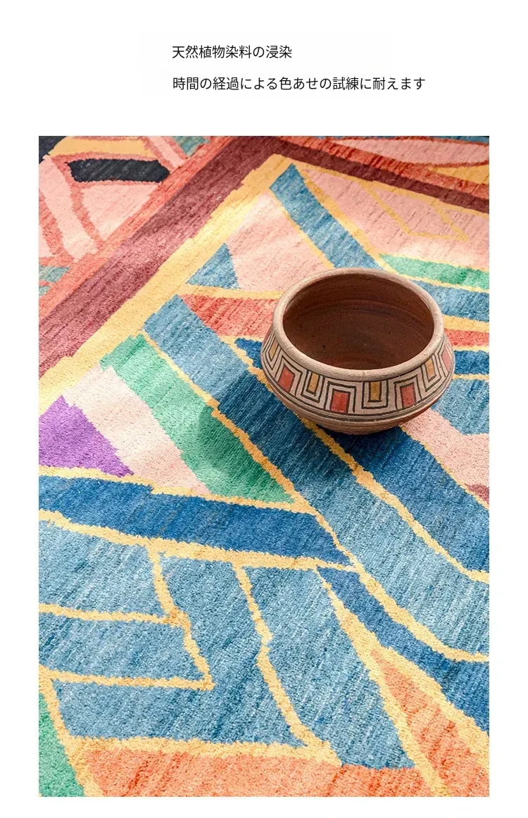 視覚と味覚を楽しむアフガニスタン直輸入のリビングルームラグ!純手作りのウールカーペット、色彩豊かなアートデザインで、接着剤やホルムアルデヒド不使用。お部屋を華やかに彩る一品をお見逃しなく!