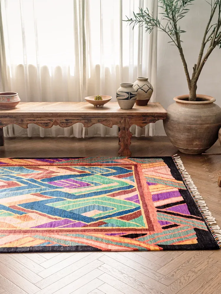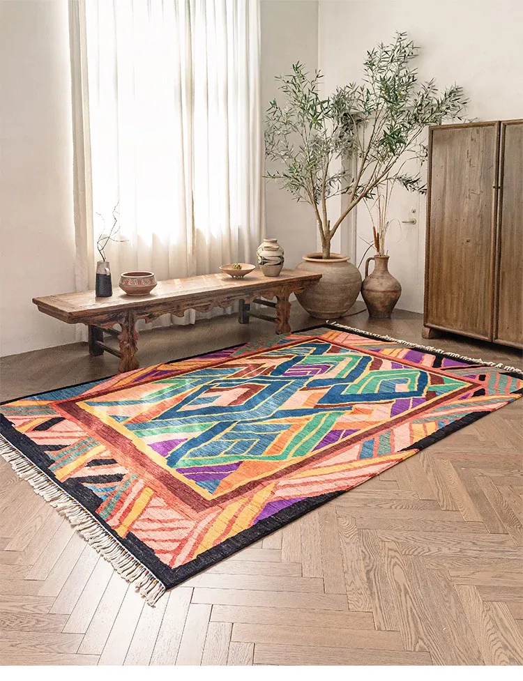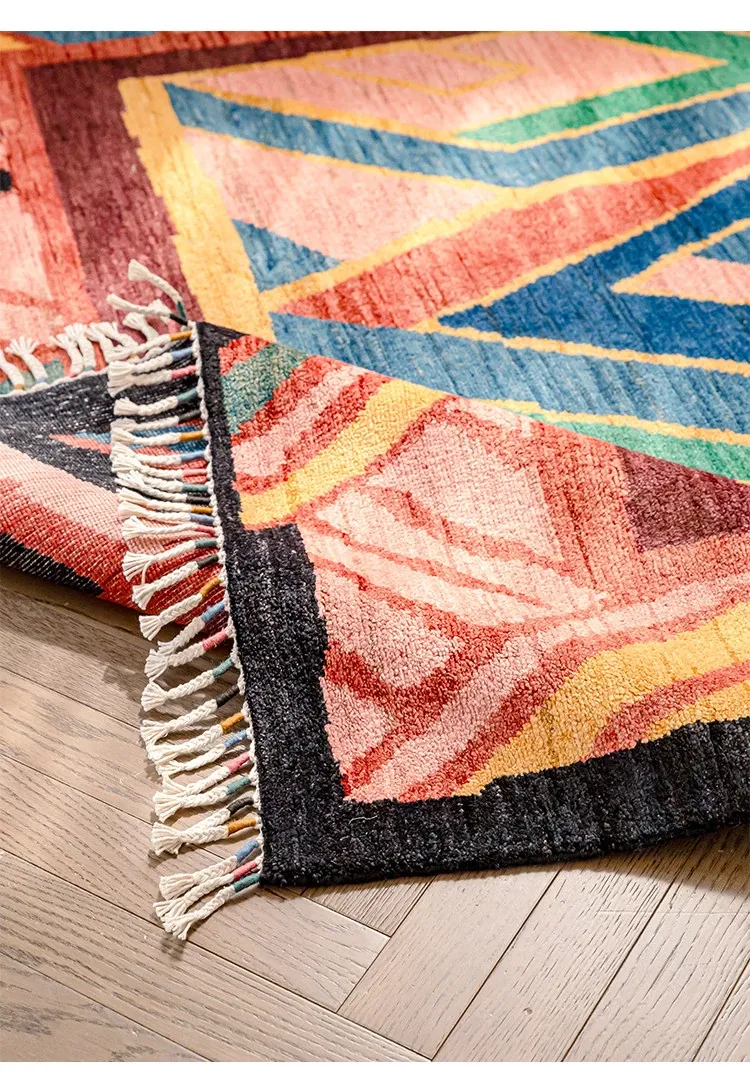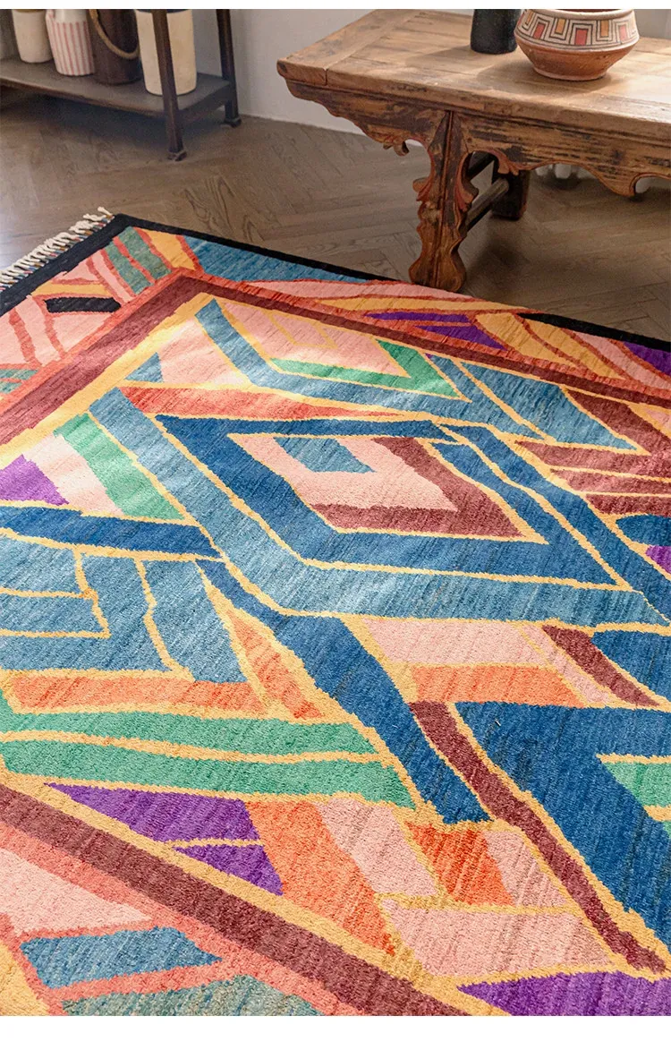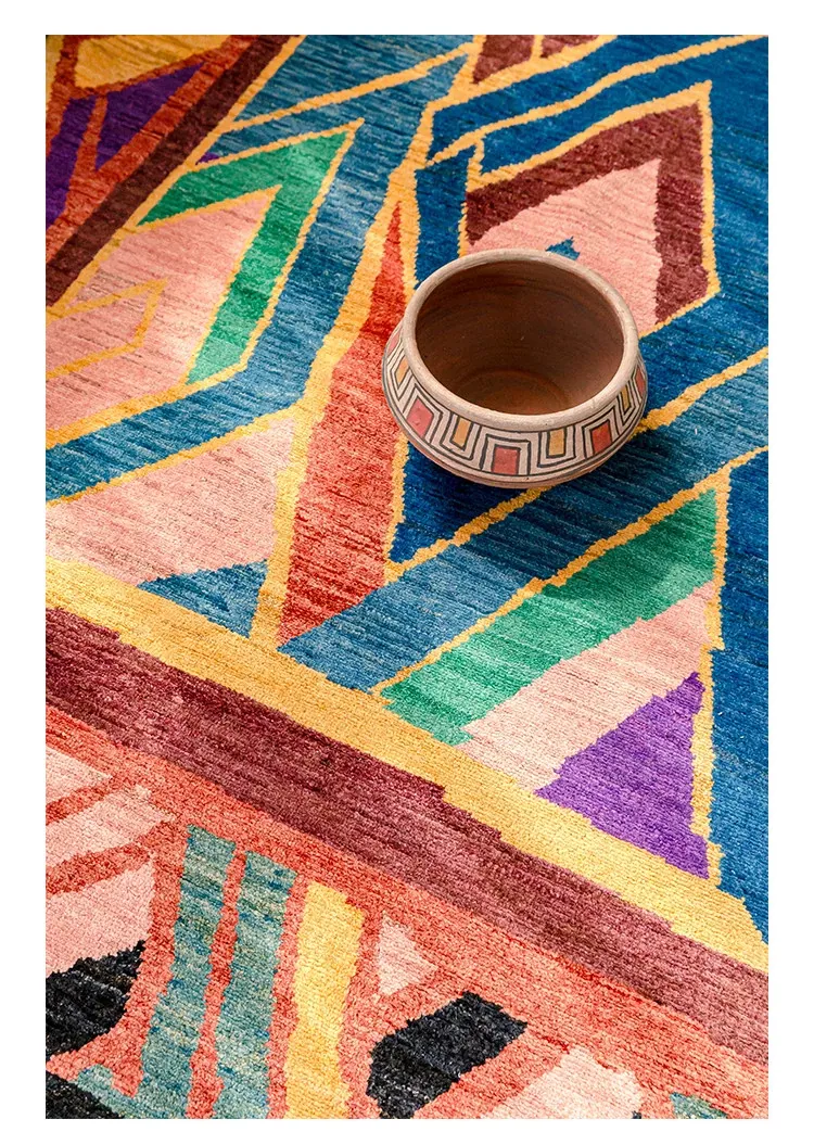 視覚と味覚を楽しむアフガニスタン直輸入のリビングルームラグ!純手作りのウールカーペット、色彩豊かなアートデザインで、接着剤やホルムアルデヒド不使用。お部屋を華やかに彩る一品をお見逃しなく!