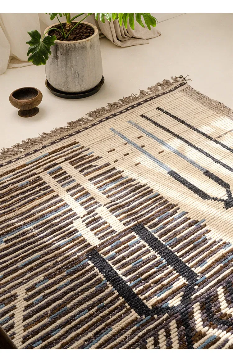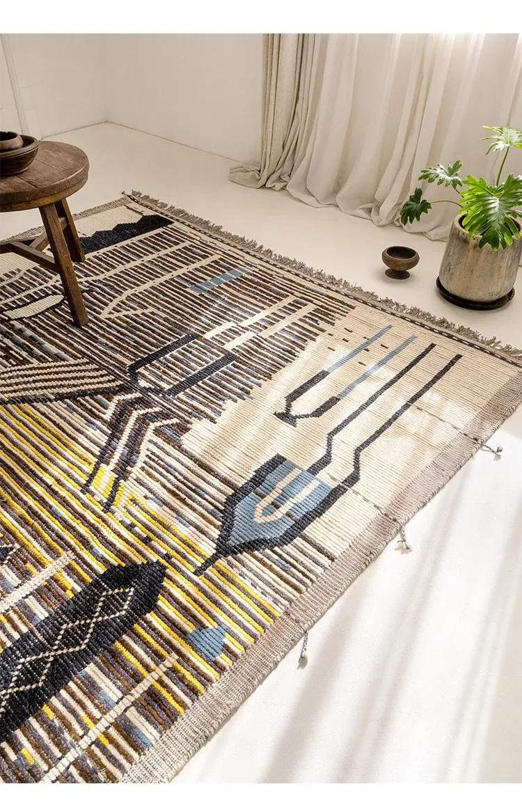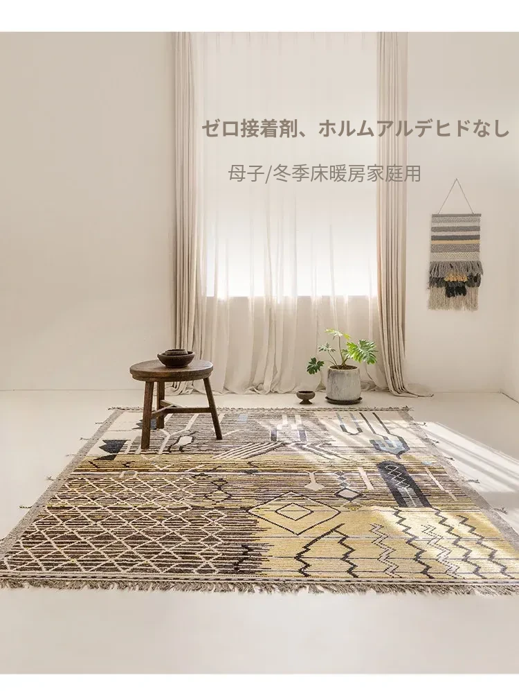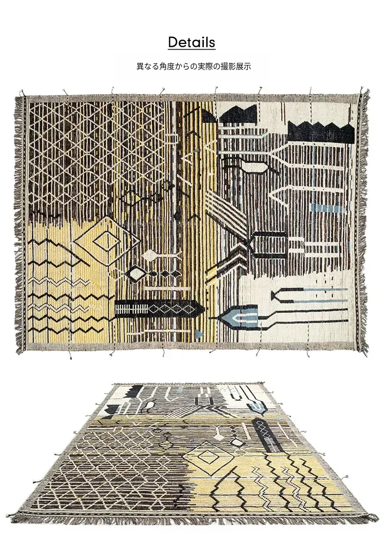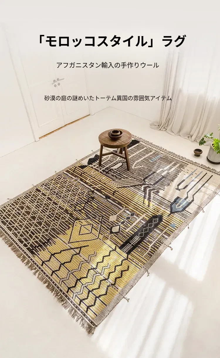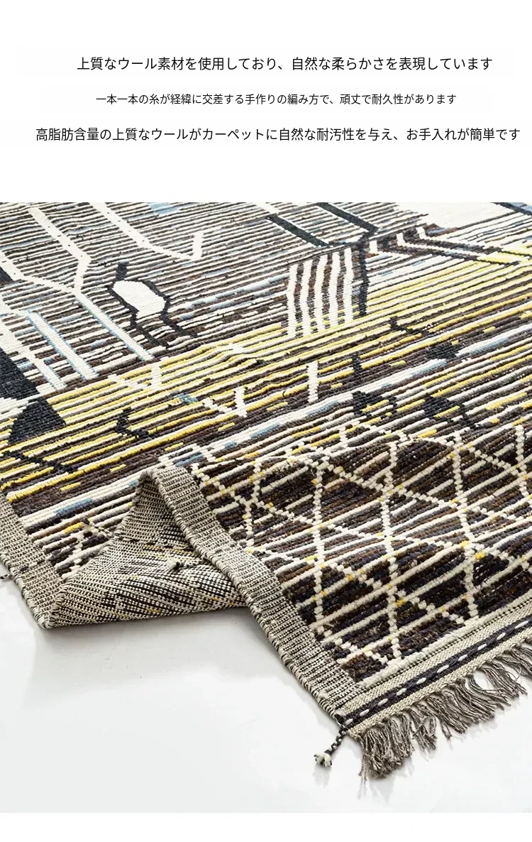 ビジュアルテイスト モロッコ直輸入 手作りウールラグ 現代の侘び寂びスタイル リビングにぴったりのレトロデザイン 接着剤不使用で安心!