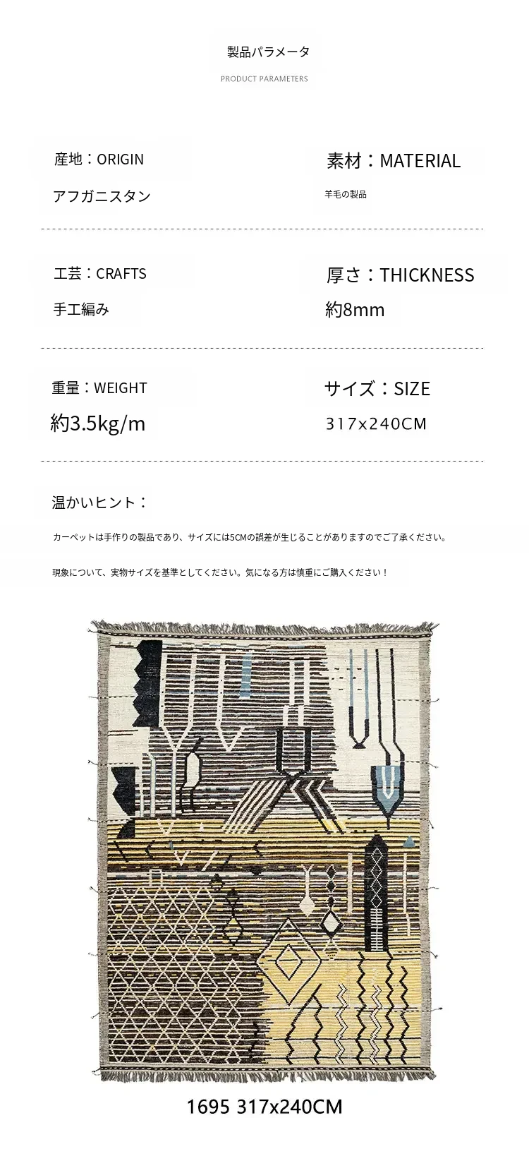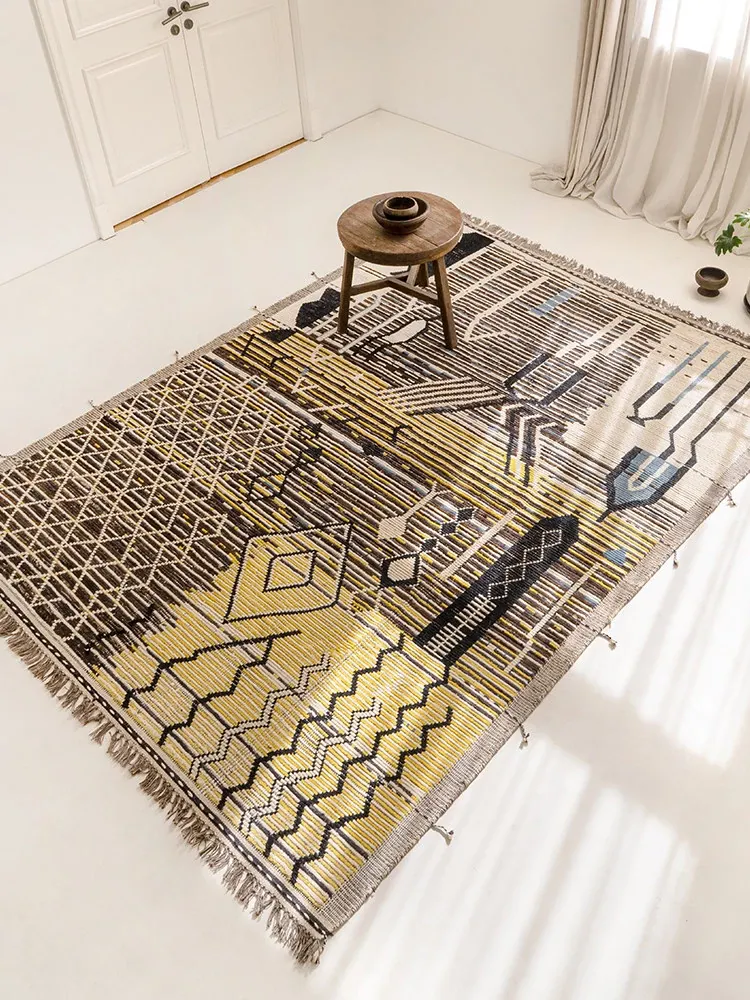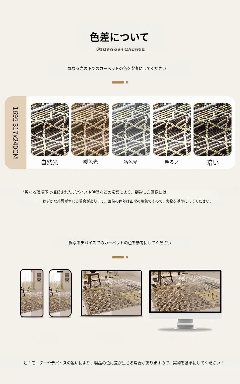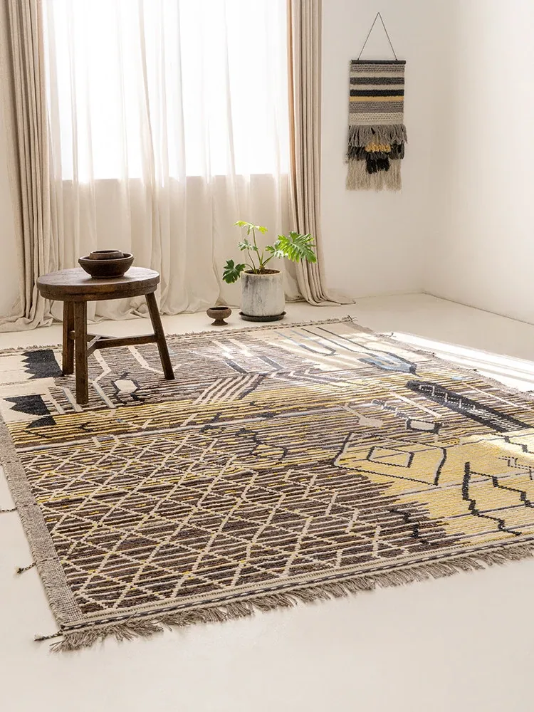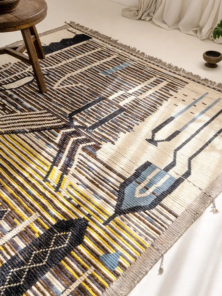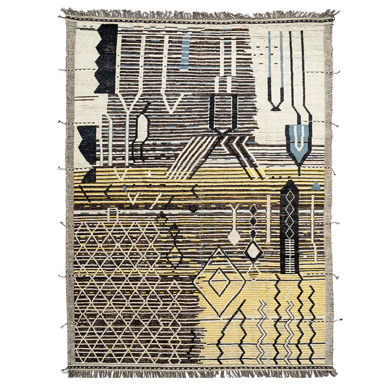ビジュアルテイスト モロッコ直輸入 手作りウールラグ 現代の侘び寂びスタイル リビングにぴったりのレトロデザイン 接着剤不使用で安心!