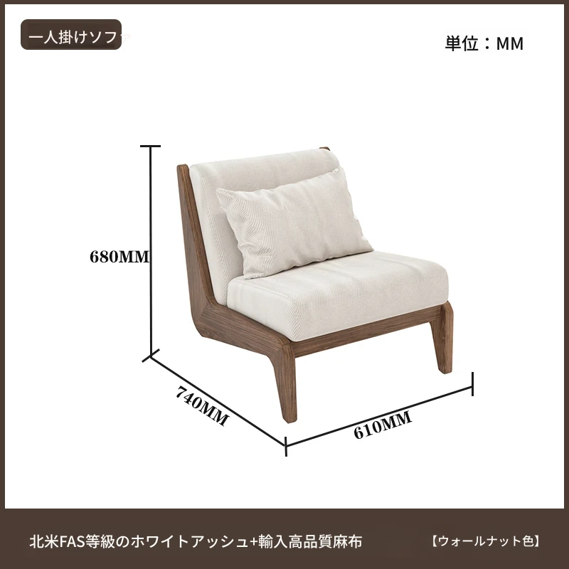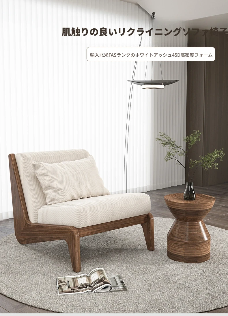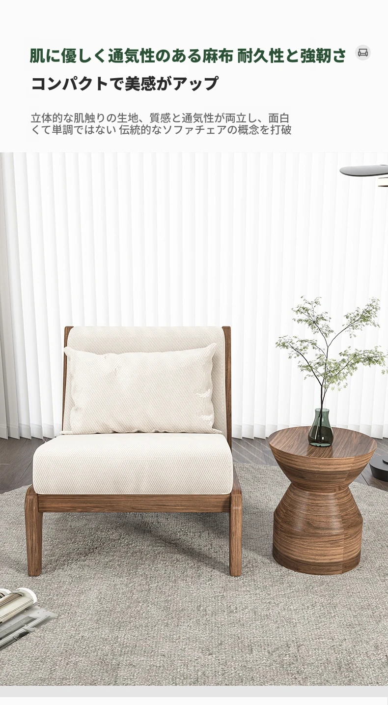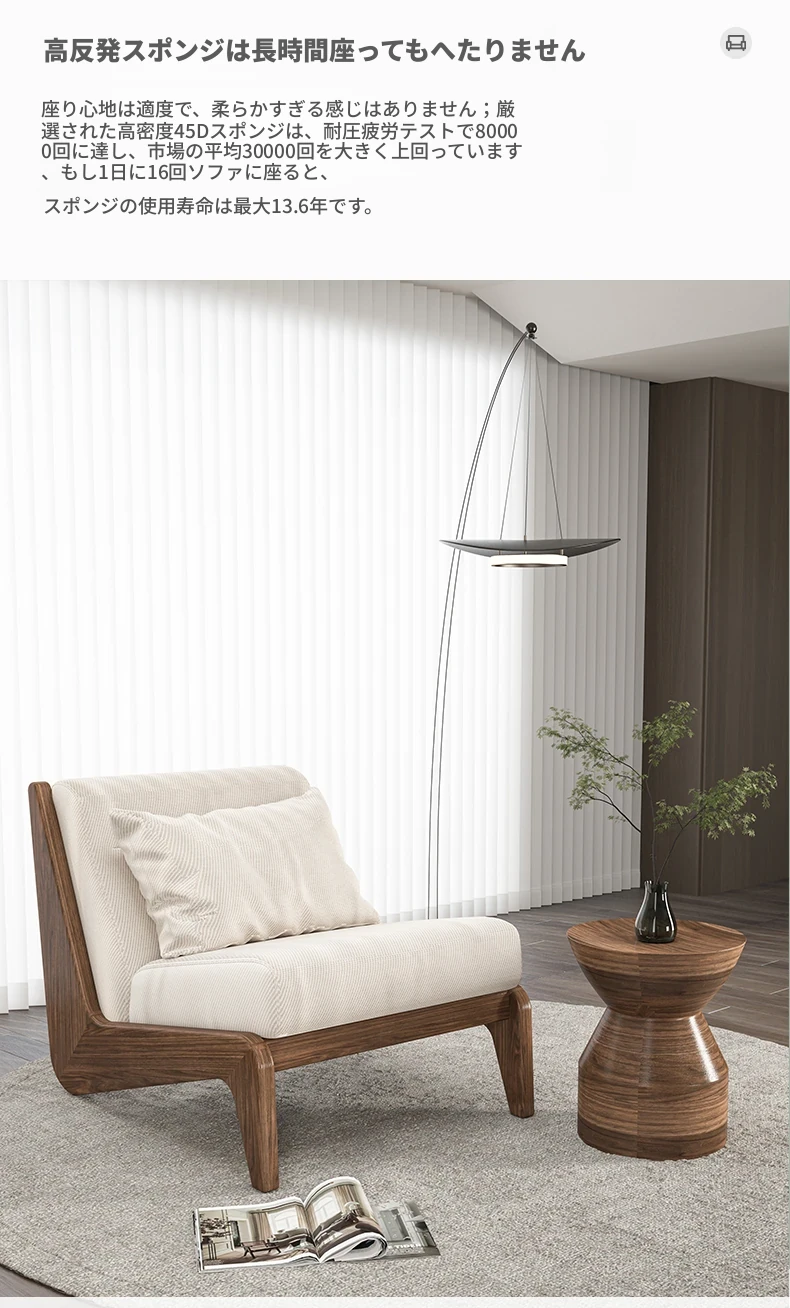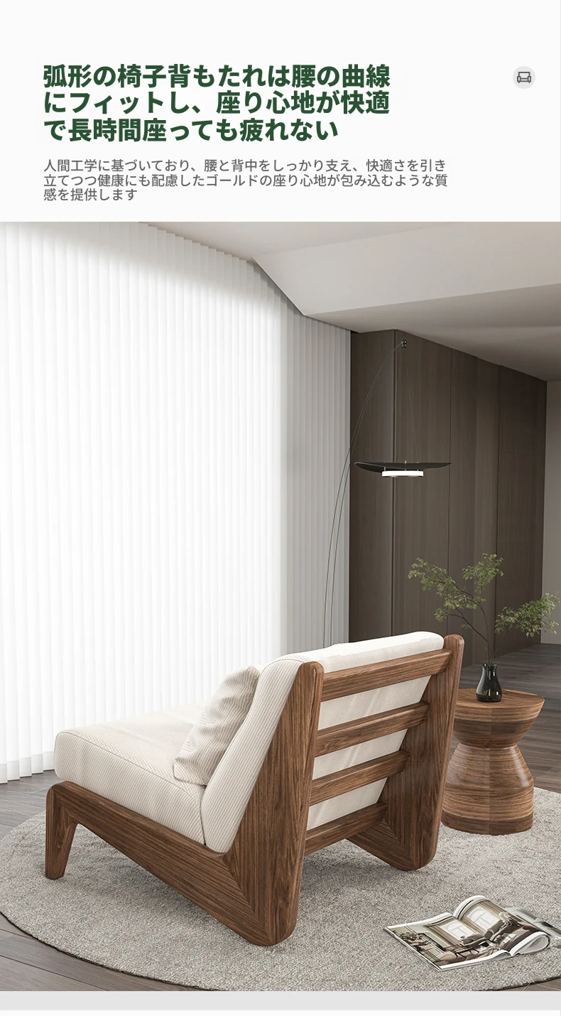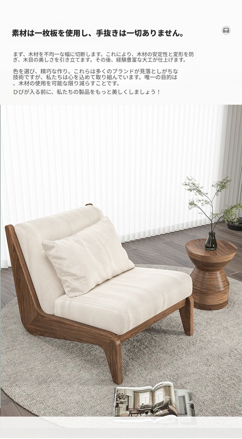侘寂スタイルの無垢材一人掛けソファ|中小型リビングに最適なデザイナーズクリエイティブソファ|おしゃれでリラックスできる空間を演出します!