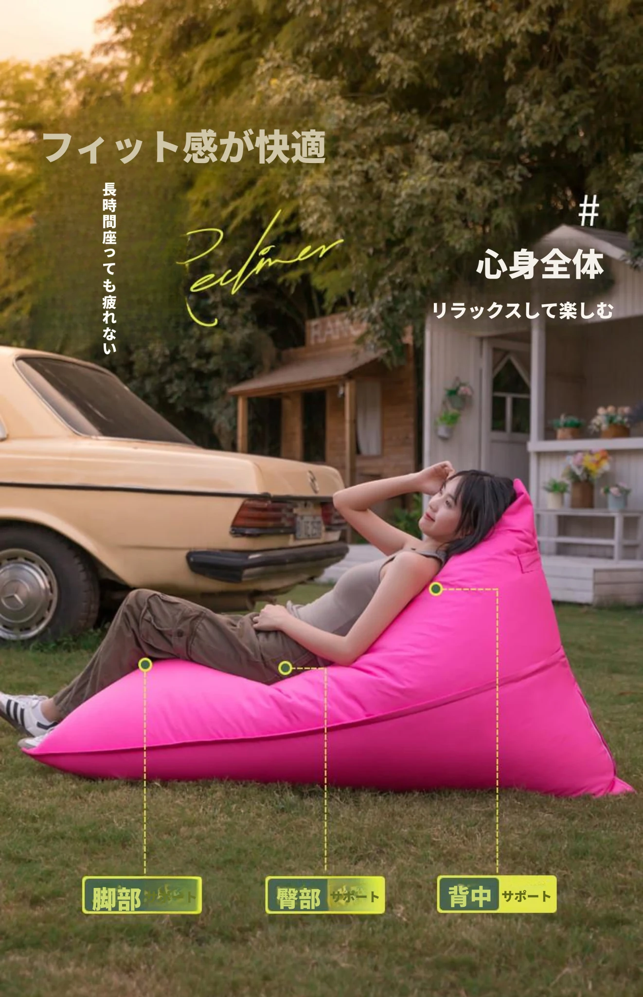 防水ビーチチェア|アウトドアリラックスソファ|庭での昼寝やピクニック、キャンプに最適|親子で楽しむ豆袋ソファ|旅行や観光地でも大活躍!