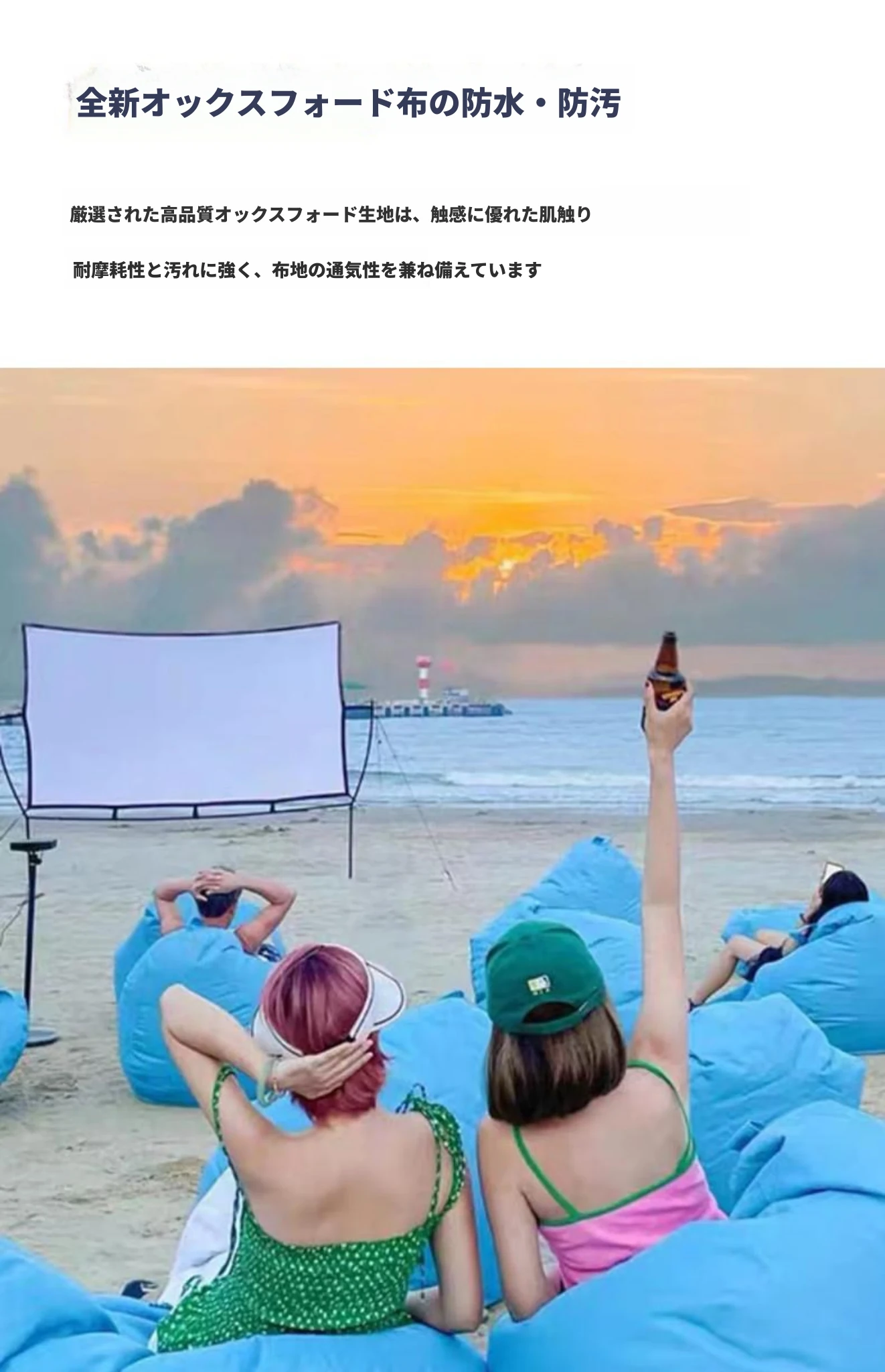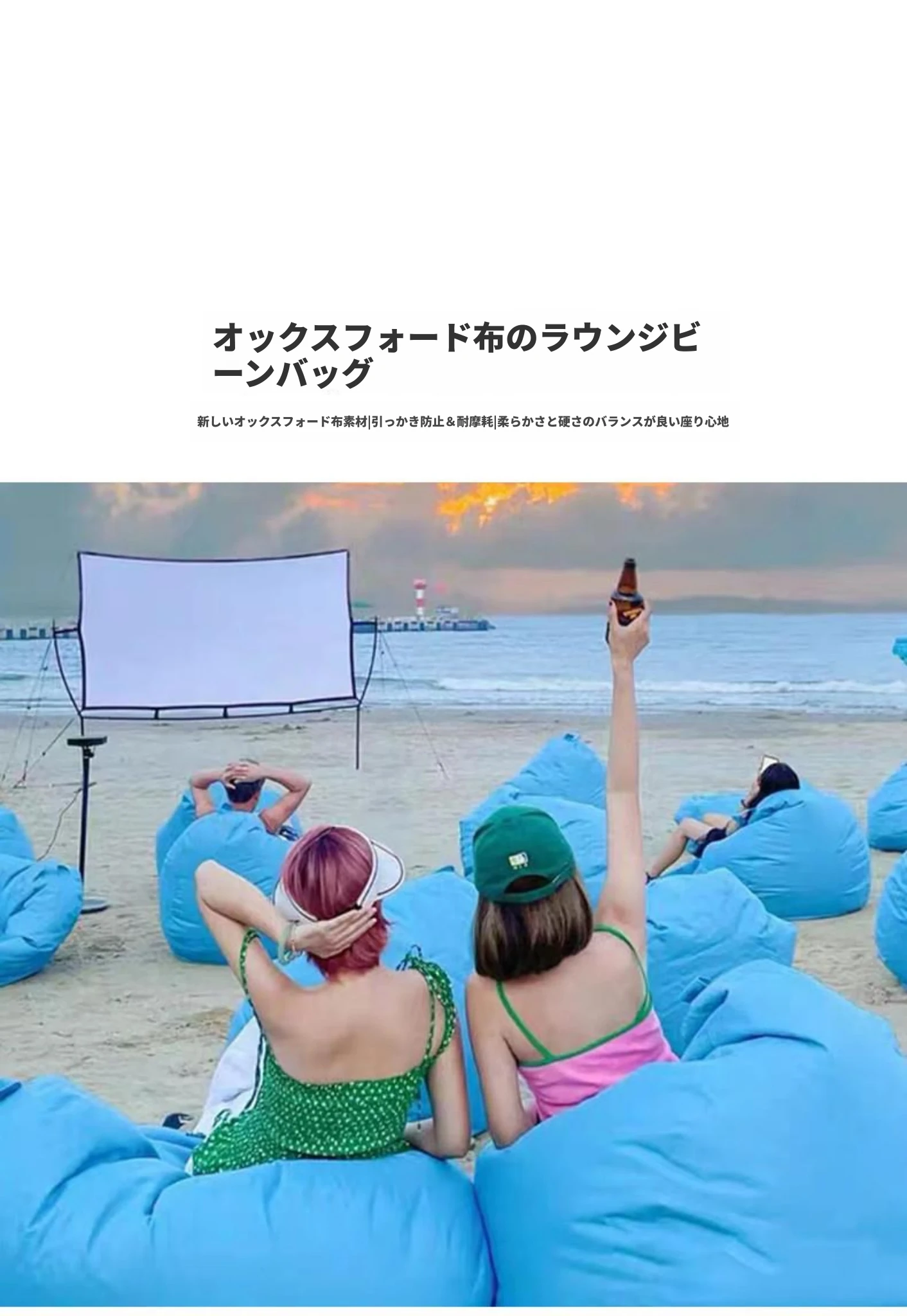 即納!防水・紫外線カットのオックスフォード布製ラウンジソファ・ビーチ用ビーズソファ。リラックスできる、スタイリッシュで快適なデザイン!海やアウトドアに最適なアイテムです。