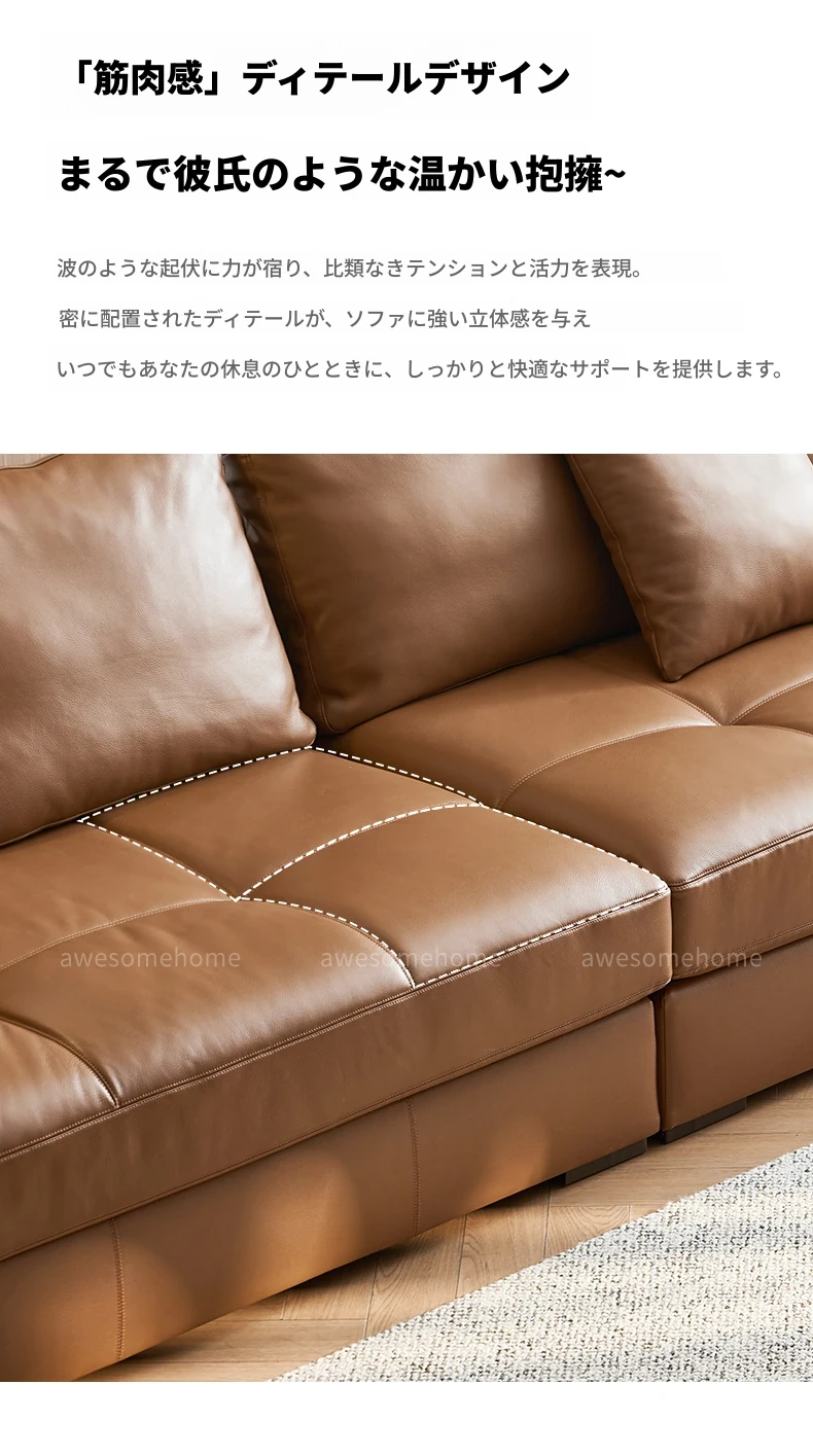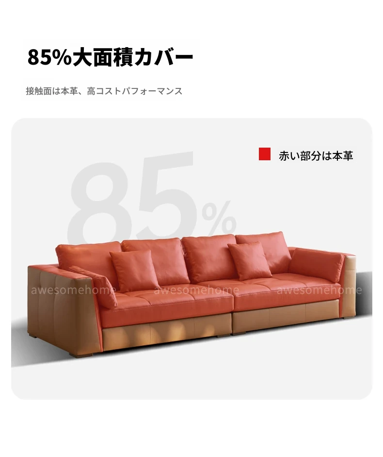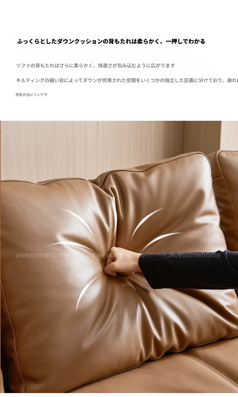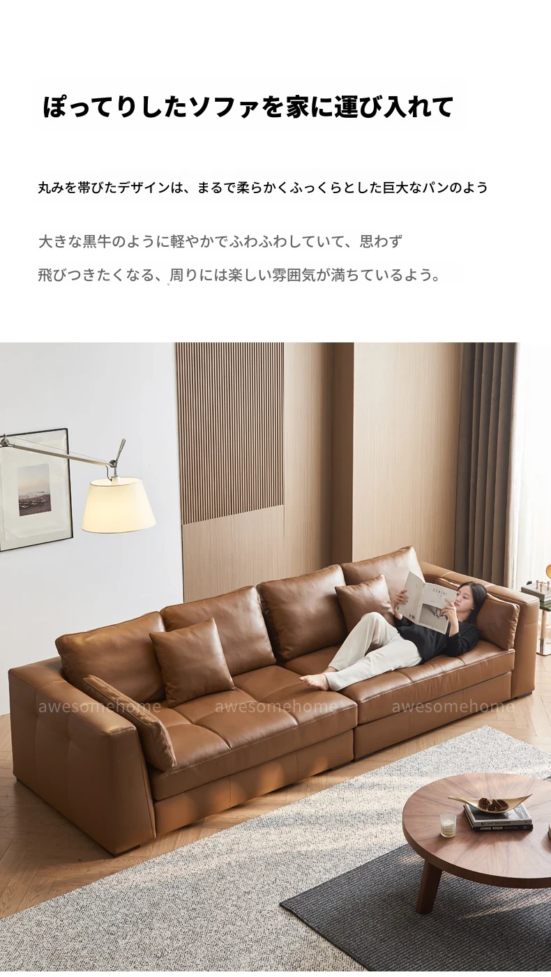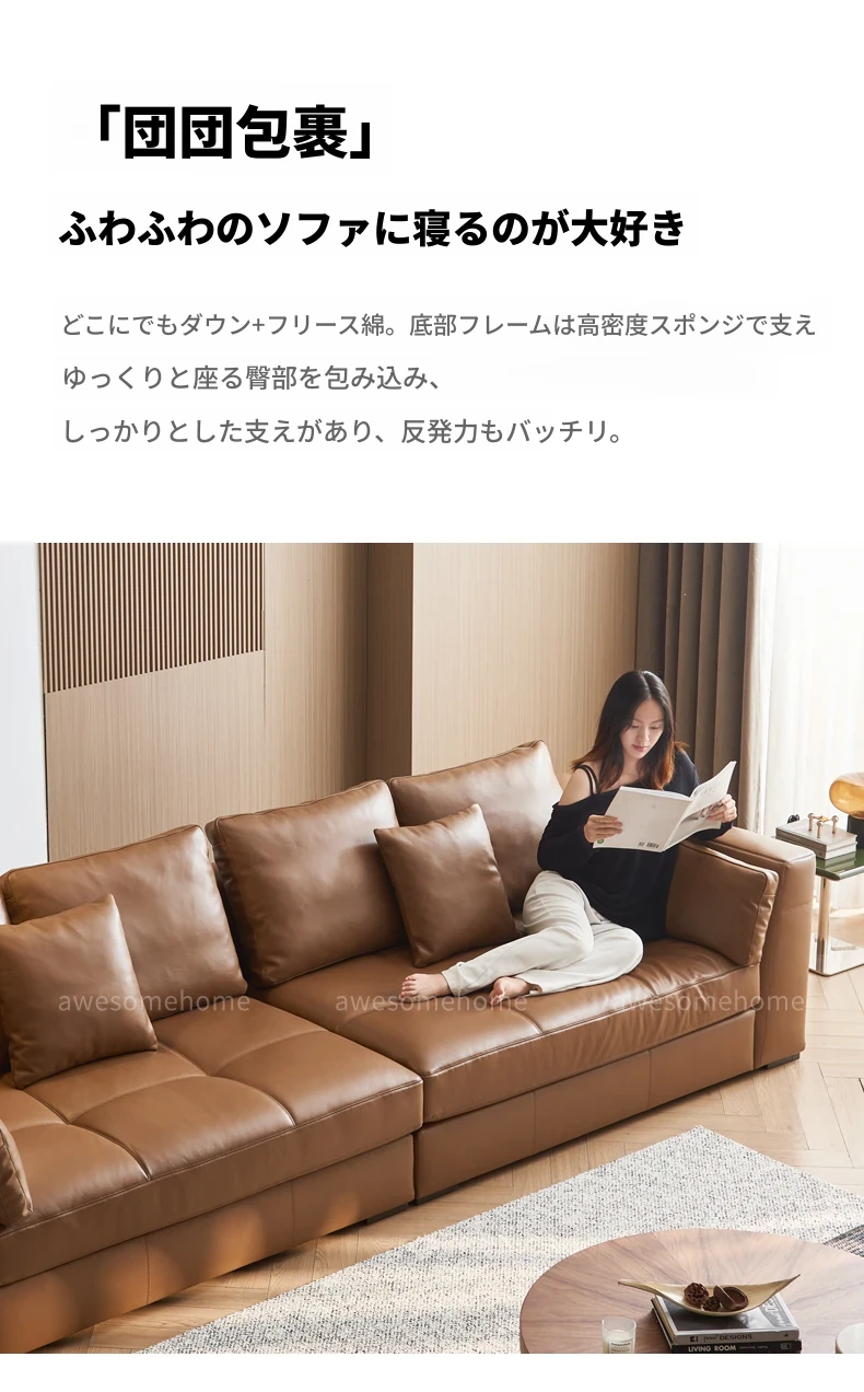 【3.4メートル/分割】 【快適ダウンレイヤー+高密度リバウンドスポンジ+全無垢木フレーム】 【トップグレイン本革、偽りには十倍の罰】