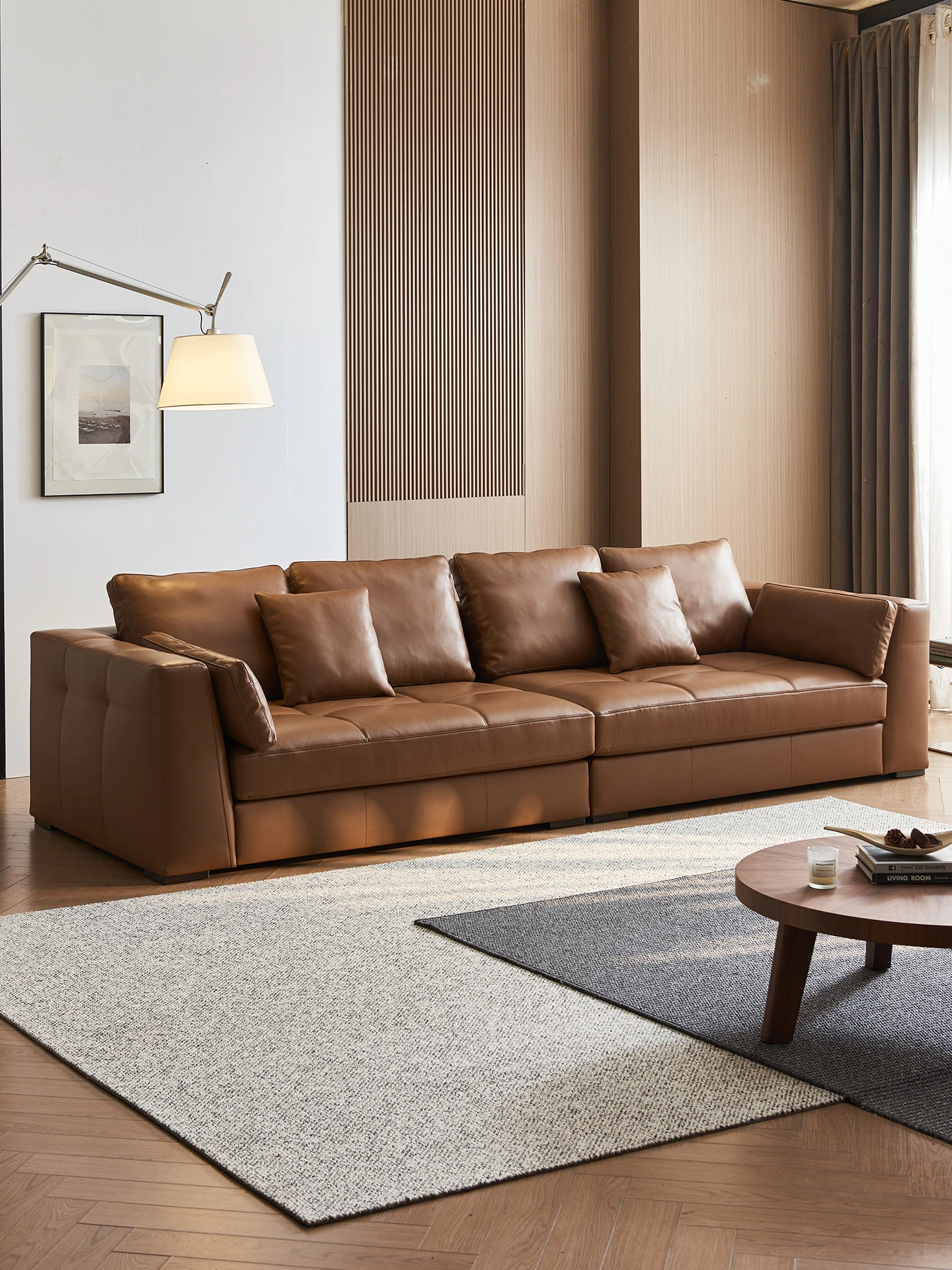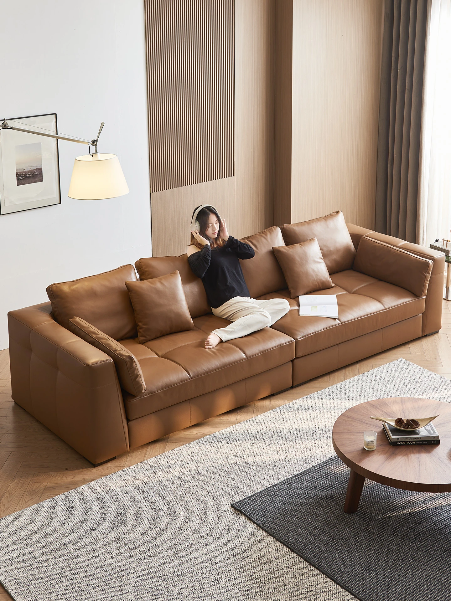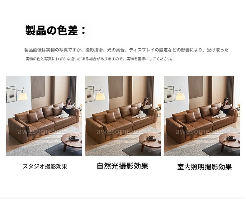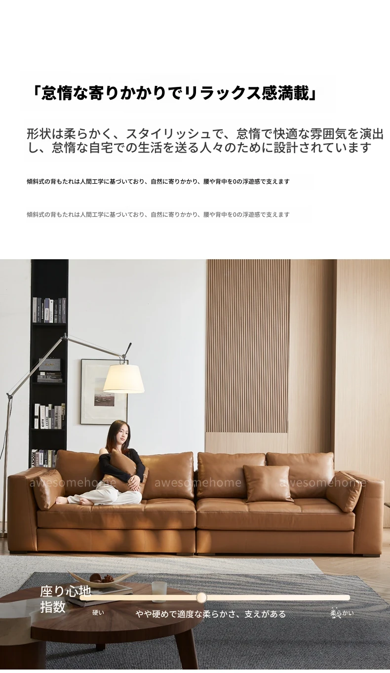 【3.4メートル/分割】 【快適ダウンレイヤー+高密度リバウンドスポンジ+全無垢木フレーム】 【トップグレイン本革、偽りには十倍の罰】
