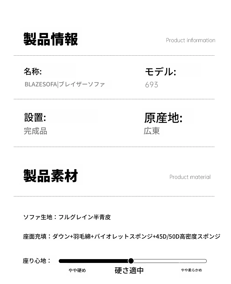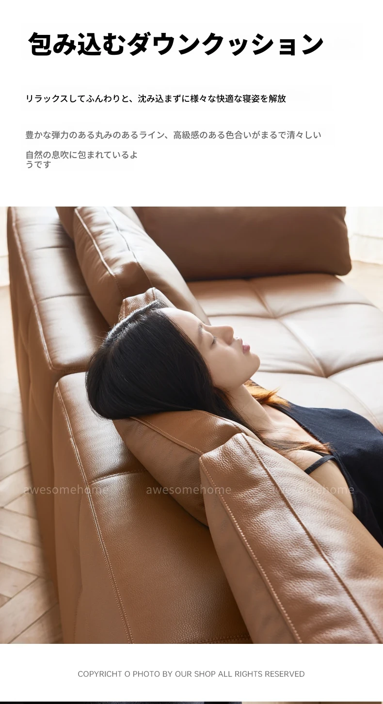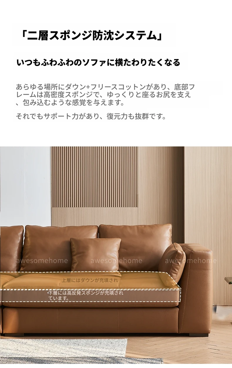 【3.0メートル/分割】 【快適ダウンレイヤー+高密度リバウンドスポンジ+全無垢木フレーム】 【トップグレイン本革、偽りには十倍の罰】