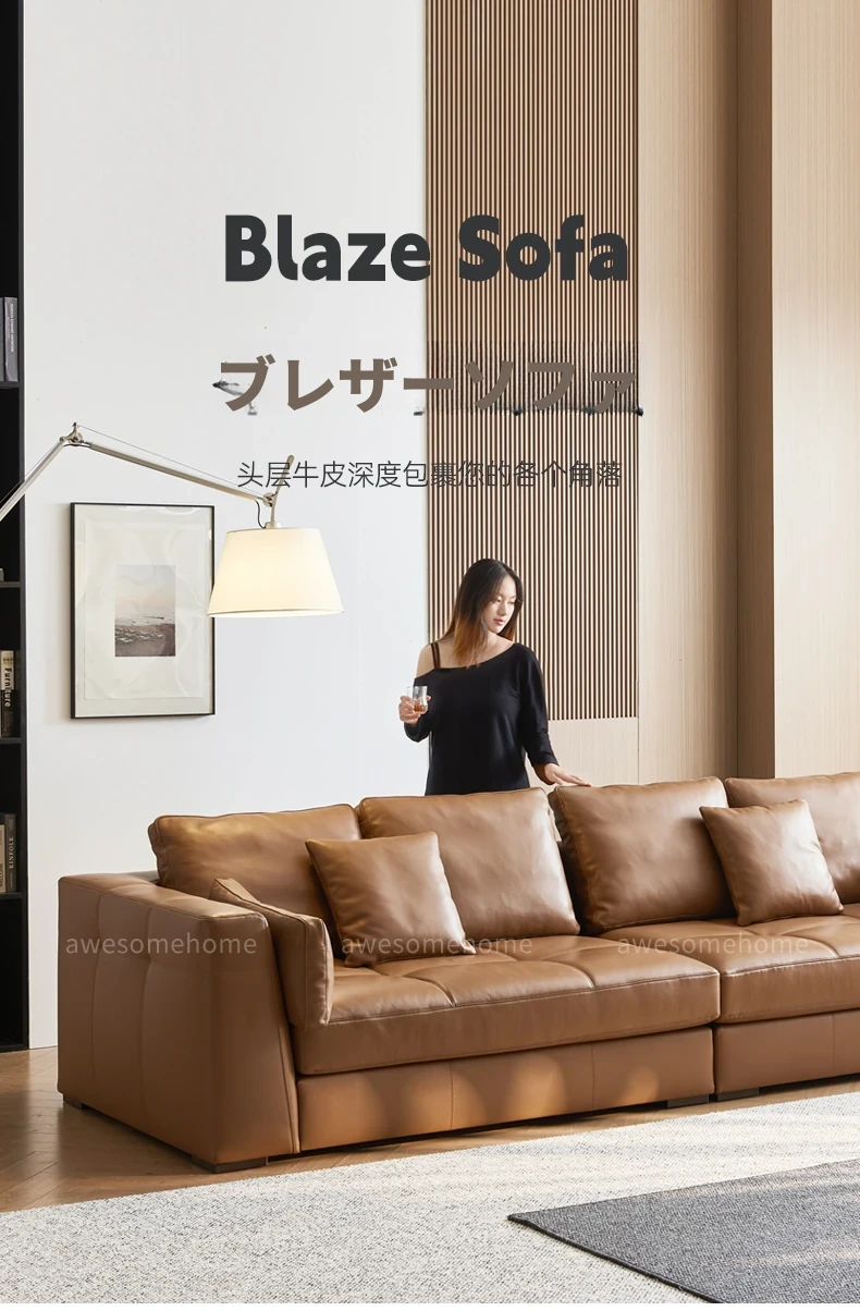 ヤキ家具 | ブレイザー イタリアンミニマル 本革ソファ 高級トップグレインレザー 小型リビングに最適な3人掛けソファ