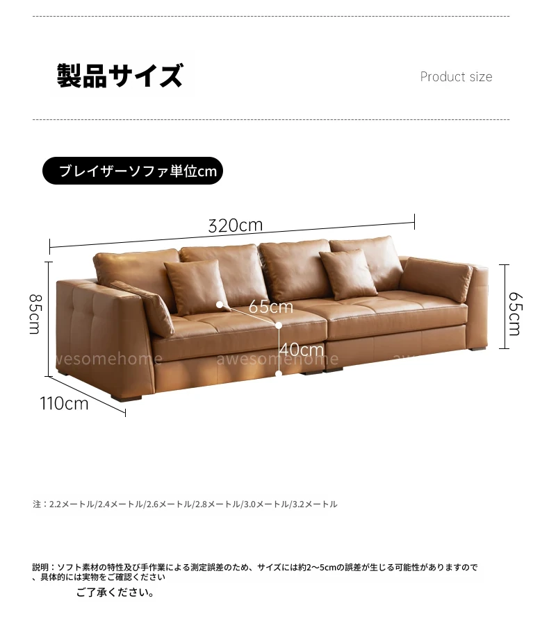 【3.2メートル/分割】 【快適ダウンレイヤー+高密度リバウンドスポンジ+全無垢木フレーム】 【トップグレイン本革、偽りには十倍の罰】