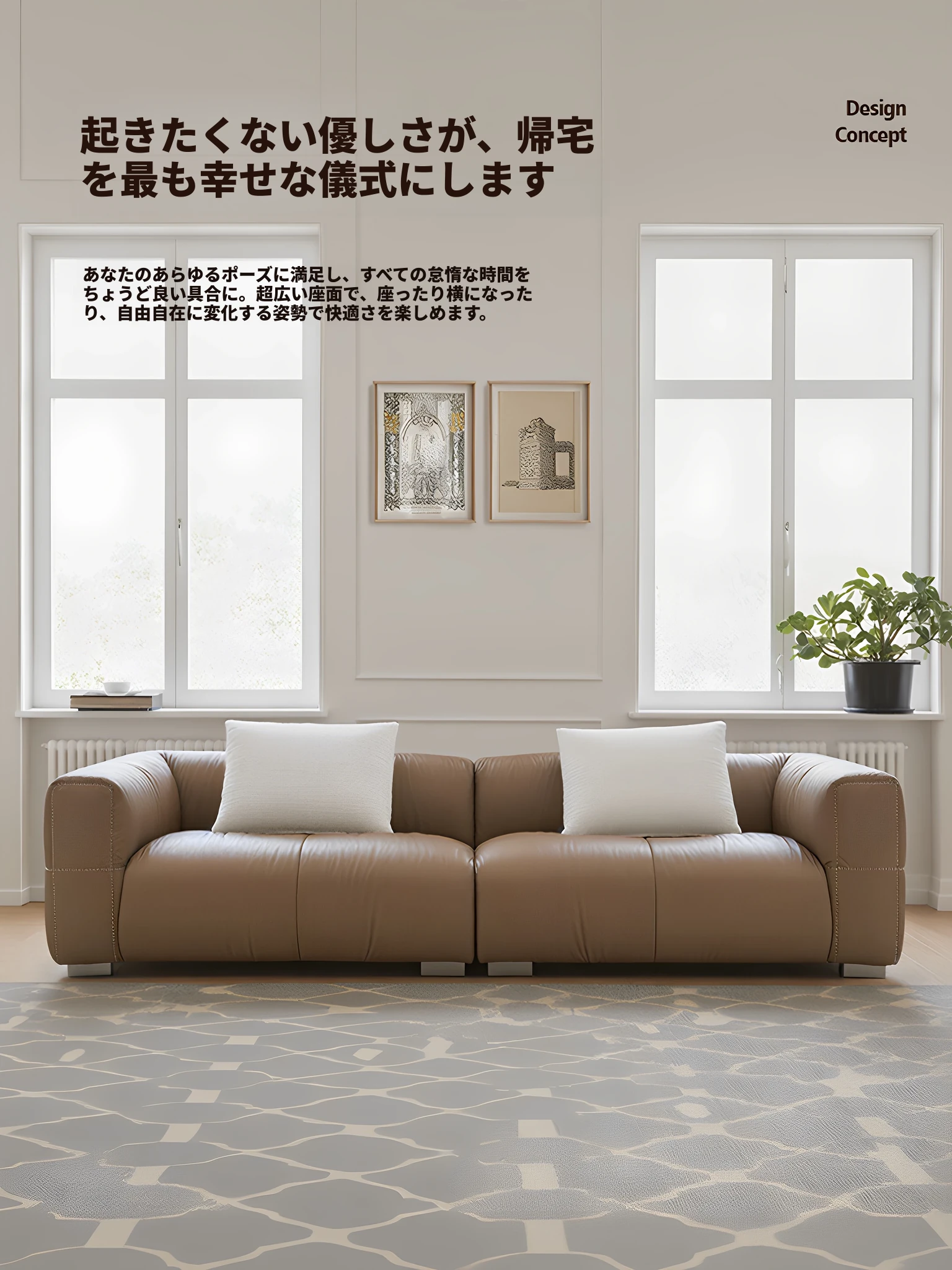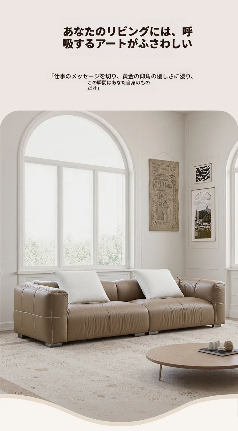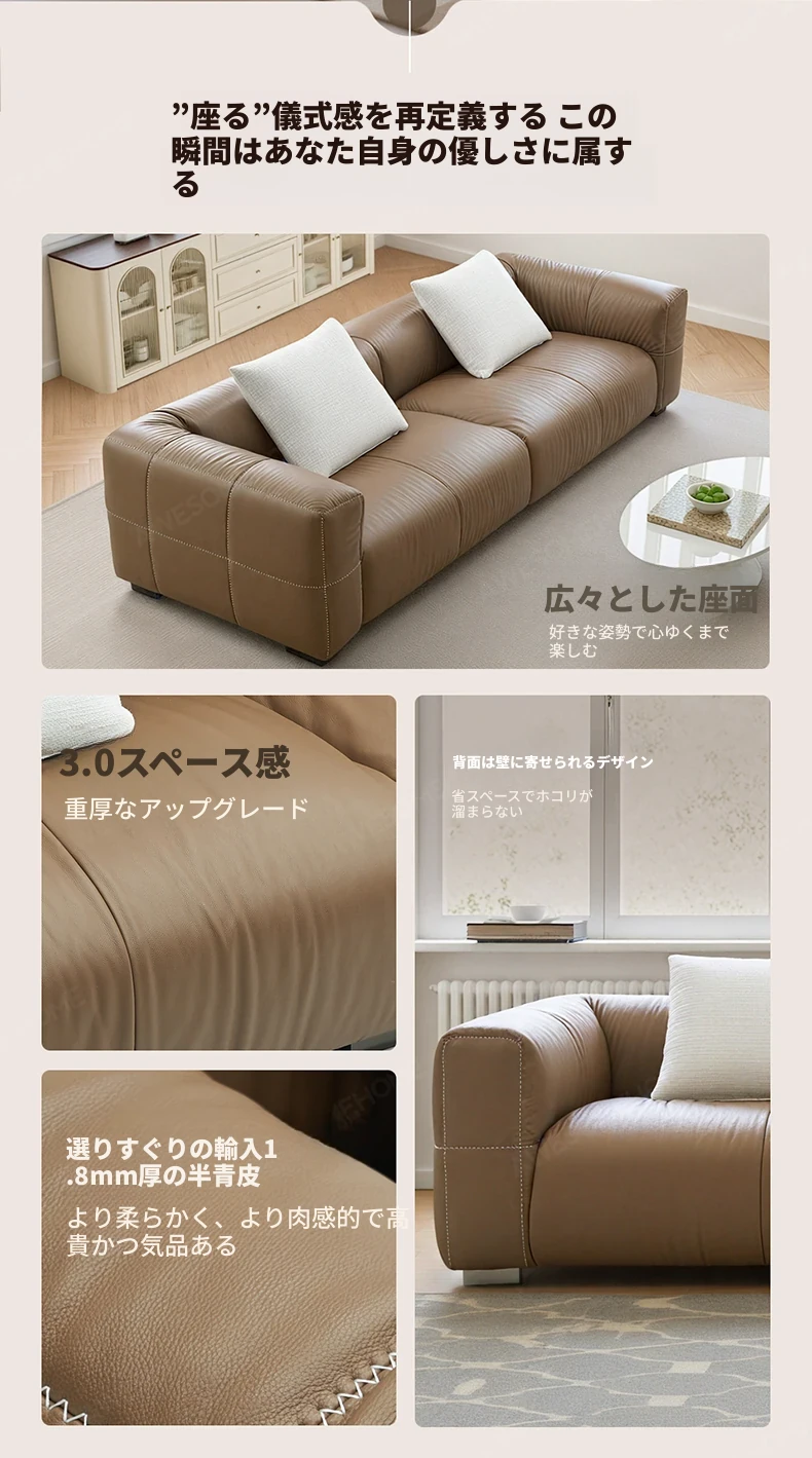 雅琦家具|本革使用!イタリアンミニマリズムの本革野球ソファー - レトロな雰囲気のリビング直排ソファ。高級感溢れるデザインで、快適なひとときをお届けします!