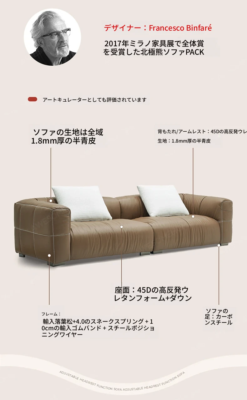 3.3メートル直排分体【クッション+背もたれ羽毛充填】【トップグレイン牛革、偽りの場合は10倍返し】