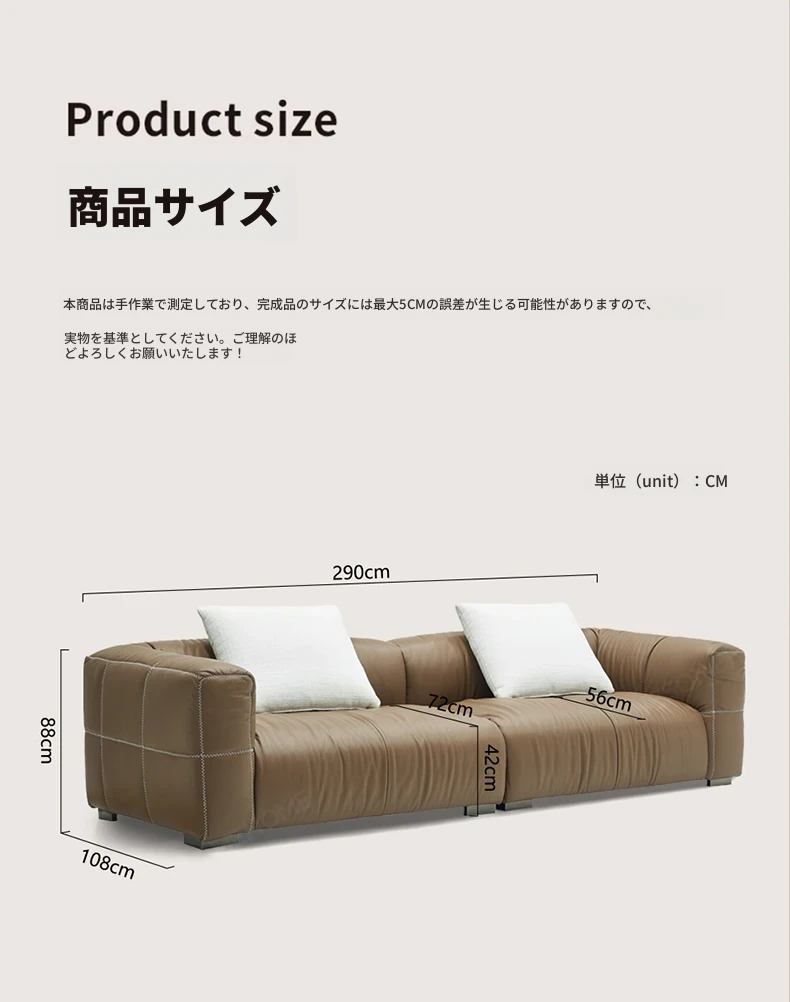 2.9メートル直排分体【クッション+背もたれ羽毛充填】【トップグレイン牛革、偽りの場合は10倍返し】