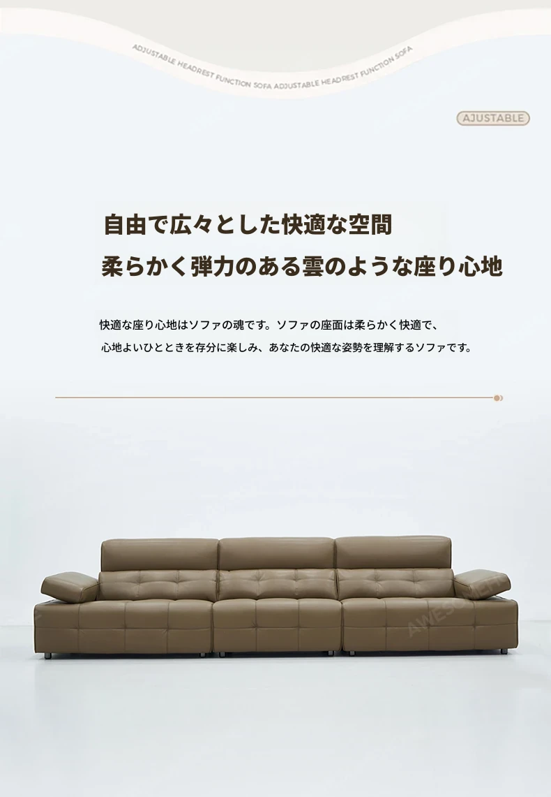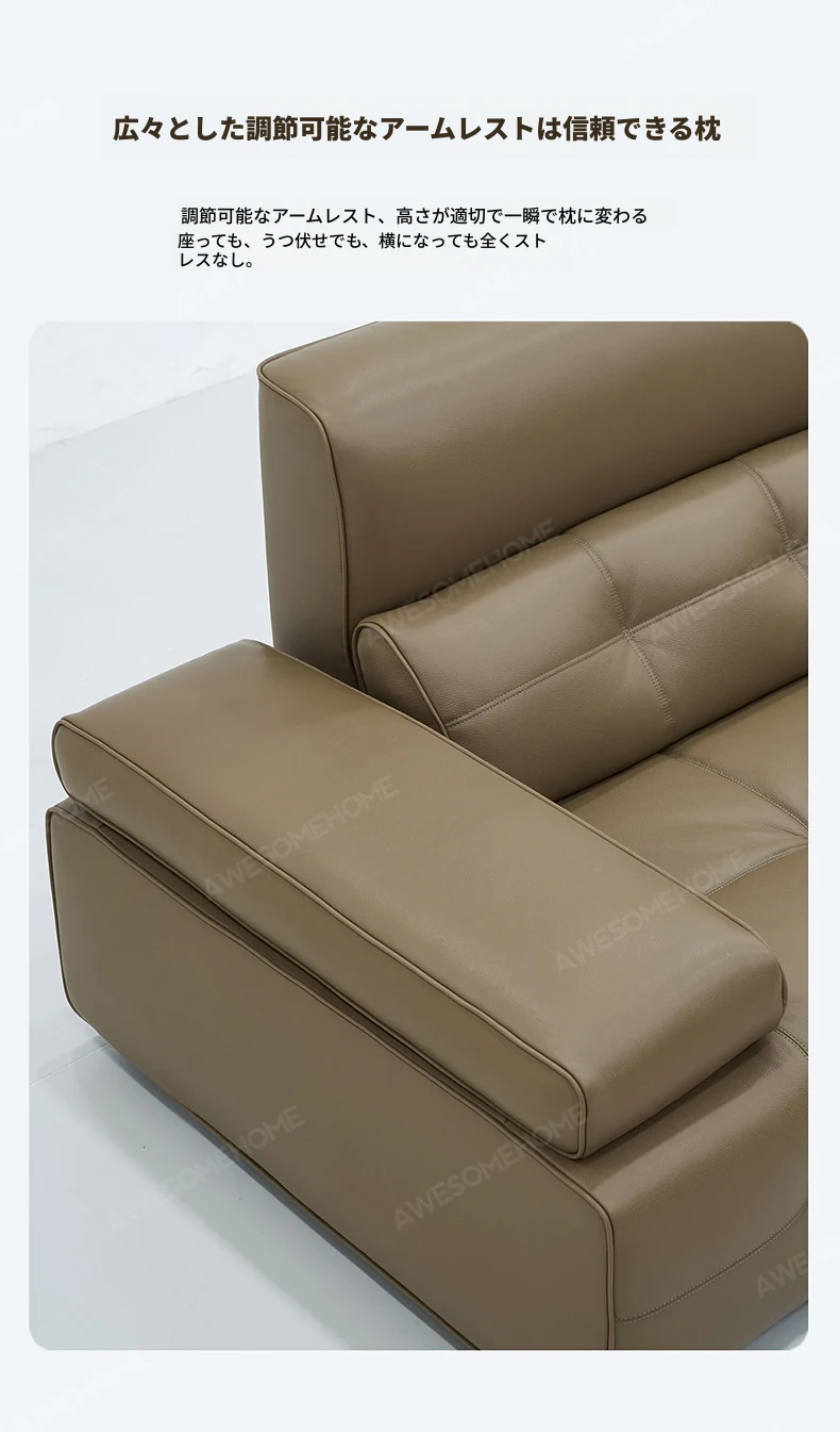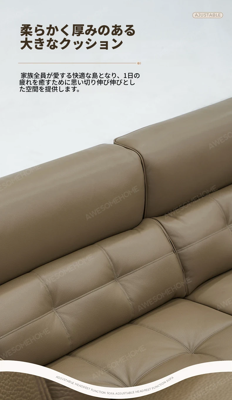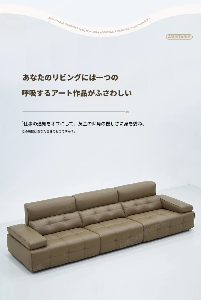 雅琦家具|ラグジュアリーな高背ローレンス本革ソファ|調整可能なトップグレイン牛革|イタリアンミニマリストスタイルのリビング直排デザイン