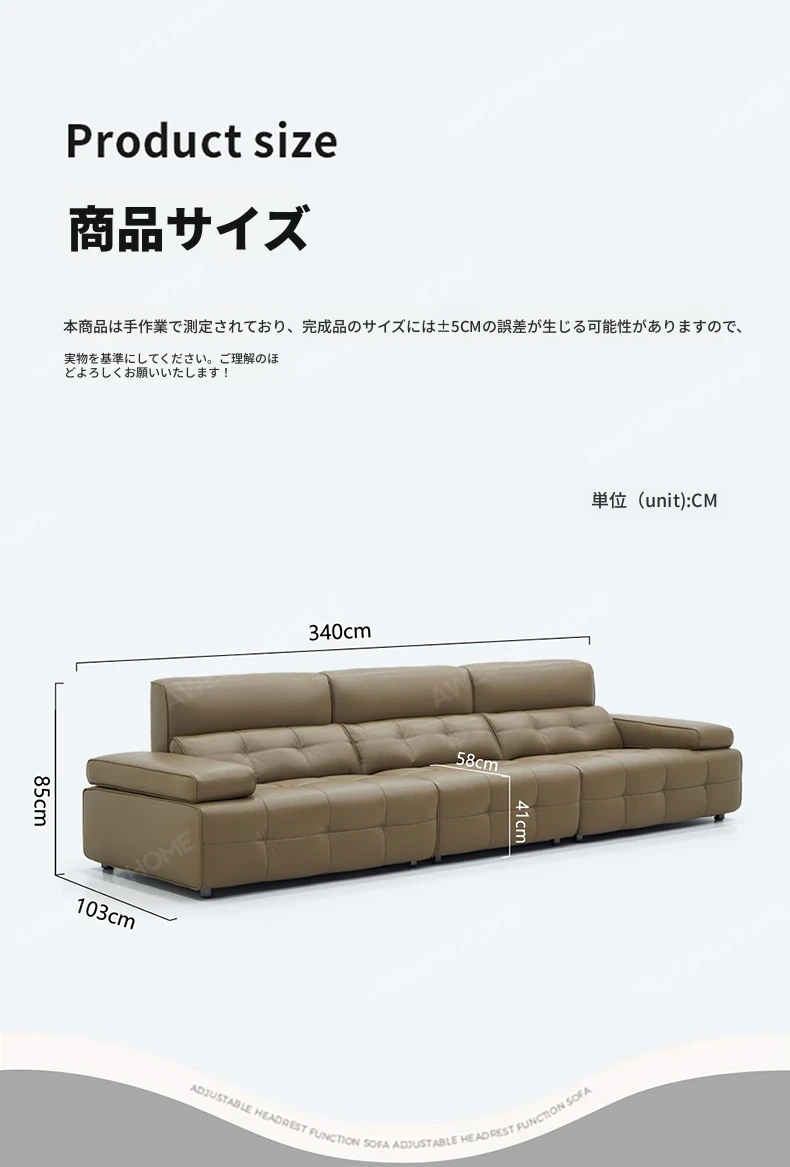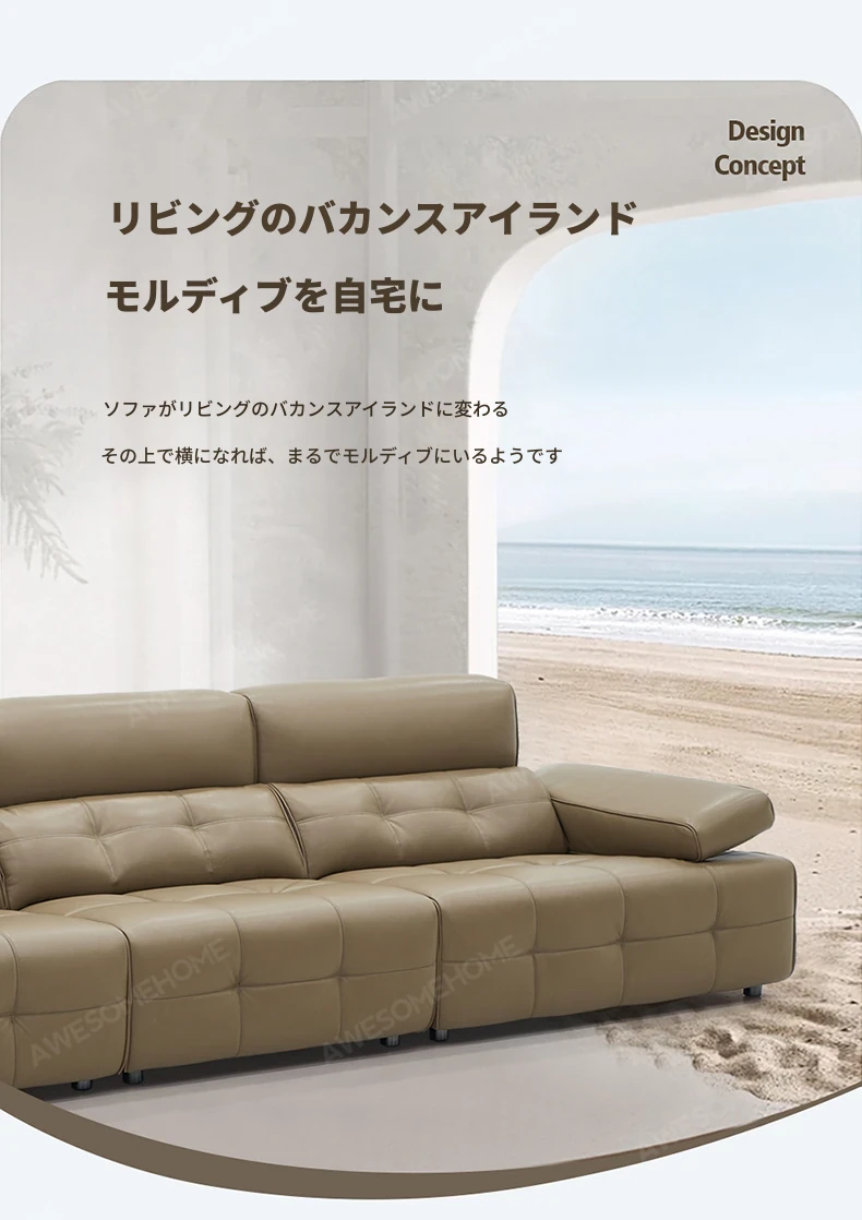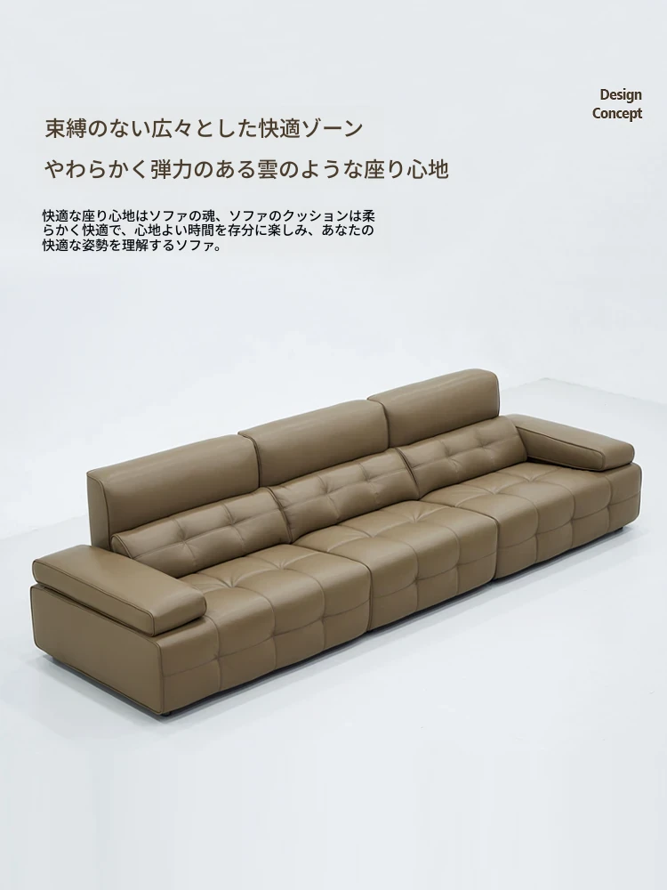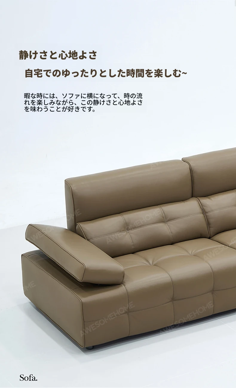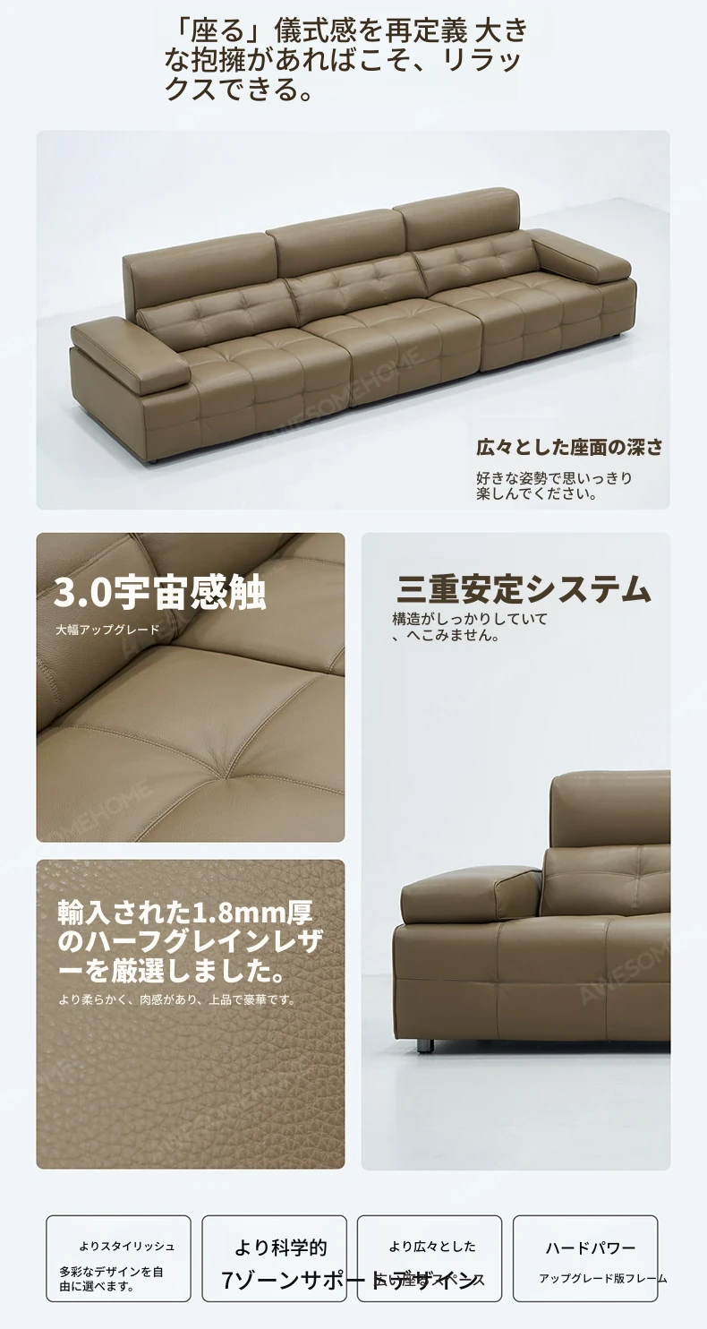 雅琦家具|ラグジュアリーな高背ローレンス本革ソファ|調整可能なトップグレイン牛革|イタリアンミニマリストスタイルのリビング直排デザイン